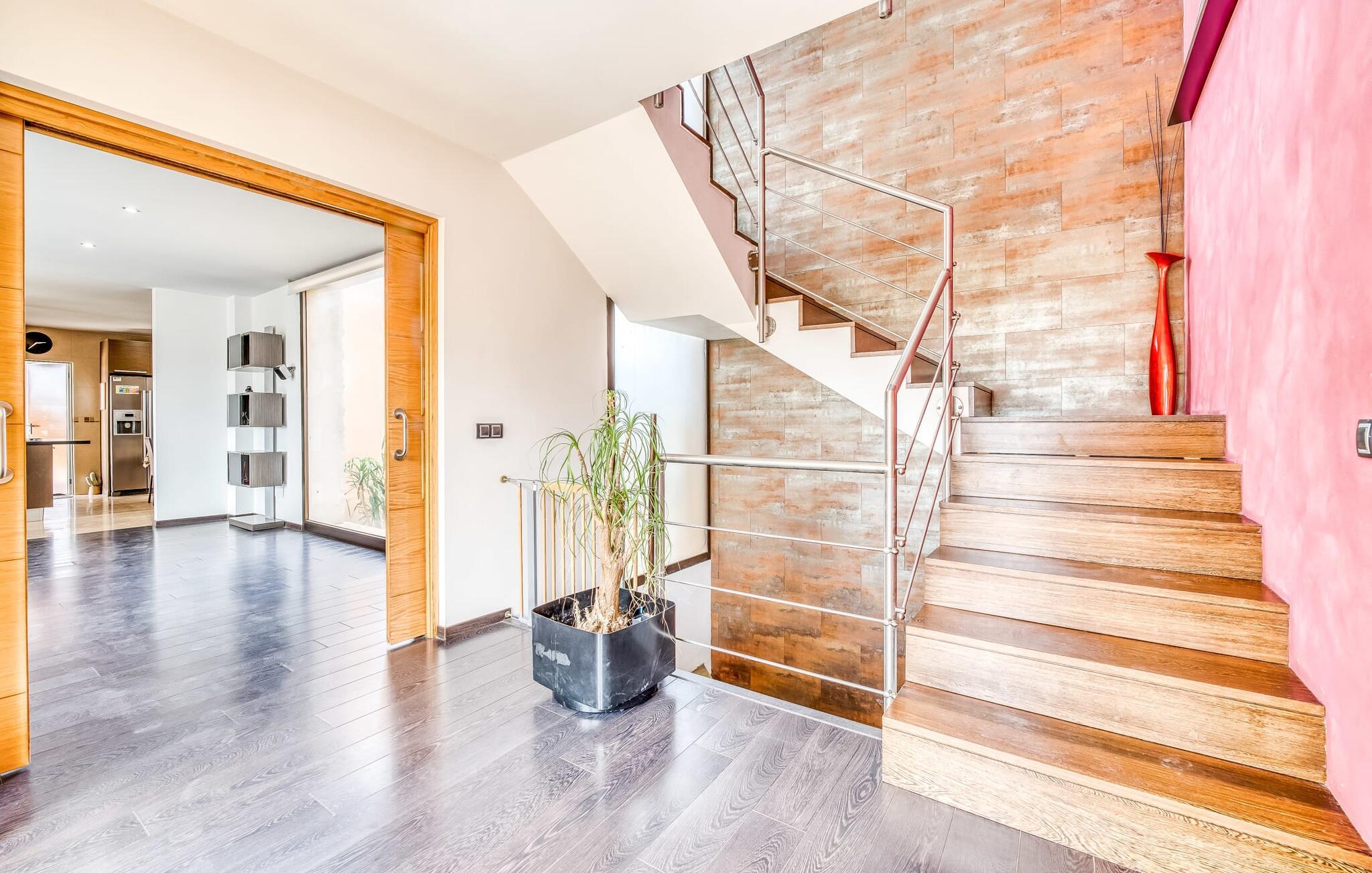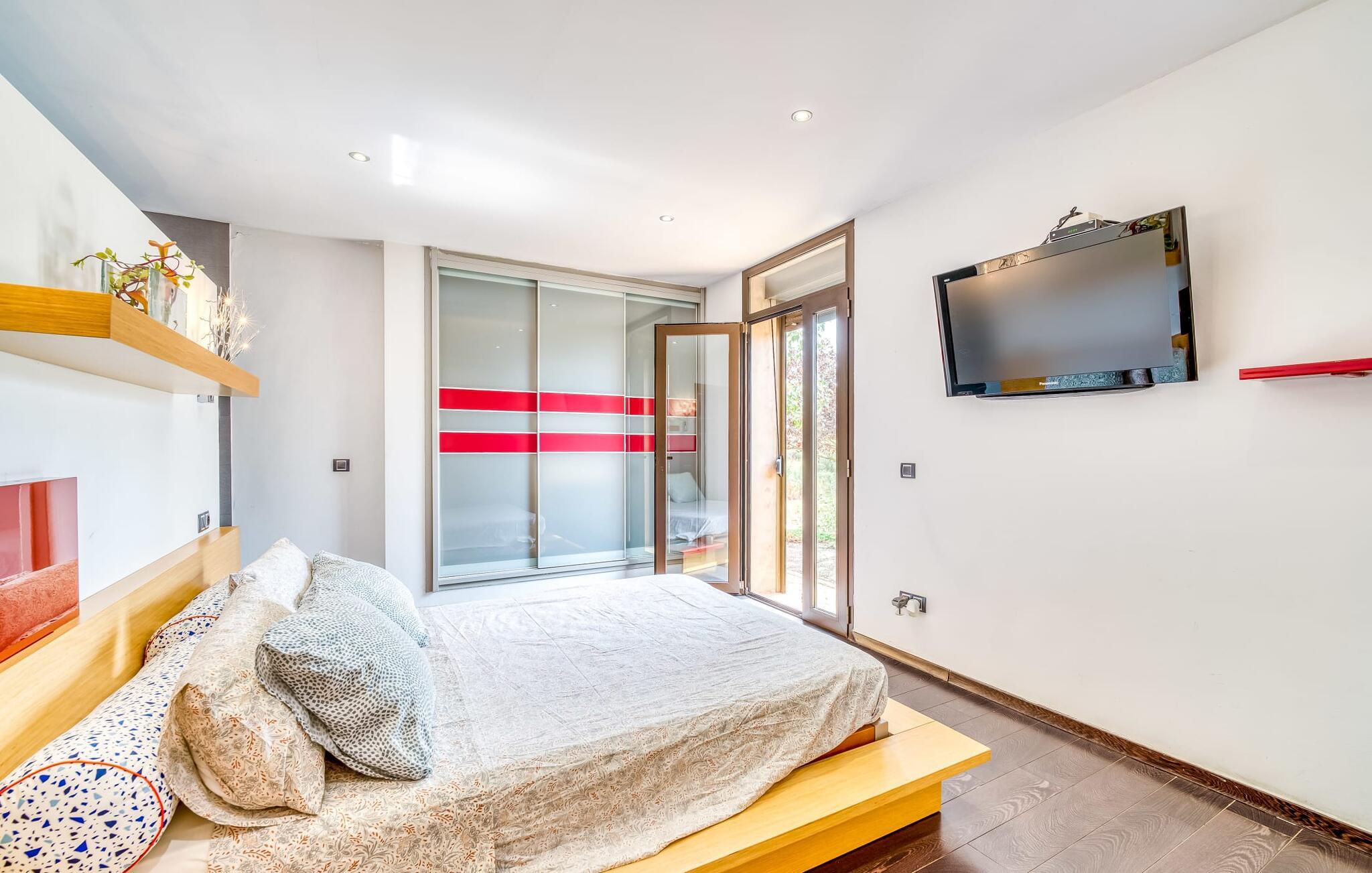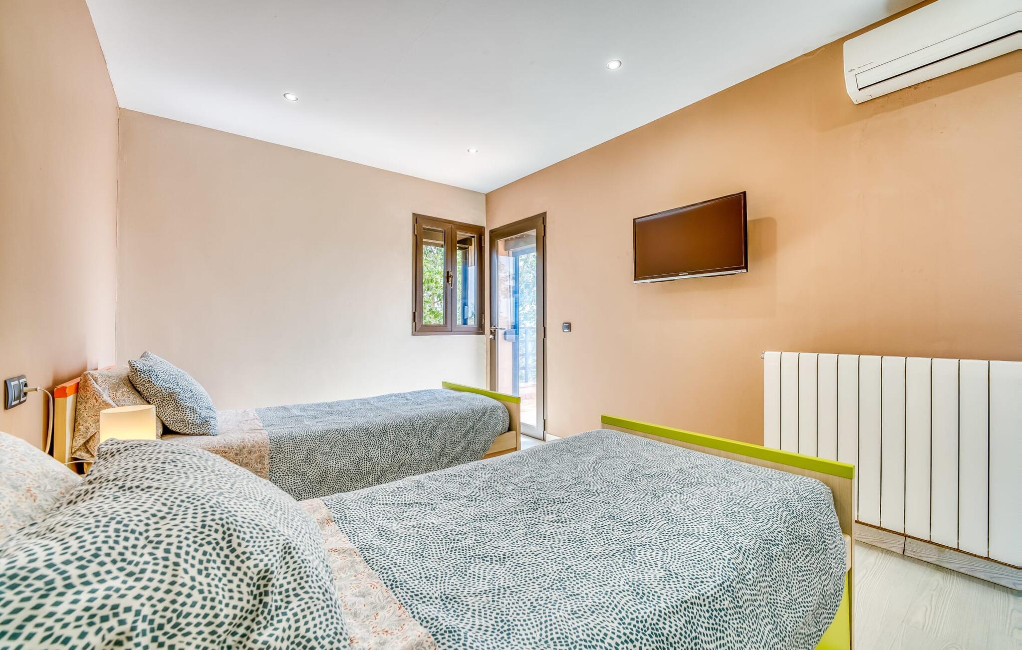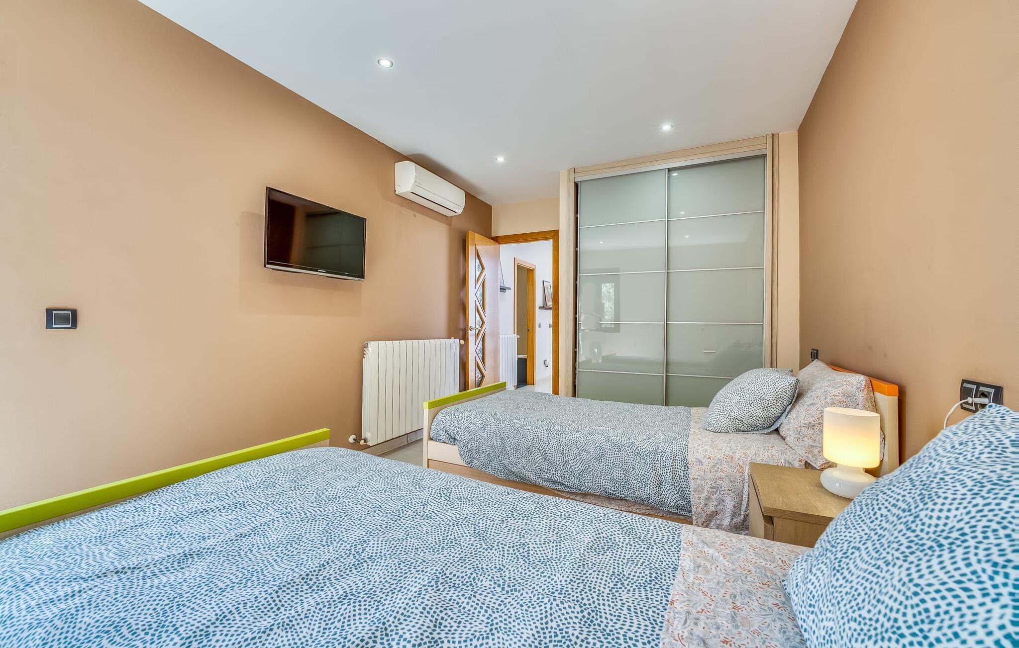 Villa "Son Virgili" tilbyder et moderne, familievenligt tilflugtssted med faciliteter af høj kvalitet, ideelt for dem, der søger både luksus og komfort. Denne sandstensfarvede villa er opdelt i kubiske sektioner og har gulv-til-loft-vinduer, der tilbyder en betagende udsigt over den omkringliggende natur. Altanerne byder på panoramaudsigt, mens udendørsarealet er velegnet til både voksne og børn. En rummelig legeplads inviterer børn til at lege, og den ovale pool med brede trin for nem adgang er ideel for alle aldre. Solterrassen, der er udstyret med liggestole og parasoller, byder på masser af plads til at slappe af. Et afslapningsområde omgivet af stenmure tilbyder privatliv og beskyttelse mod vinden, mens en rolig hængekøje ved siden af huset er perfekt til et roligt tilflugtssted. Indvendigt er villaens moderne design både rummelig og indbydende. Stueetagen i åbent plan har et komfortabelt opholdsområde, en stilfuld spiseplads og et køkken af høj kvalitet med ø, perfekt til tilberedning af måltider. Børneværelset byder med sin legende gule og grønne indretning på to enkeltsenge, mens de to voksne soveværelser byder på masser af plads og opbevaring. Det store soveværelse har eget badeværelse, og de andre soveværelser deler badeværelse. Med sin rolige, rustikke beliggenhed lover "Son Virgili" en afslappende ferie for hele familien. Den moderne finca "Son Virgili" ligger i smukke landlige omgivelser nær byen Campos. Fra villaen kan I køre til smukke strande som Sa Rapita eller den naturlige sandstrand "Es Trenc". For shopping er Campos stedet at tage hen med et ugentligt marked, der finder sted hver torsdag og lørdag.