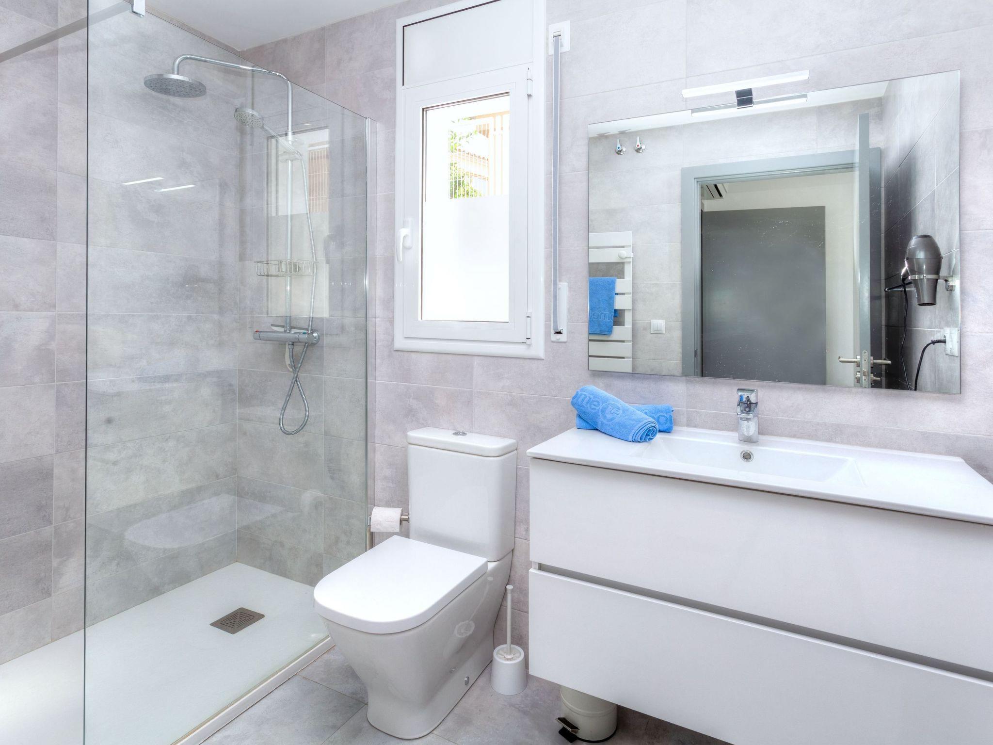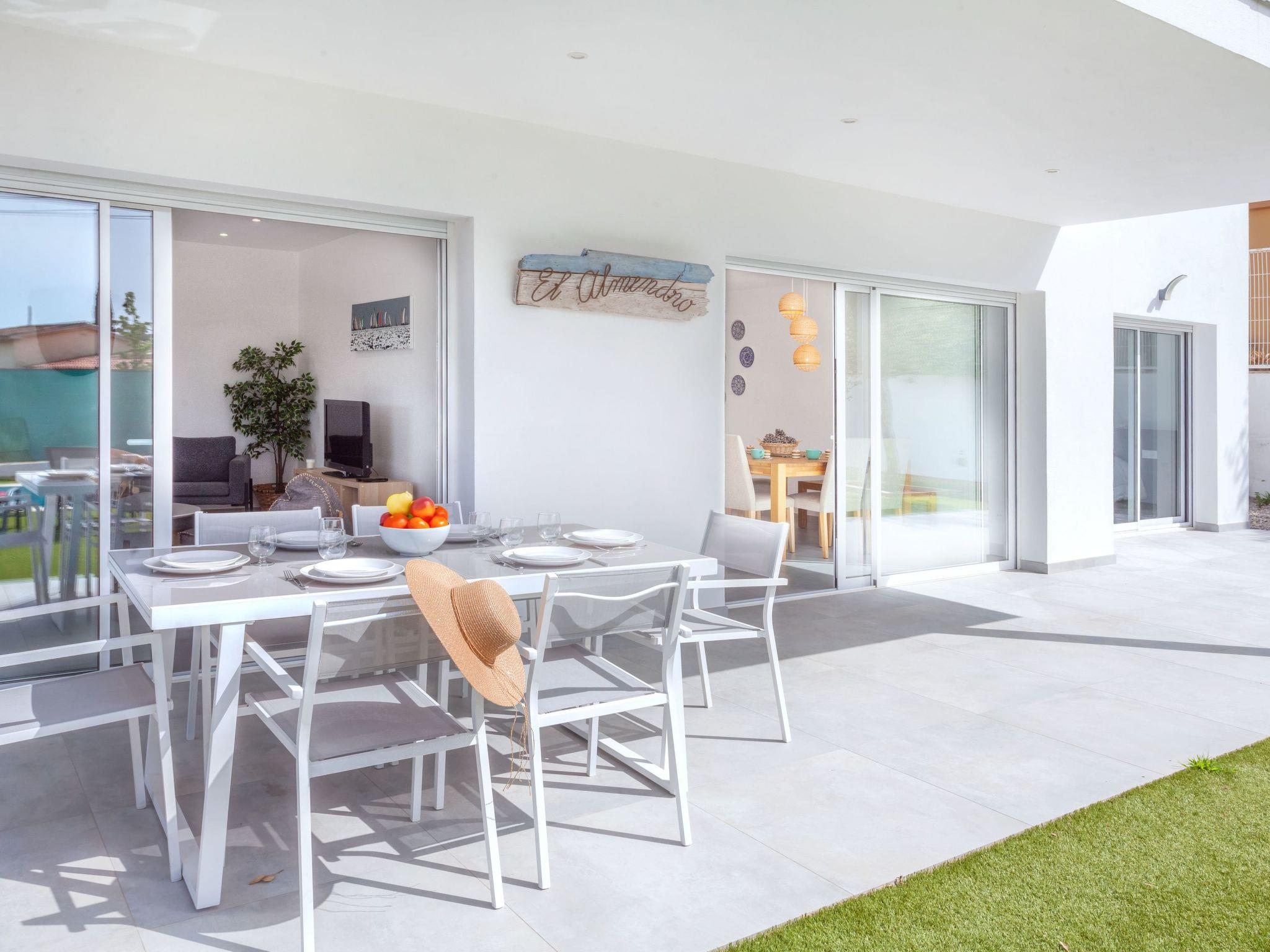 "Almendro", 4-room house 210 m2 on 2 levels. Practical furnishings: living/dining room with satellite TV. Exit to the garden, to the terrace, to the swimming pool. 1 room with 1 french bed (160 cm, length 200 cm), shower/WC and air conditioning. Exit to the garden, to the terrace, to the swimming pool. Open kitchen (dishwasher, 3 induction hot plates, toaster, kettle, microwave, electric coffee machine) with air conditioning. Exit to the garden, to the terrace, to the swimming pool. Sep. WC. No heating option. Upper floor: 2 rooms, each room with 2 beds (90 cm, length 200 cm), shower/WC and air conditioning. Exit to the terrace. Terrace. Terrace furniture, barbecue, deck chairs (4). Facilities: washing machine, iron, children's high chair, baby cot, hair dryer. Internet (WiFi, free). Please note: non-smoking house. TV only FR. HUTG-043507 // Reg. Nr.: ESFCTU00001701700028461300000000000000000HUTG-0435076