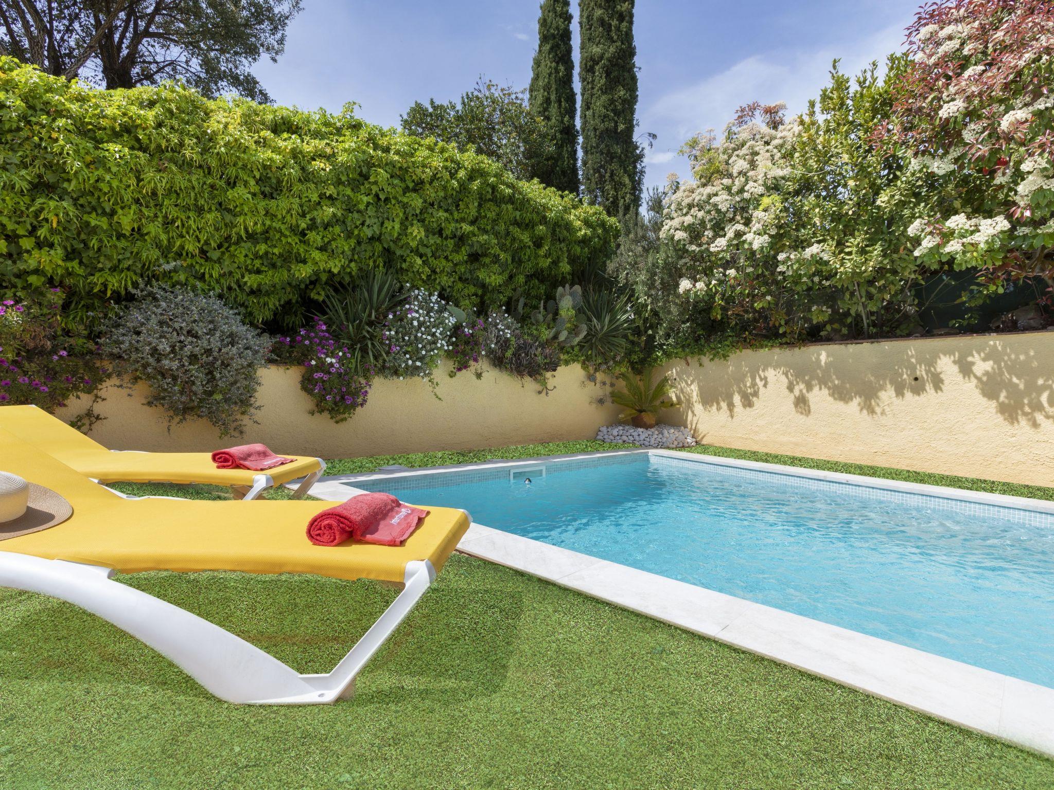 Bell Lloc 3 km from Sta Cristina d'Aro: Small house "Bell Lloc II". Outside the resort, in a quiet, sunny position, traffic calmed area, 8 km from the sea, in a cul-de-sac. Private: garden with lawn, swimming pool angular (6 x 3 m, depth 50 - 180 cm, seasonal availability: 15.May. - 15.Oct.). Parking at the house on the premises, public car park, public parking on the road. Shop 3 km, grocery 3 km, supermarket 3 km, bakery 2 km, bus stop 2 km, sandy beach "Playa de Sant feliu de guixols" 8 km. Golf course (18 hole), cycle lane 500 m. The owner does not accept any youth groups. Neighbourhood highly sensitive to noise. Quietness and good behaviour expected.
