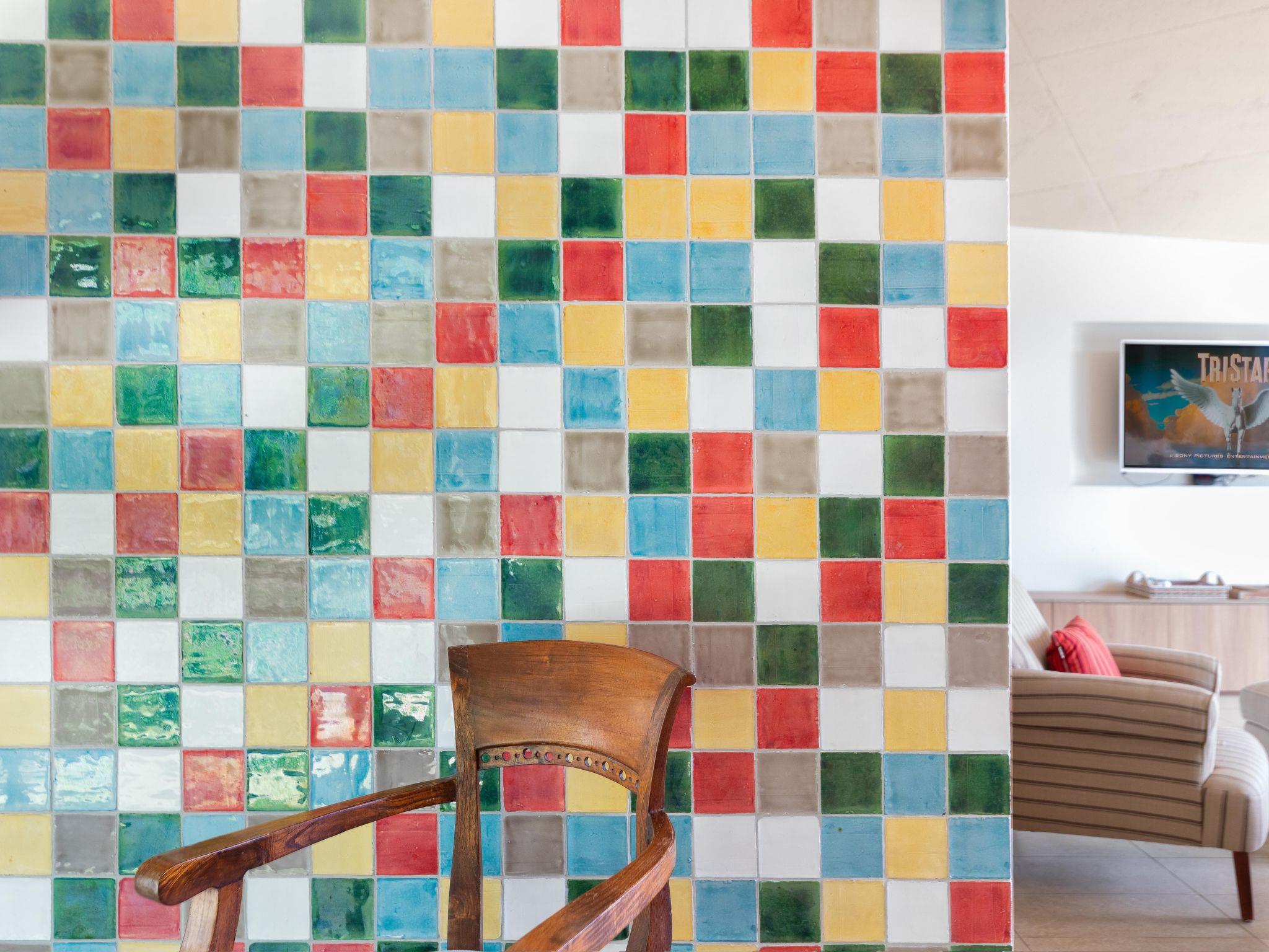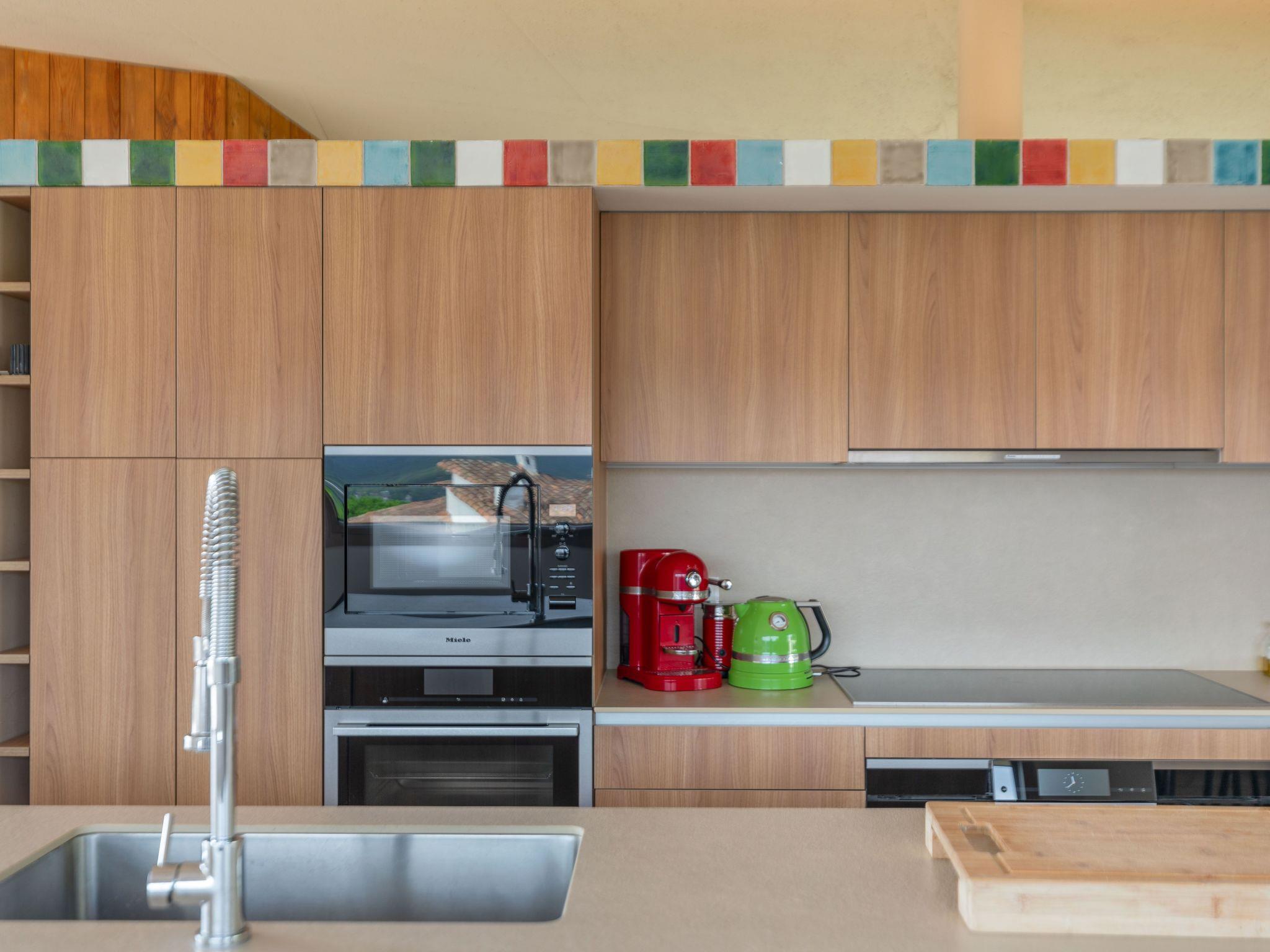 The villa spreads over three elegant floors. The upper floor enchants with a luxuriously equipped open-plan kitchen, featuring modern appliances such as a microwave, oven, dishwasher and a kitchen island. There is also a spacious dining area, a comfortable sitting room, and two terraces offering access to a heated swimming pool. The lower two floors each offer a compact kitchenette, a cosy sitting area, and three large double bedrooms with television and en-suite bathrooms. Extra beds are available on request. For your convenience, there is also wifi internet, a gym with various devices, and several games for the kids.