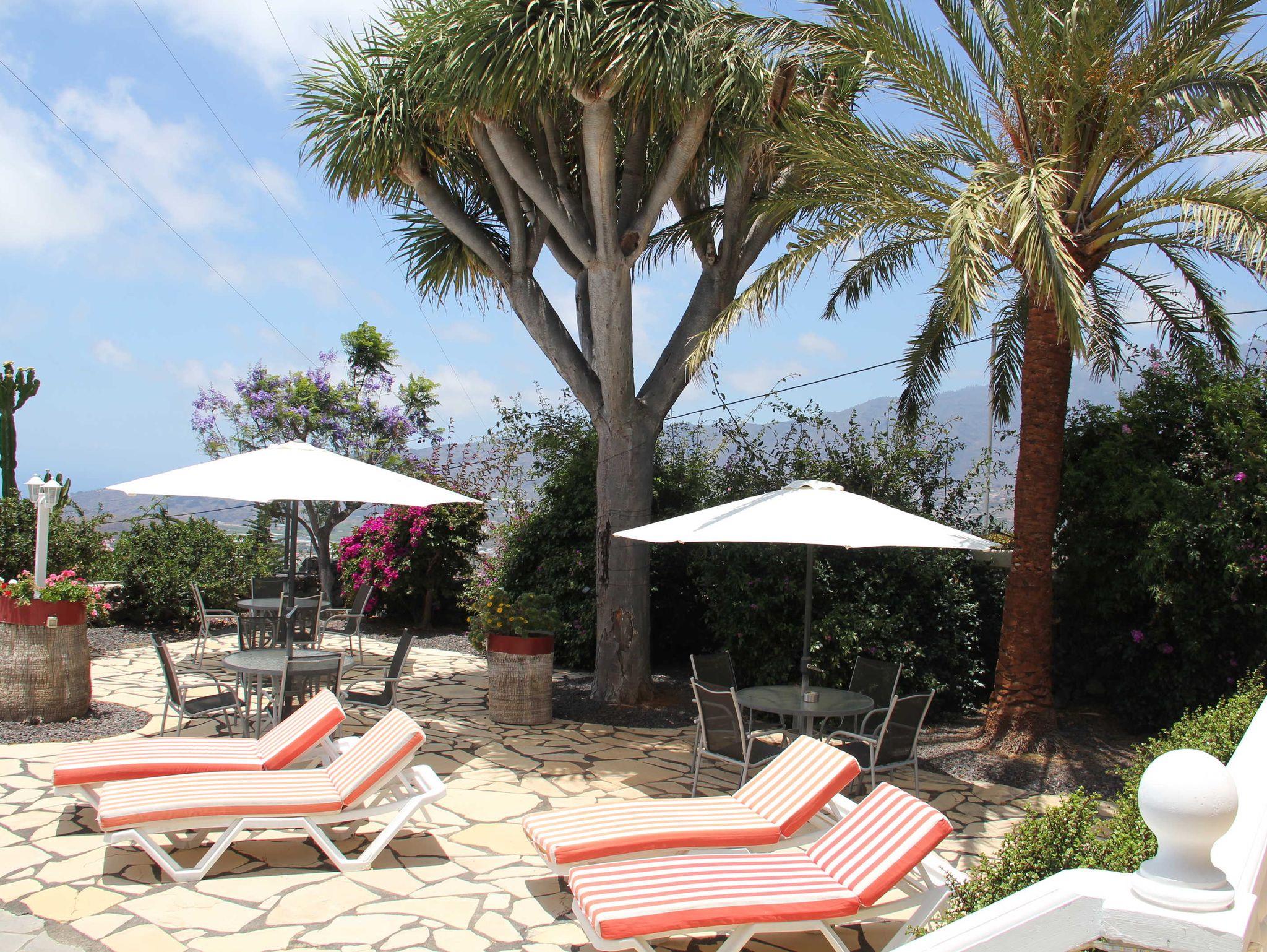 Der Pluspunkt ist der große Schwimmpool mit 5x10m, Poolabdeckung und Solarerwärmung und die ebenfalls ausladende Poolterrasse mit ausreichend beschirmten Sitzmöglichkeiten für die Gäste; auch Sonnenliegen fehlen nicht. Der Poolbereich gibt einen herrlichen Ausblick auf das abfallende Aridanetal bis zum Atlantik frei.