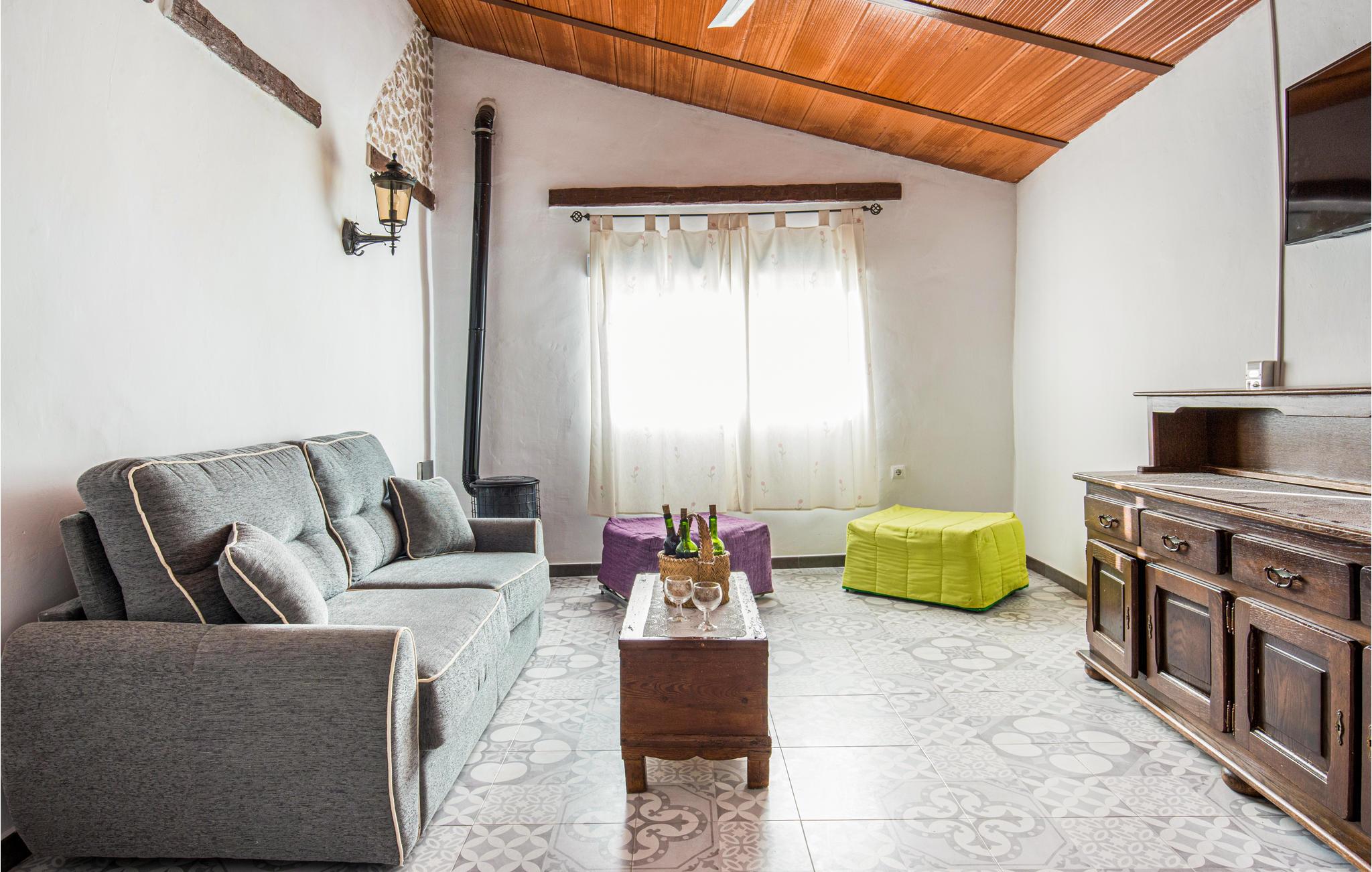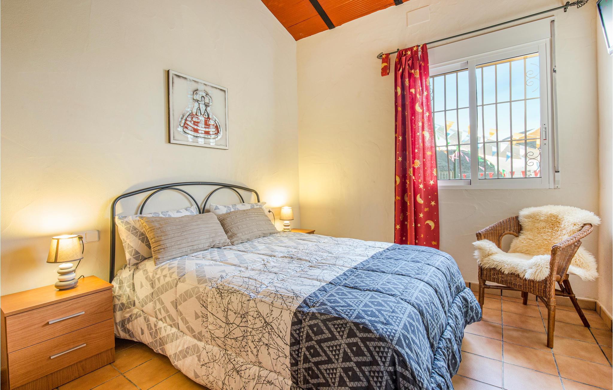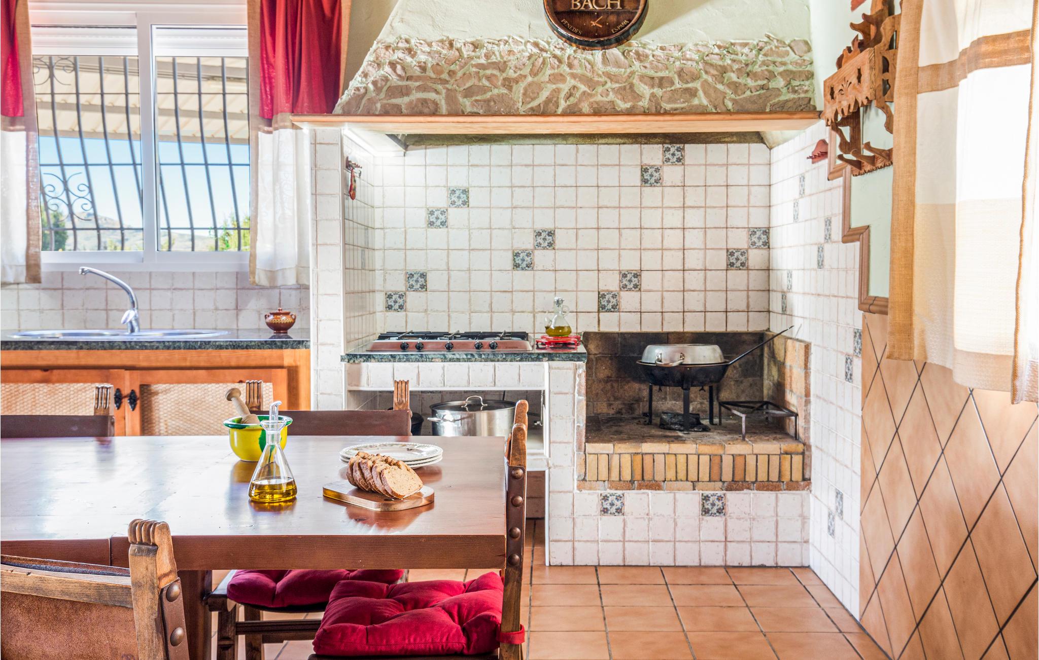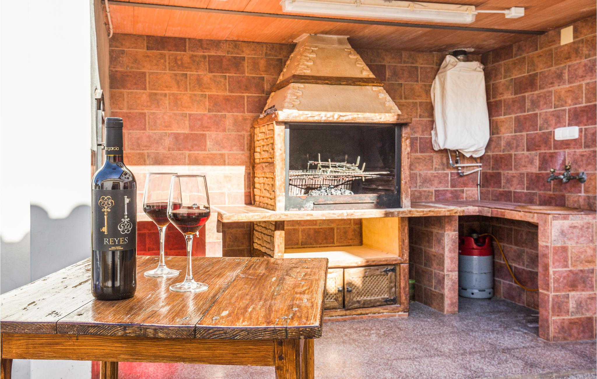 I feriehuset er der fire soveværelser, tre badeværelser, en bar, en stue i åben forbindelse med køkken og en kamin til de kølige vintermåneder. Der skal betales for brænde til kaminen.