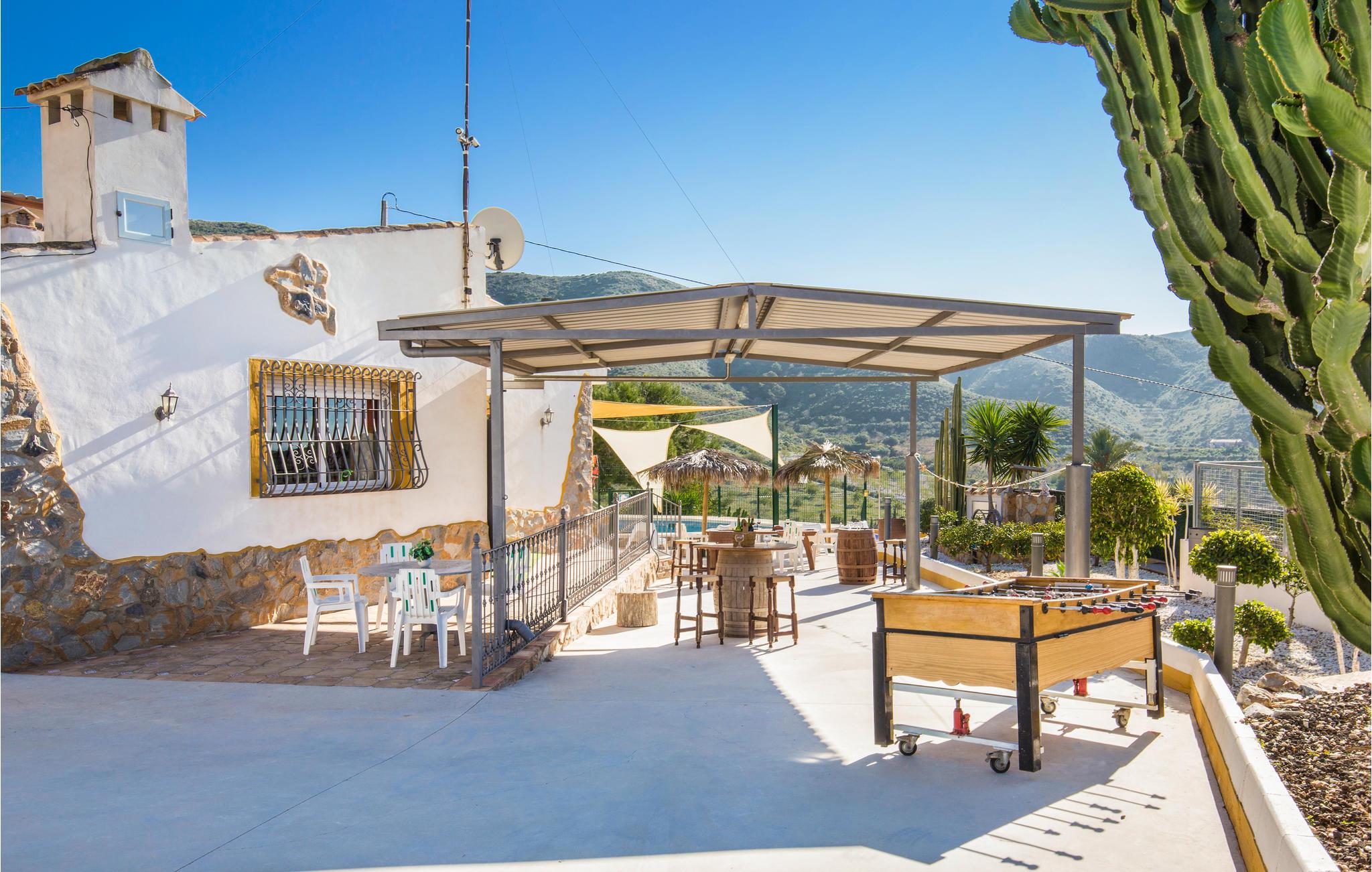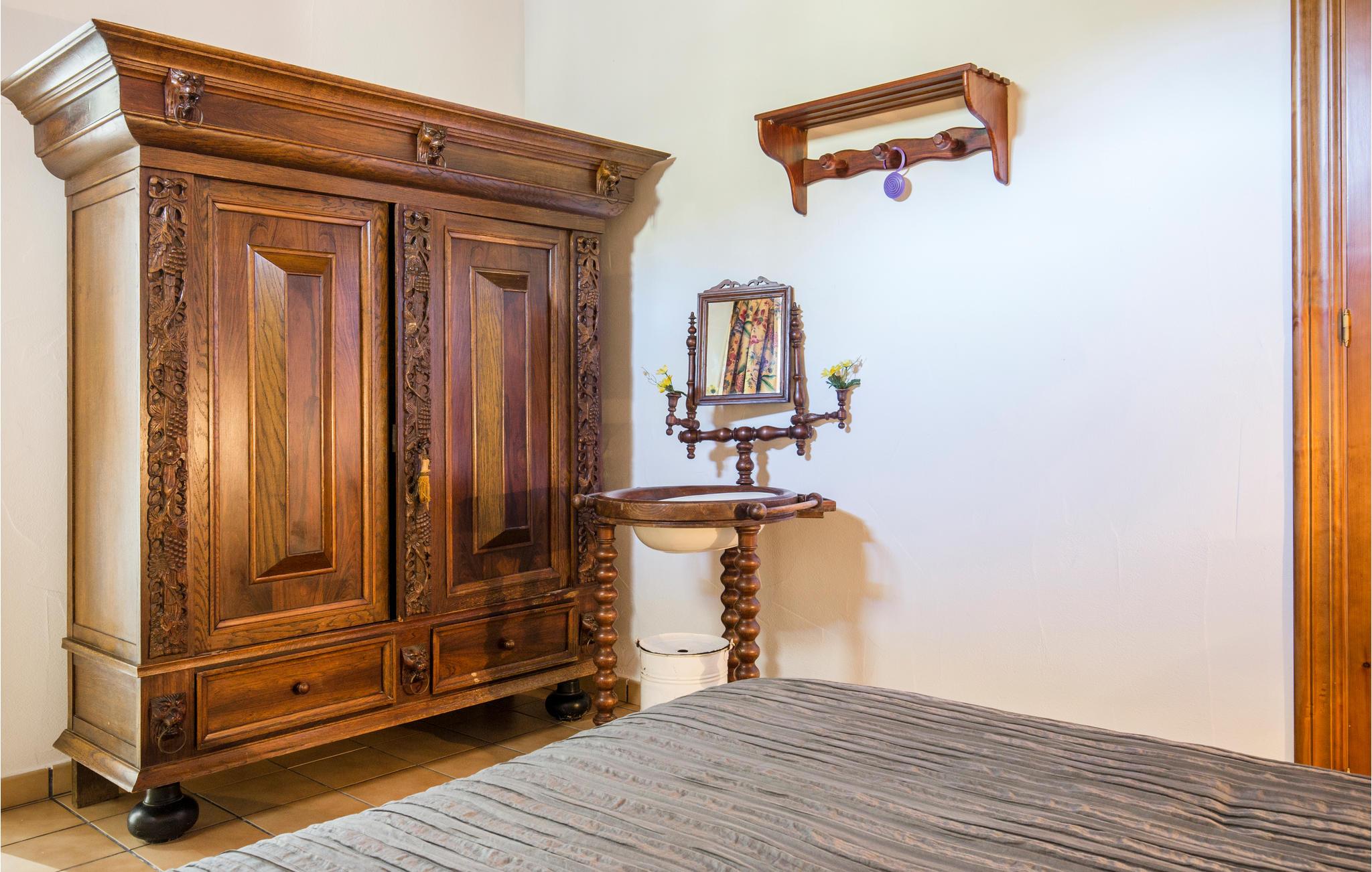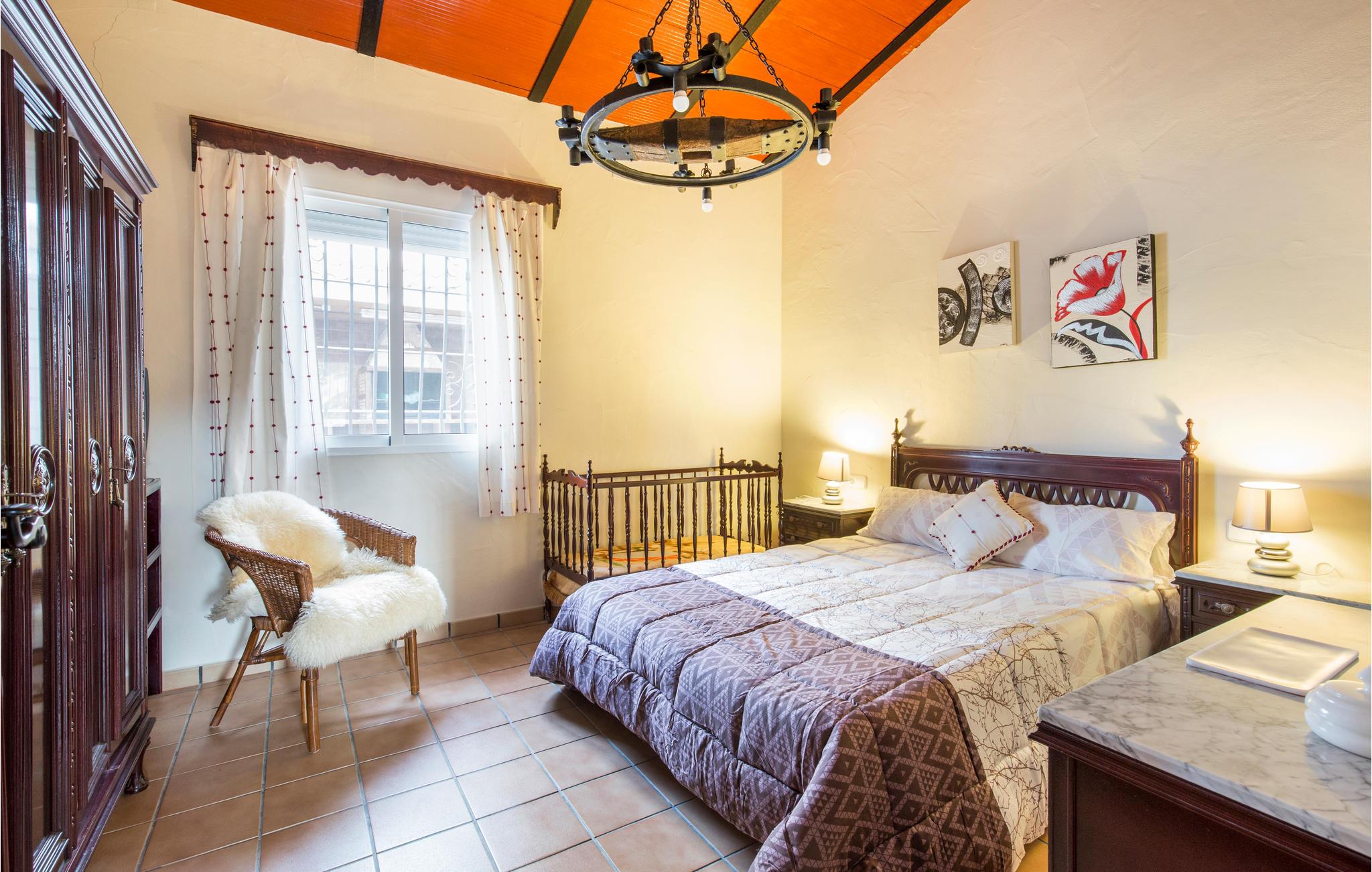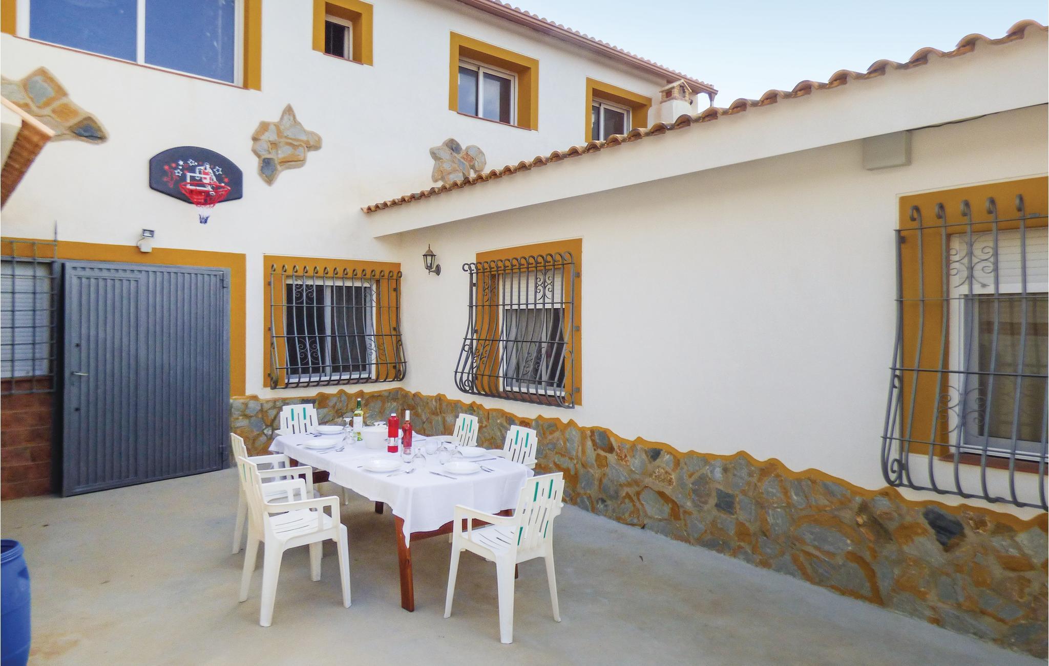 I feriehuset er der fire soveværelser, tre badeværelser, en bar, en stue i åben forbindelse med køkken og en kamin til de kølige vintermåneder. Der skal betales for brænde til kaminen.