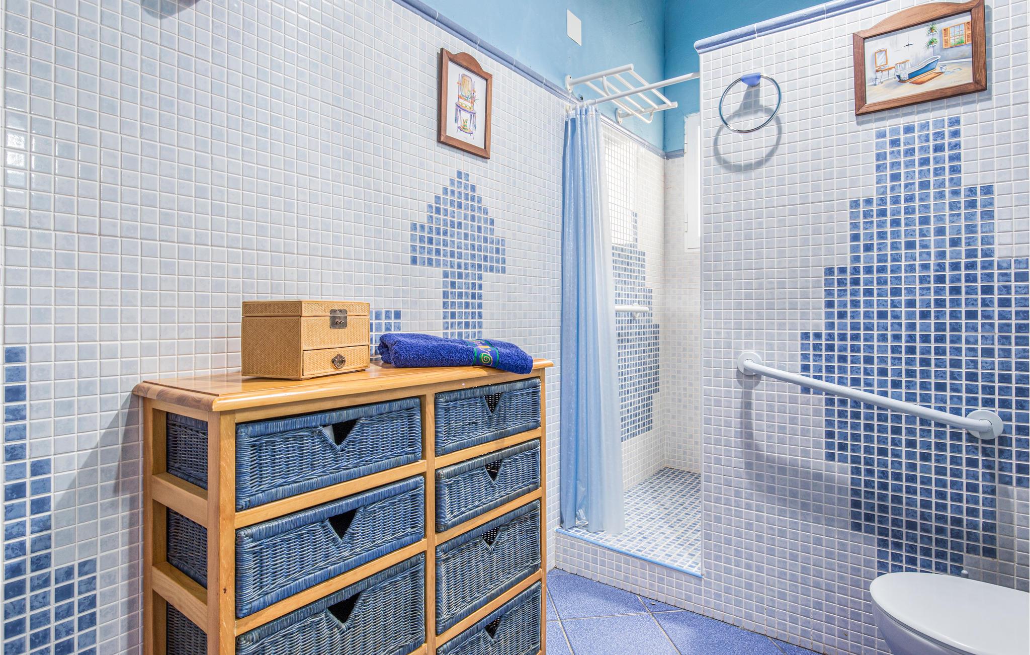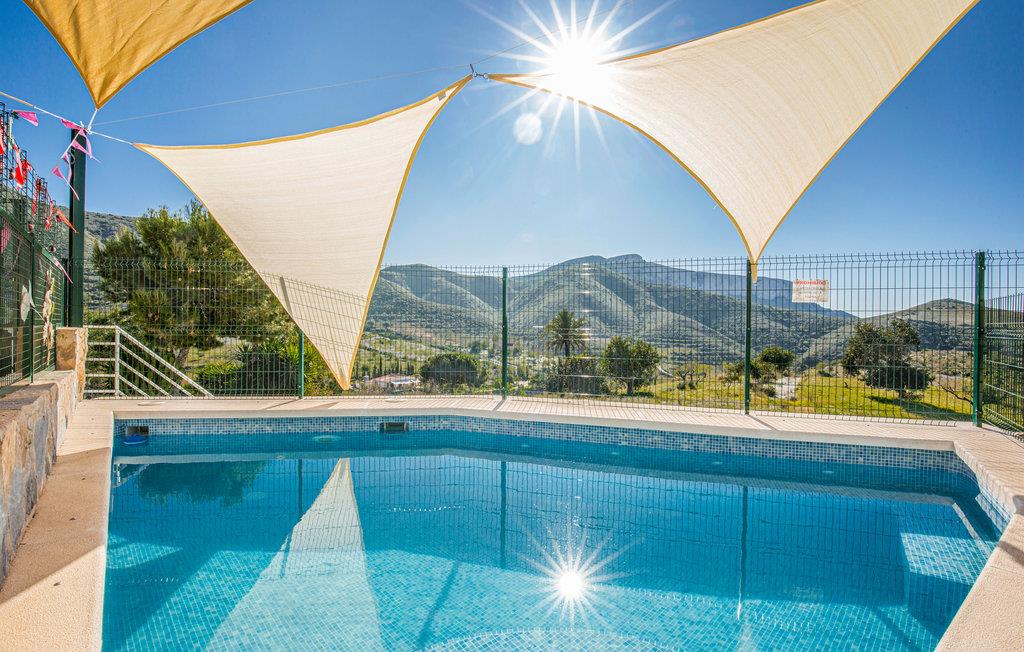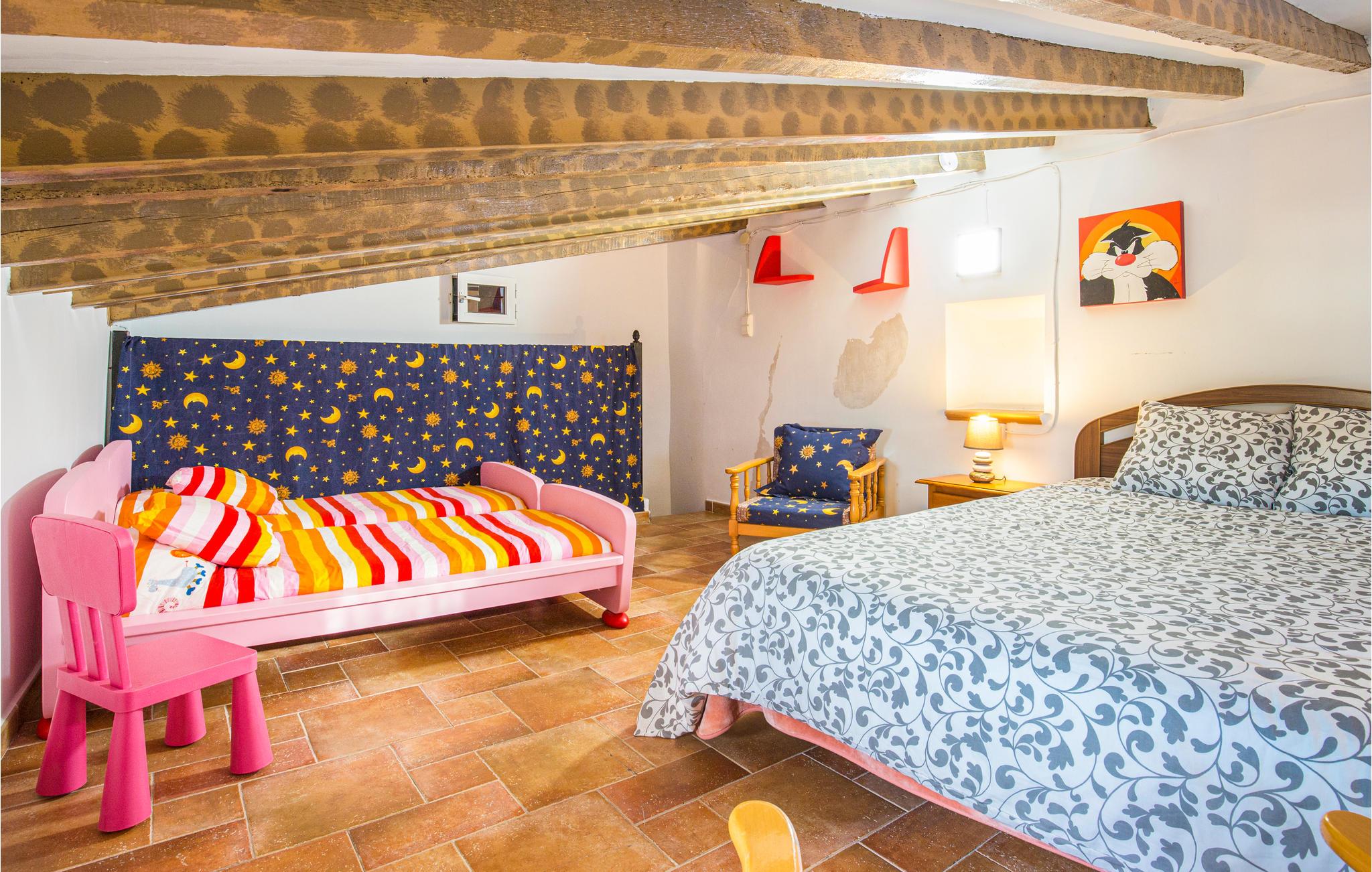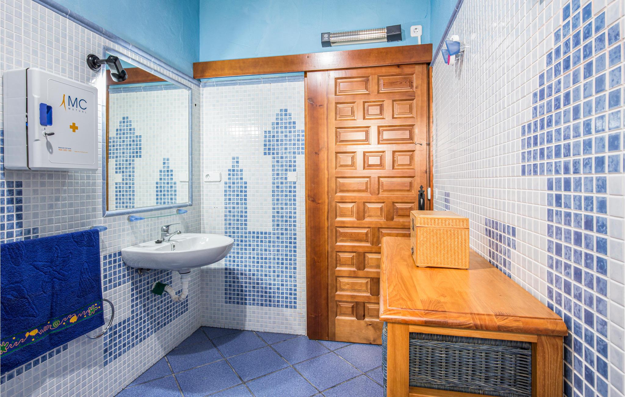 I feriehuset er der fire soveværelser, tre badeværelser, en bar, en stue i åben forbindelse med køkken og en kamin til de kølige vintermåneder. Der skal betales for brænde til kaminen.