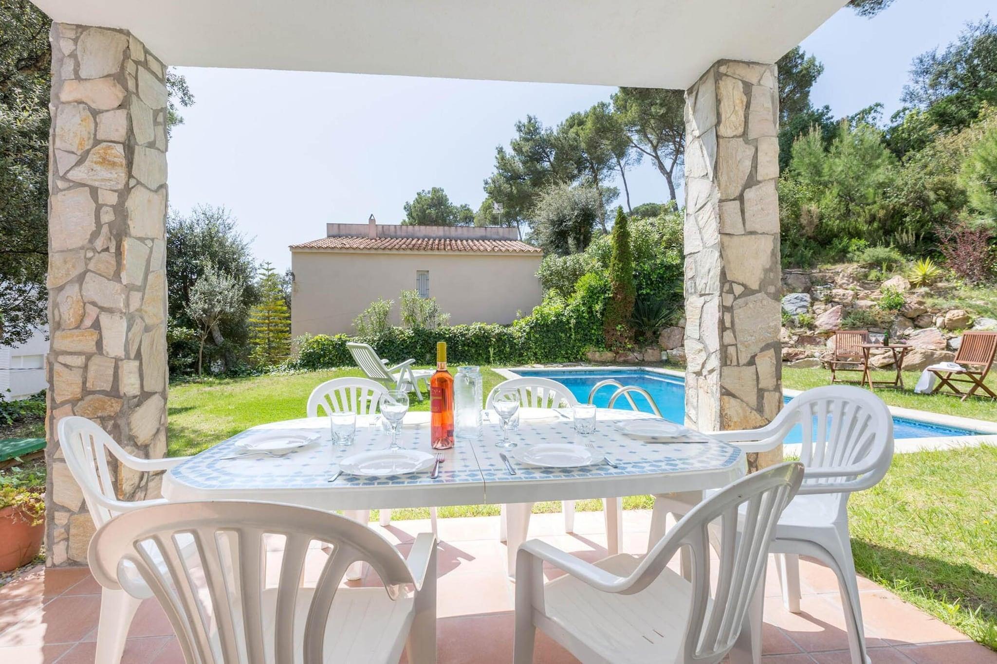 Denne charmerende villa med 3 soveværelser i Tamariu tilbyder rummelig indkvartering for op til 6 personer, hvilket gør den ideel til en familieferie. Med et generøst 167 m² boligareal giver villaen et behageligt og afslappende miljø, komplet med en privat have og terrasse, hvor du kan nyde Middelhavets sol. Ejendommen er beliggende i et familievenligt område, kun 1 km fra den smukke sandstrand, lokale restauranter og supermarkeder, hvilket gør den perfekt placeret til både afslapning og bekvemmelighed. Indenfor har villaen en hyggelig stue med pejs, tv og USB-internet samt elvarme for at sikre et behageligt ophold året rundt. Det uafhængige køkken er fuldt udstyret med moderne apparater, herunder en glaskeramisk kogeplade, køleskab, mikroovn, ovn, fryser, opvaskemaskine, kaffemaskine og brødrister, hvilket sikrer, at du har alt det nødvendige til at tilberede måltider under dit ophold. Villaen tilbyder også en privat swimmingpool og en garage til parkering. Med sin rolige beliggenhed og veludstyrede faciliteter er denne villa i Tamariu den perfekte base for en fredelig, men bekvem ferie på Costa Brava. Uanset om du vil slappe af ved poolen, udforske stranden eller nyde lokale restauranter, tilbyder denne ejendom alt, hvad du behøver for et mindeværdigt ophold.