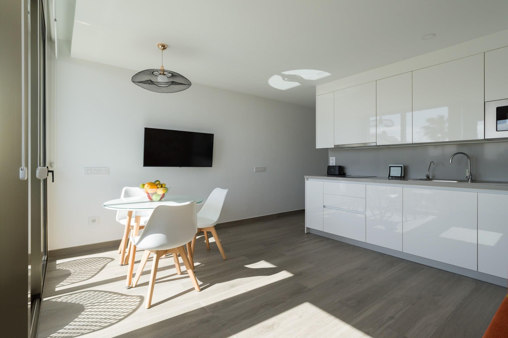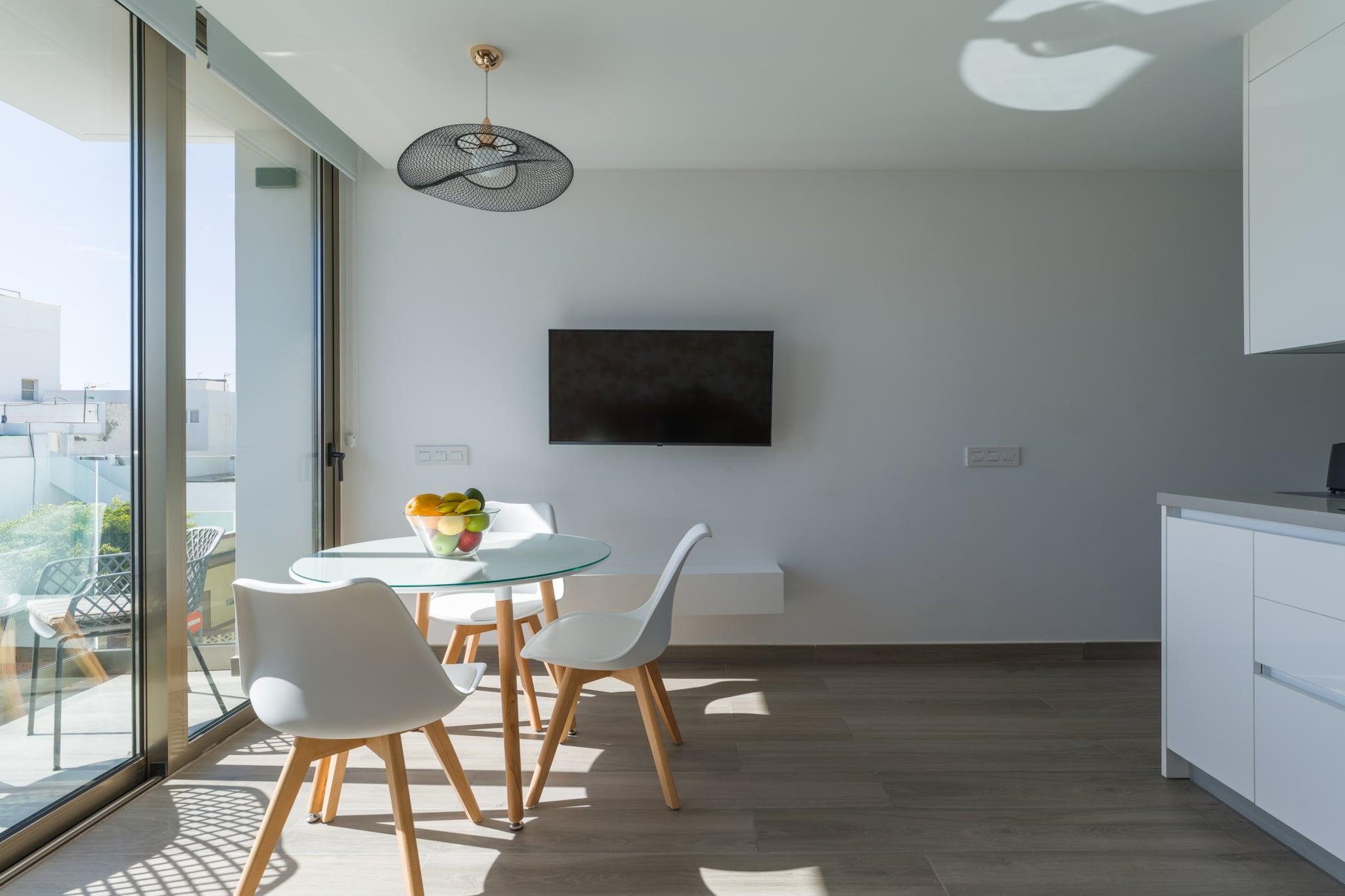 Nyd et afslappende kystophold i dette hyggelige og moderne hus på 60 m² ved stranden i Telde, ideelt for op til 3 gæster. Med et komfortabelt soveværelse og et varmt, indbydende interiør tilbyder denne nybyggede bolig alt, hvad du behøver for en fredelig ferie kun få skridt fra Atlanterhavet. Beliggende kun 100 meter fra Playa de Melenaras bløde sand og 250 meter fra Playa de Salinetas, er boligen perfekt beliggende for strandelskere. Et nærliggende supermarked (Spar Salinetas) og restauranter såsom El Rincón de Paqui (200 m) tilbyder nem adgang til det vigtigste og lokale køkken. Clavellinas busstoppested ligger kun 350 m væk, hvilket gør det nemt at udforske øen. Indvendigt har huset et lyst opholdsrum, en privat terrasse på 4 m² og et fuldt udstyret åbent køkken med keramisk kogeplade, køleskab, mikroovn, fryser, kaffemaskine, brødrister, kedel, tallerkener og køkkenredskaber. Yderligere faciliteter inkluderer Wi-Fi, TV, radio, hårtørrer, vaskemaskine, tørretumbler, strygejern og elevator for ekstra komfort. Inden for en kort køretur kan du nå Tufias klippestrand (7 km), El Cortijo Golfbane (8 km), eller endda forlystelsesparkerne og naturreservaterne i den sydlige del af øen. Gran Canaria Lufthavn ligger bekvemt kun 7 km væk. Perfekt til par, solorejsende eller små familier, dette charmerende hus ved havet kombinerer komfort og beliggenhed for et mindeværdigt ophold på Gran Canaria.