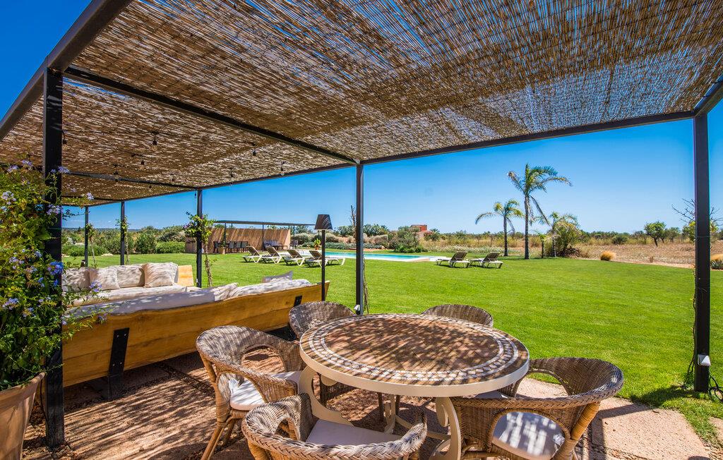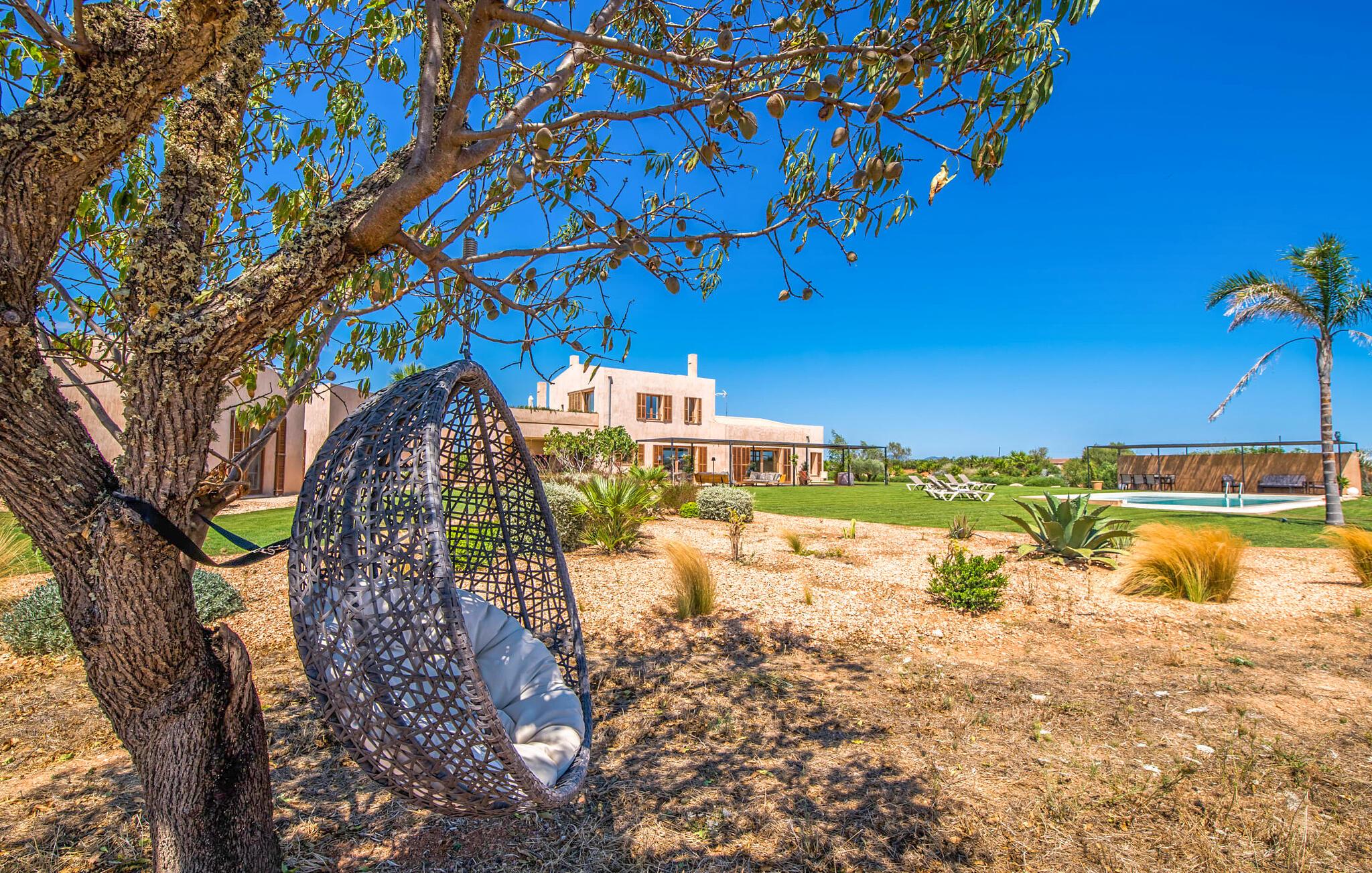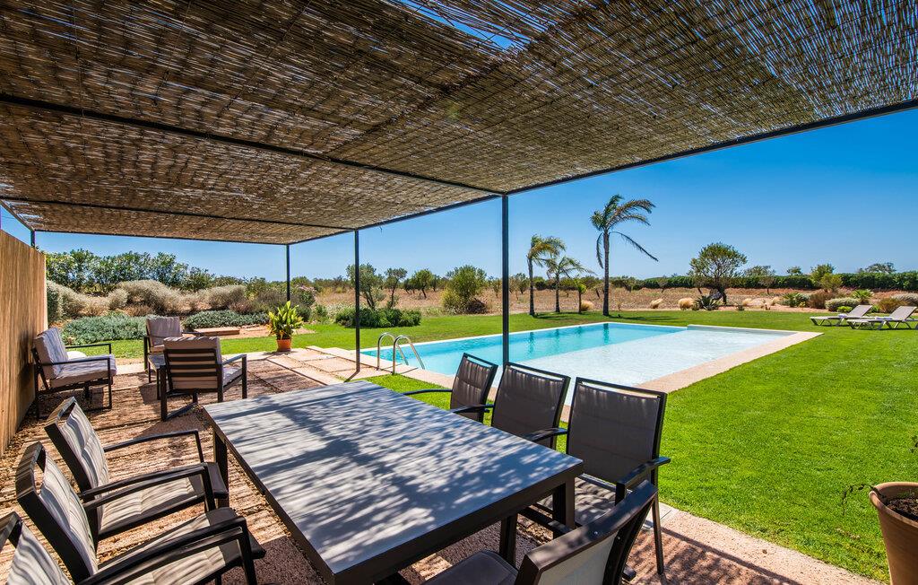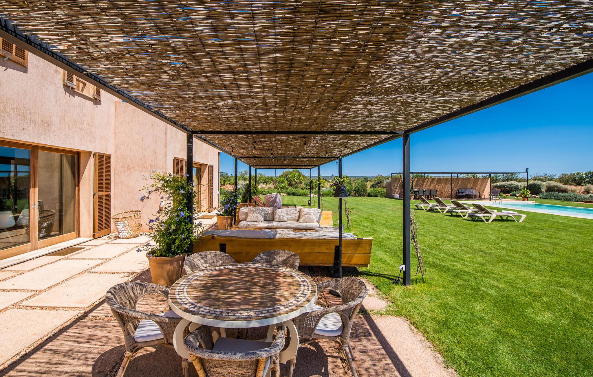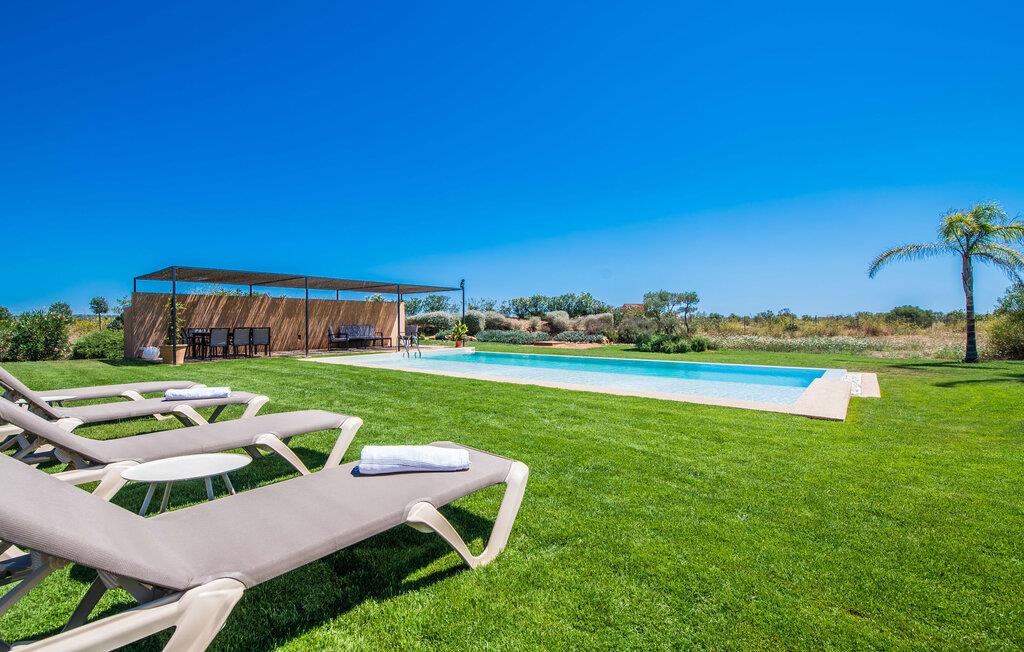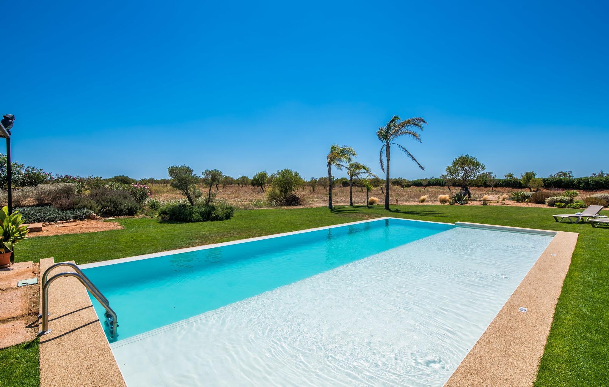 Midt mellem marker i den vidunderlige vidde af den sydlige del af øen vil I opdage den unikke villa "Thalassa d'Es Trenc". Ejendommen er opført i 2018 og imponerer med sin progressive æstetik, hvilket også afspejles i ejendommens udendørsareal. En have med græsplæner og en rummelig pool med børnevenlig dybde er omgivet af palmer. Under den overdækkede terrasse for enden af poolen kan I slappe af i komfortable siddepladser efter svømning eller vie jeres fulde opmærksomhed til solen på de indbydende liggestole. Der er en aflang veranda lige ved siden af bygningen. Morgenkaffe, morgenmad sammen på smagfulde udendørsmøbler eller hjemmelavet sangria om aftenen i den afslappede lounge – her finder I et skønt sted fuld af uhæmmet livsglæde på alle tider af døgnet. Der er terrasser foran de enkelte lejligheder og ikke at forglemme panoramaudsigten fra tagterrassen ved siden af det store soveværelse. Hvis jeres ideelle ferie involverer at lave lækre måltider med venner eller familie og også nyder at gøre det udendørs, så vil I elske den udendørs kabyss lige så meget som vi gør. Det er i bund og grund en forlængelse af det trendy og fuldt udstyrede indendørs køkken, som det har direkte adgang til. Det ser ud til, at arkitekten virkelig var opmærksom på hver detalje i dette imponerende attraktive landsted. "Form følger funktion": Denne bygning inkarnerer dette motto perfekt med sit puristiske udseende. Den lange bygnings lige linjer og rene former danner et hovedhus med en sidefløj, der rummer to separate atelierer med hver sit badeværelse. Studierne er forbundet med hovedhuset, men danner stadig selvstændige enheder med deres egne indgange, hvilket sikrer, at alle privatlivsbehov er opfyldt. Det unikke, minimalistiske interiørdesign i beroligende beige og hvide toner afspejles også i de tidløse, højkvalitetsmøbler lavet af bæredygtige materialer. Designet imponerer med sin enkle, men elegante karakter og er samtidig meget komfortabel. Sidst, men ikke mindst, har det træmøbler, en pejs og gulvvarme, hvilket gør huset til fremragende indkvartering selv i de køligere måneder af lavsæsonen. En elevator sikrer barrierefri adgang til soveværelset på øverste etage. De trendy badeværelser, som præsenterer en matchende, harmonisk lys farveskala, opfylder de samme krav og er udstyret med brusekabine. Afslapning er garanteret – ikke mindst på grund af det vidunderlige design og gennemtænkte arkitektur, der fik os til at forelske os i dette sted. Placeringen af villaen, hvis navn er en hyldest til den nærliggende drømmestrand med caribisk flair, er perfekt. Selv soldyrkere, der foretrækker at svømme nøgne, vil finde det perfekte sted i det fine sand i flere kilometer. På grund af villaens nærhed til landevejen, som indimellem er hørbar, kan I ekstremt hurtigt nå de omkringliggende indre byer og kystbyer og blive overrasket over mulighederne, lige fra turisttilbud til landlige landsbyer. Vores konklusion om "Thalassa d'Es Trenc": Mere end anbefalet og en absolut drømmeplacering, der hjælper jer med at undslippe hverdagens stress. Den nybyggede villa "Thalassa d'Es Trenc" imponerer med sin puristiske æstetik og et smukt udeområde. Det barrierefri hus ligger i den sydlige del af øen mellem Campos og kystbyen Ses Covetes, hvor I kan kombinere jeres shopping med et besøg på stranden. Denne premium ejendom skylder sit navn til sin nærhed til drømmebugten Es Trenc, som ligger omkring 4 km fra villaen. Vi anser denne bolig for tilgængelig for vores gæster med nedsat mobilitet, men vi opfordrer alle gæster til at overveje boligens egnethed baseret på deres egne krav.