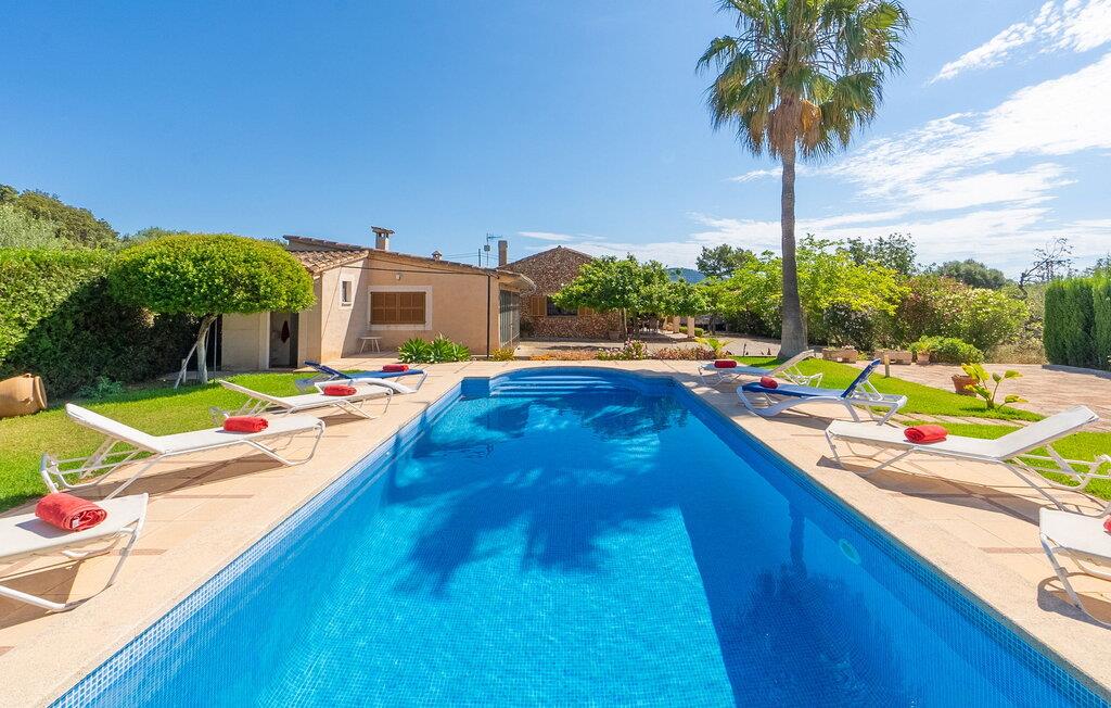 Hvis I leder efter en afslappende, afslappende villaferie på Mallorca og ønsker både en hyggelig atmosfære og virkelig fremragende værdi for pengene, så vil denne villa helt sikkert varme jeres hjerte. Ejerne har formået at kombinere moderne og traditionelle elementer både indendørs og udendørs på en indbydende måde, hvilket skaber et behageligt ophold med typisk mallorcinsk karakter. Når man ankommer til den smukke ejendom, kommer denne originale effekt tydeligt frem i huset, der trods sin nyere opførelse har en klassisk naturstensfacade. I får straks lyst til at slappe af på den rummelige terrasse foran, som fører til poolområdet kun få meter væk. Begge områder er udstyret med nok udendørs møbler, så alt hvad I behøver er jeres yndlings kølige drink i hånden. Men at sidde udenfor slutter ikke der, da yderligere tilstødende terrasser strækker sig over 100 m². Dette landskab er delvist overdækket og byder på masser af skygge omkring villaen. Det er også omgivet af en velholdt have med mange træer og mange middelhavsplanter. Hele ejendommen er vidunderligt indlejret i det helt fantastiske bakkelandskab omkring Son Servera. Et særligt højdepunkt ved siden af poolen er et kæmpe udendørs grillområde, hvor I kan grille når som helst om aftenen. Det udendørs badeværelse er også meget praktisk. I behøver ikke gå rundt i huset med våde fødder efter svømning. Villaens indretning har en stor stue med et hyggeligt opholdsområde ved den åbne pejs og en spiseplads. Opholdsstuen er også udstyret med et fjernsyn, en dvd-afspiller, et musikanlæg og WiFi. Layoutet er smart, da den ene side af rummet åbner til det fuldt udstyrede amerikanske køkken med opvaskemaskine, mikroovn, kaffemaskine, brødrister og meget mere. Den, der står for madlavningen, kan blive midt i handlingen og være der, og at dække og rydde af bordet kan klares med få trin. Fire smukt indrettede dobbeltværelser sikrer en afslappende søvn i rolige omgivelser for alle. Tre af disse værelser har hver to enkeltsenge og det fjerde værelse har en stor dobbeltseng. To moderne badeværelser med bruser fuldender huset, som er særligt lyst og oversvømmet med lys takket være de store vinduespartier. Det samme gør sig gældende for opholdsrummet, som har gulv-til-loft glasdøre til terrassen. Især hvis I rejser med en eller to familier, tager børn med og leder efter en god lejepris, kan I ikke gå galt med Villa “Tia”. Gode nyheder for strandelskere: den nærmeste strand ligger kun 5 minutter væk. Dette er en sandstrand med en gradvis hældning ned i vandet, ideel til børn. Andre strande er også kun en kort køretur væk. Den fine sandstrand Playa de Sa Coma, som er omkring 900 m lang og 60 m bred og har en skyggefuld promenade, er også meget attraktiv. Cala Ratjada (14 km) byder også på en vidunderlig promenade og gode aftenrestauranter. For shopping, kan I lide byen Manacor (18 km), som har butikker, restauranter og natklubber. Tingene er mere idylliske i den smukke landsby Artà (12 km), med en indbydende gågade. Den smukke, absolut familievenlige villa "Tia" har en storslået udsigt fra sin beliggenhed nær kystbyen Son Servera. Huset ligger på en 7.000 m² stor grund, hvilket giver nem adgang til nogle af de lokale strande, som er blandt de smukkeste sandbugter på Mallorca. Son Servera er kun et par minutters kørsel væk og har et dejligt landmandsmarked om fredagen samt supermarkeder og restauranter.