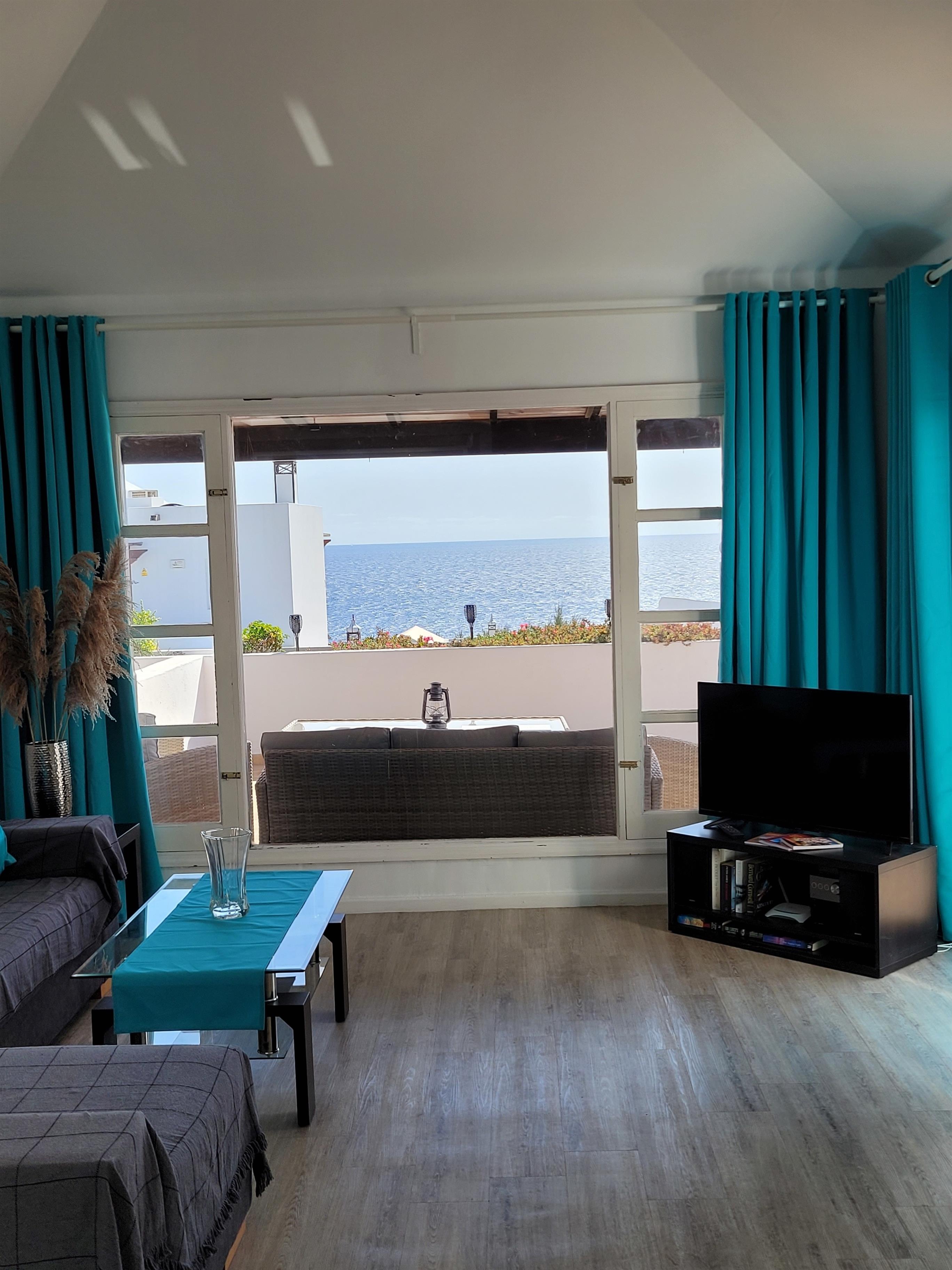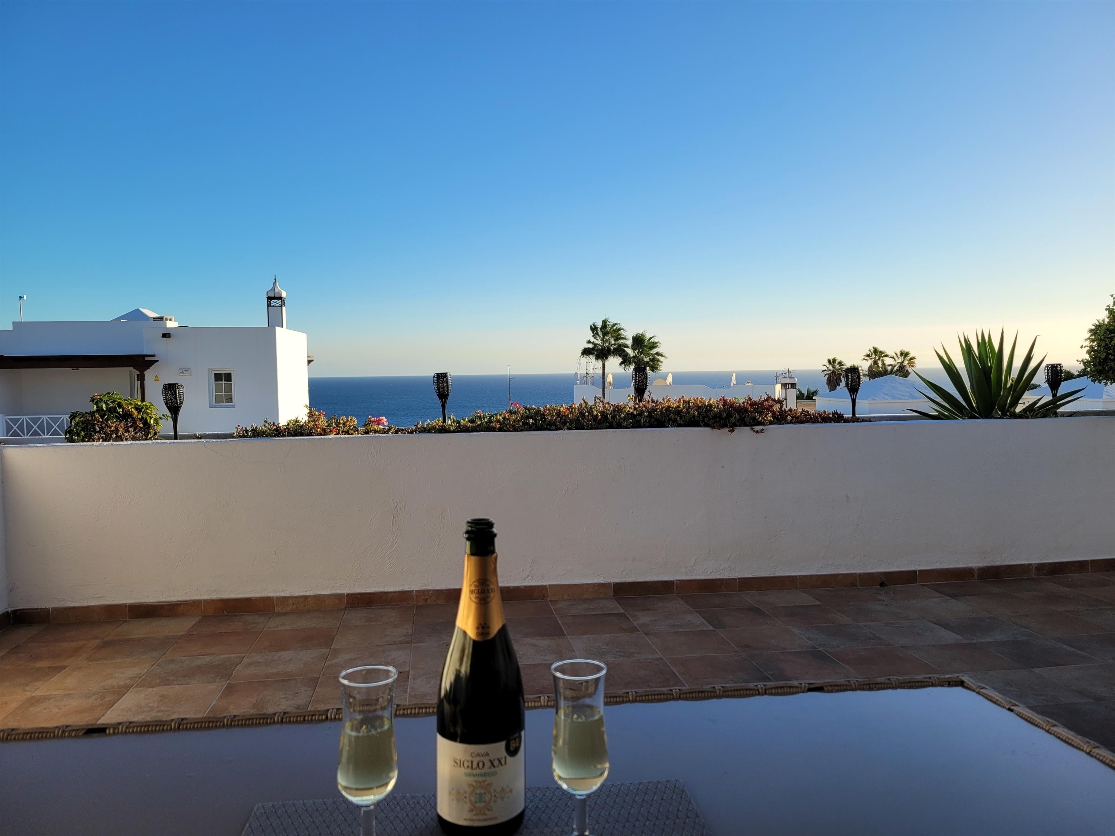 Genießen sie einen erholsamen unabhängigen Urlaub in dieser schönen Ferienwohnung oberhalb des malerischen Fischerhafens in der Altstadt von Puerto Del Carmen im Lago Verde Komplex. Die große Sonnenterrasse mit bequemen Terrassenmöbel bietet eine herrliche Aussicht auf das Meer. Der Komplex verfügt über einen beheizten Infinity Pool mit Meerblick und Pool Snackbar, an der sie auch frühstücken können. Fußläufig erreichen sie einen Supermarkt, Bars, Restaurants , sowie die Bushaltestelle.