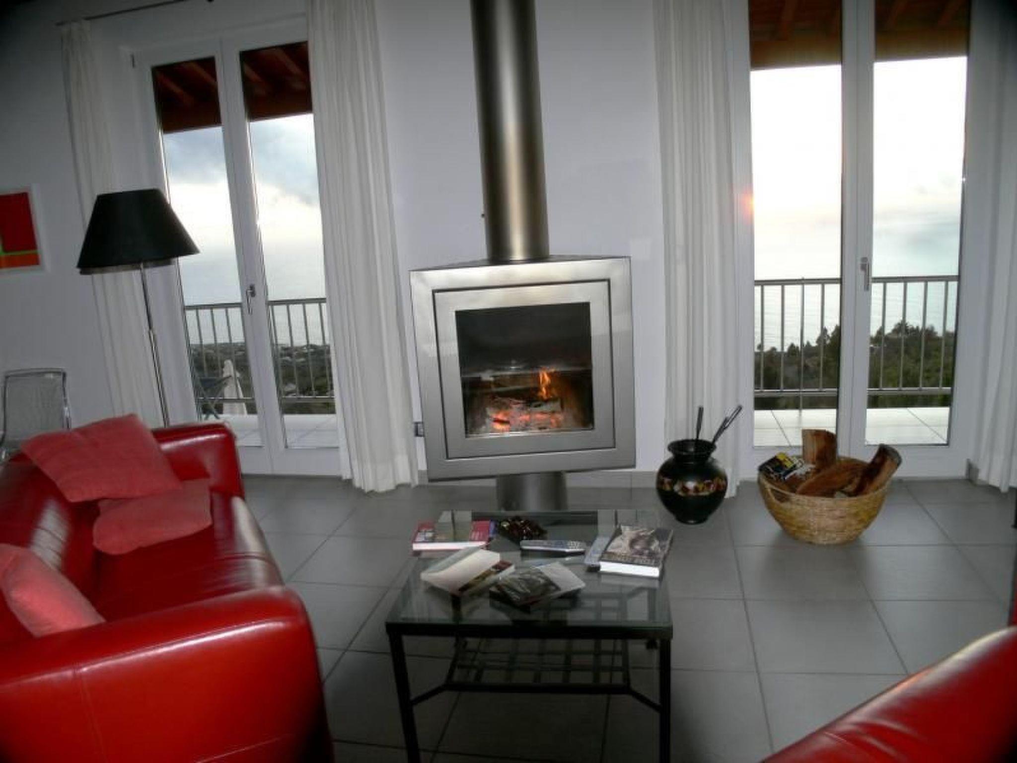 Visible Canary inner timber roof construction, floor to ceiling windows, high-quality tiles in bathrooms, floors and terraces. Ecological floor heating and hot water, large living area with kitchen, energy saving induction cooker, swivel designer fireplace, TV-SAT, internet ADSL connection with wireless internet, telephone, small book and music collections.