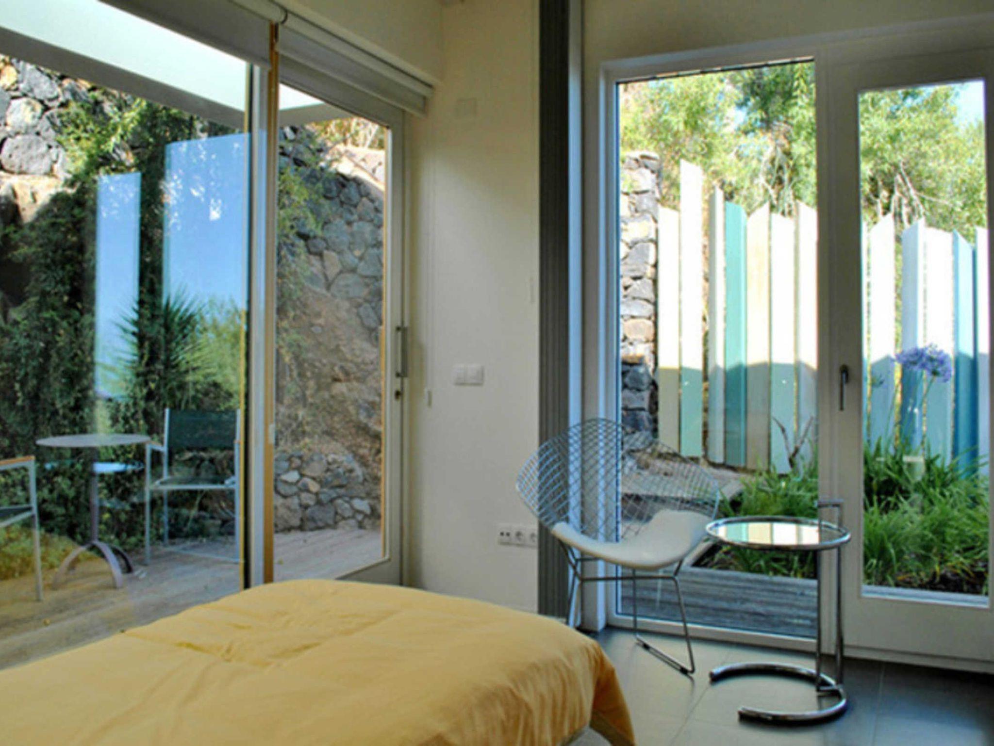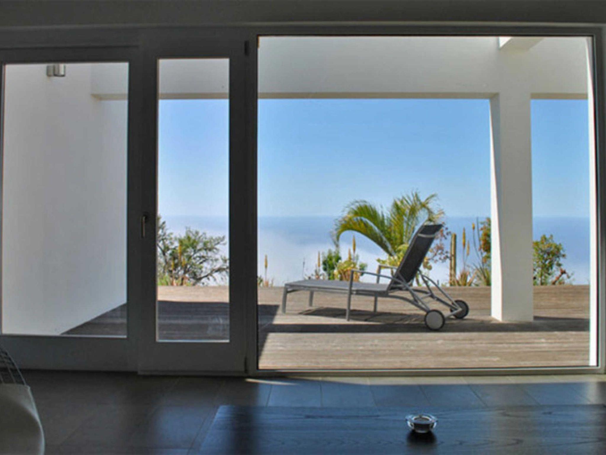 Über große Glasschiebetüren gelangt man direkt auf die Terrasse. Morgens kann man schon vom Bett aus auf den Atlantik sehen.