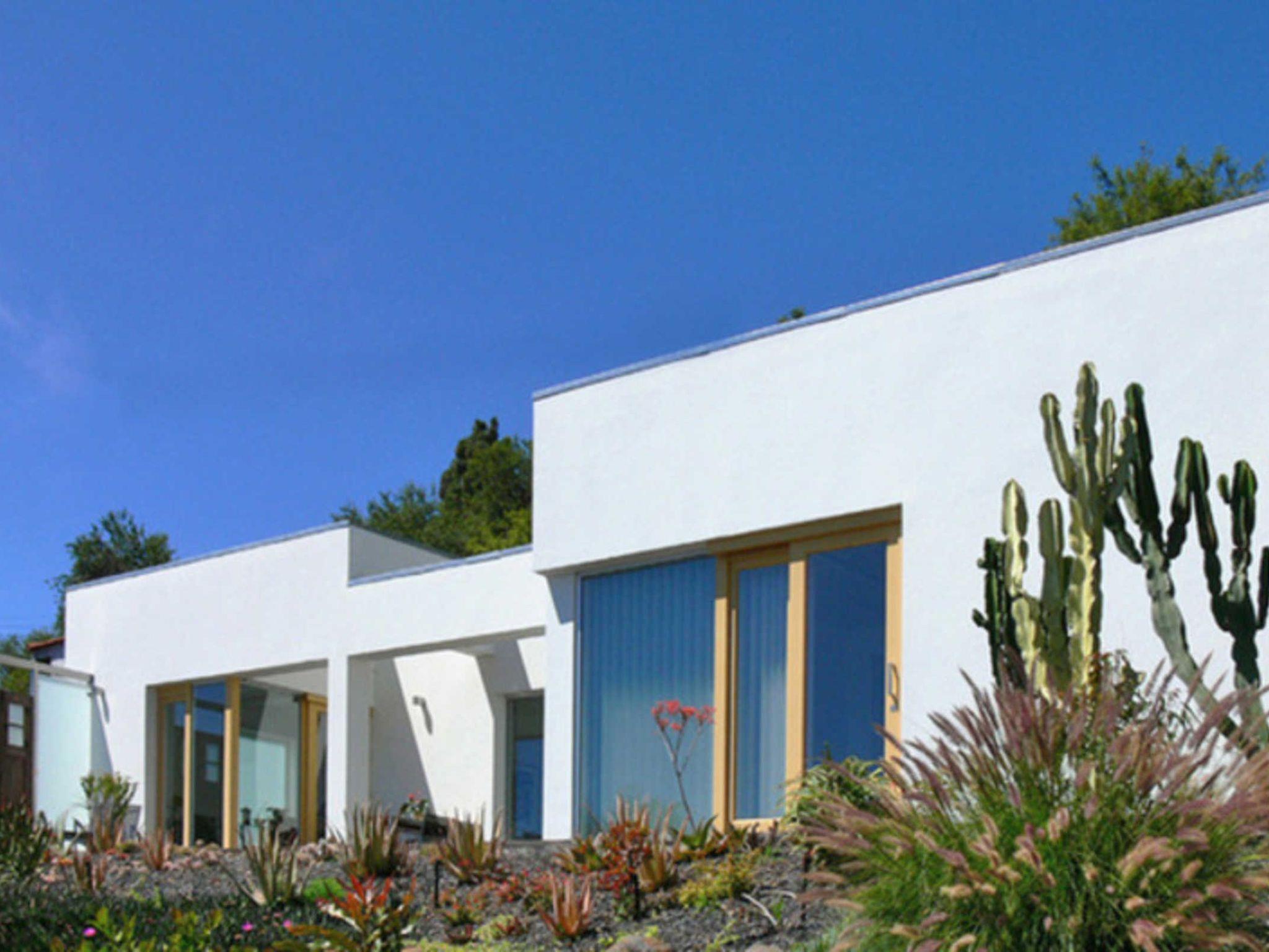 Die 84m² Wohnfläche sind lichtdurchflutet, große Fensterfronten verbinden innen und aussen.