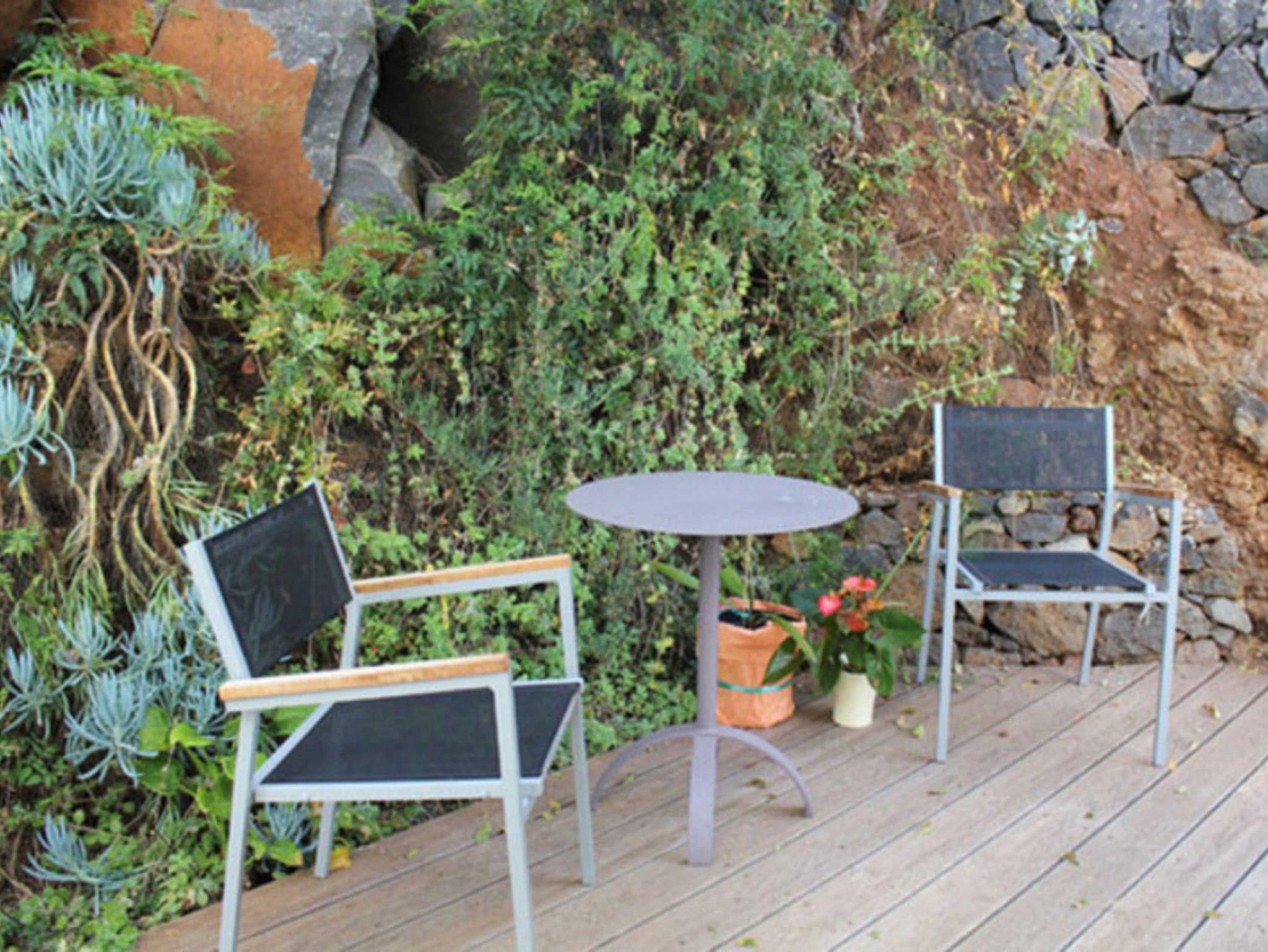 Der Garten ist terrassenförmig angelegt und einheimischen Pflanzen wie Aloe Vera und kleinen Palmen bepflanzt. Auch hier gibt es weitere Sitzmöglichkeiten und Platz für die Sonnenliegen.