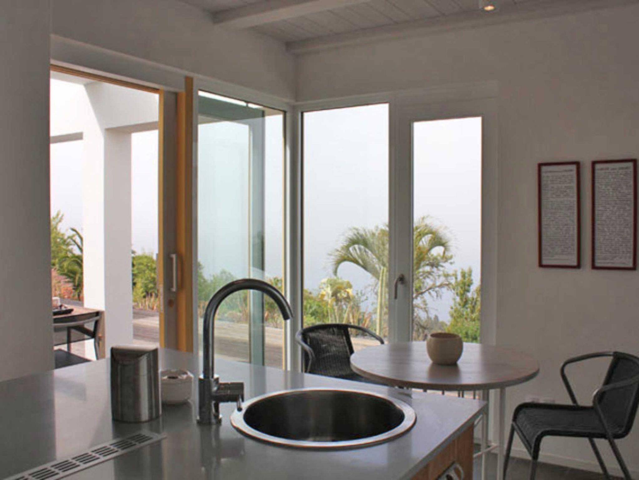 Die neu erbaute Architektenvilla La Ermita präsentiert sich in edlem, puristischem Design und fügt sich harmonisch in die noch ursprüngliche Landschaft ein. Sie befindet sich in Alleinlage in Tinizara, etwas nördlich von Tijarafe im schönen Nordwesten der Insel. Die Villa liegt ein Stück unterhalb der Hauptstraße Richtung Küste. Die Umgebung ist dünn besiedelt und ist perfekt für Erholungssuchende geeignet. Der unverbaute Blick nach Westen auf den Atlantik ist einzigartig.