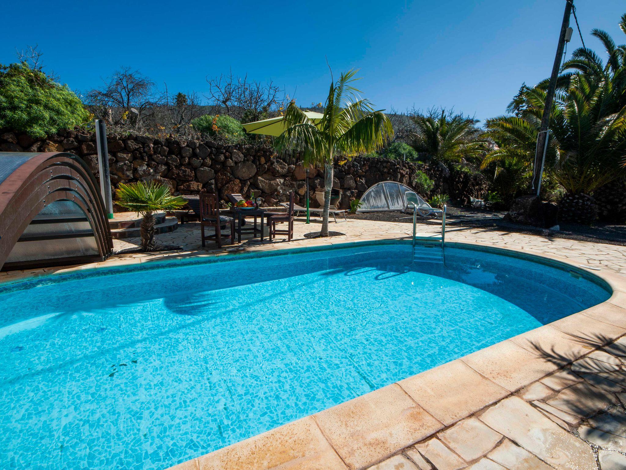 Villa Vista Azul liegt unterhalb von La Punta de Tijarafe auf ca. 350müM. Durch seine Lage in Küstennähe herrscht fast ganzjährig ein gutes Klima, selten weniger als 20°. Das Haus liegt in etwas abseits vom Camino Juan de Valle. Das 1.200m² große Grundstück ist von außen uneinsehbar und gewährleistet absolute Privatsphäre.