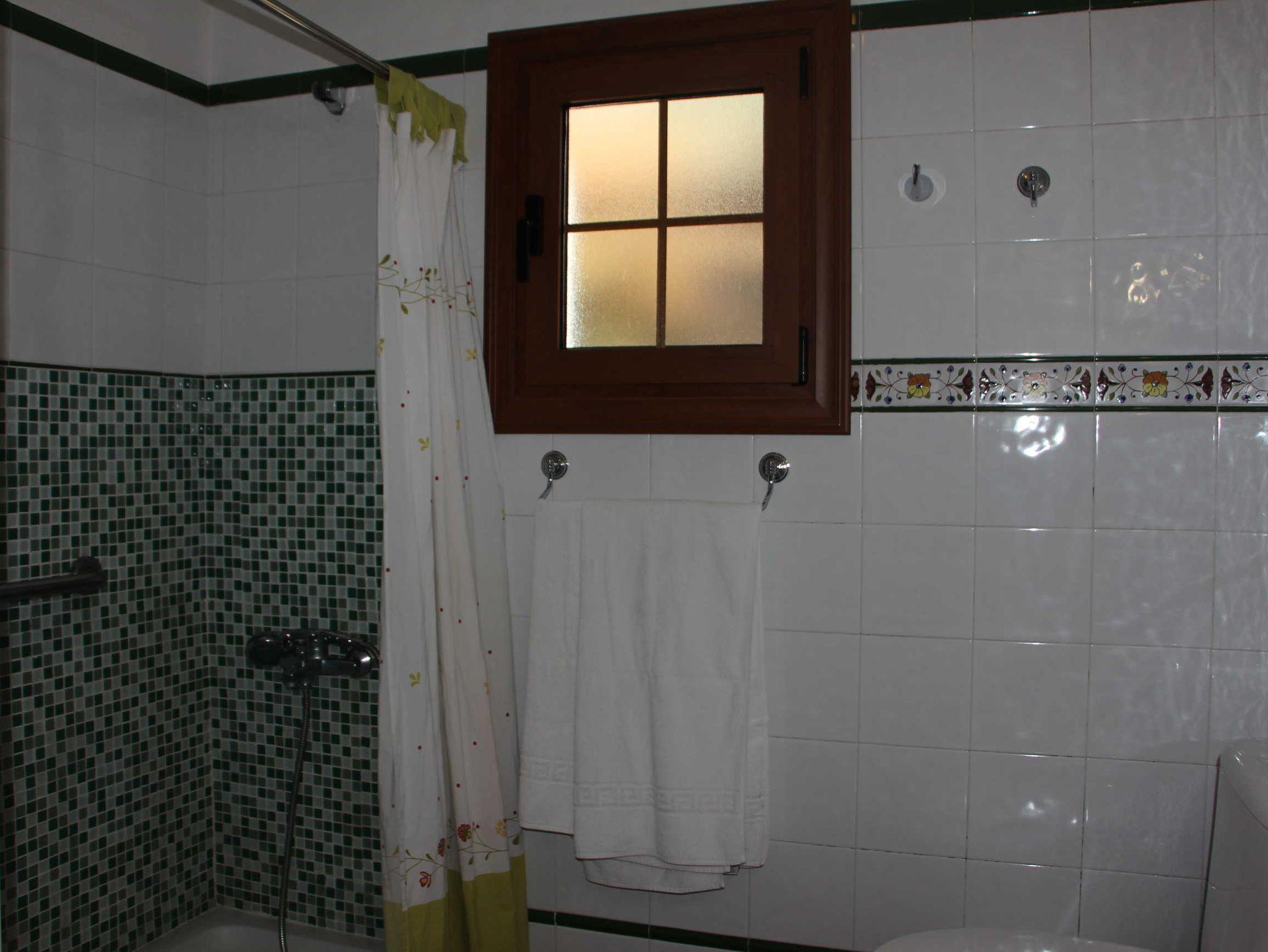 Das Bad ist schlicht, klein und zweckmäßig und hat eine Dusche, WC, Bidet und ein Waschbecken mit großem Spiegel. In einem separaten Hauswirtschaftsraum ist die Waschmaschine untergebracht.