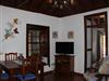 Eine überdachte Pergola mit zwei großen Fensterfronten und Sitzmöglichkeiten verbindet die Küche mit dem Rest des Hauses und spendet zusätzlich viel Licht. Mittelpunkt des Hauses ist das Wohnzimmer, von hier gehen links und rechts die beiden Schlafzimmer sowie das Bad ab. Neben einem gemütlichen 2-sitzigen Sofa sorgt ein Sessel für ein gemütliches Ambiente beim Fernsehen. Ein kleiner Tisch mit 4 Stühlen für einen Spieleabend steht in der Mitte des Raumes. Dezente Dekoration, liebevoll ausgewählte Details und Bilder der Pflanzenwelt La Palmas passen perfekt zum restlichen Stil des Hauses.