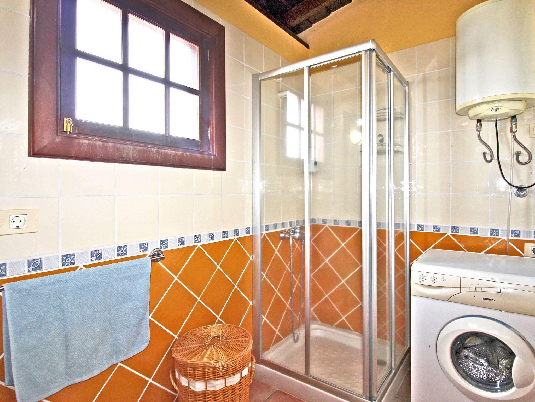 Zwischen den beiden Schlafzimmern befindet sich das Bad, der kleine Wellnessbereich des Hauses. In der Hydromassagedusche können Sie sich ordentlich durchmassieren lassen oder Sie stellen ein entspanntes Dampfbad ein. Iim Bad ist auch die Waschmaschine untergebracht.