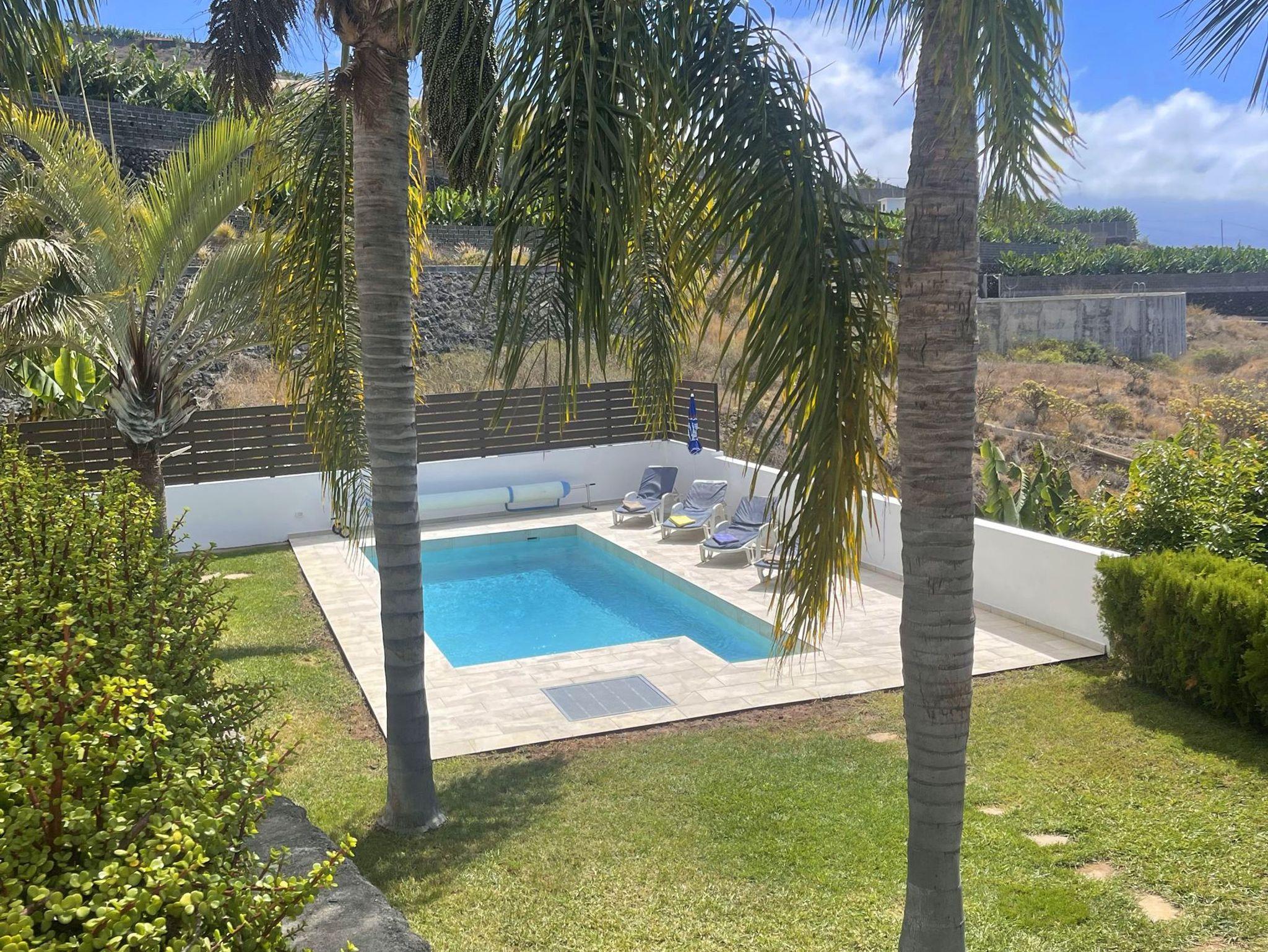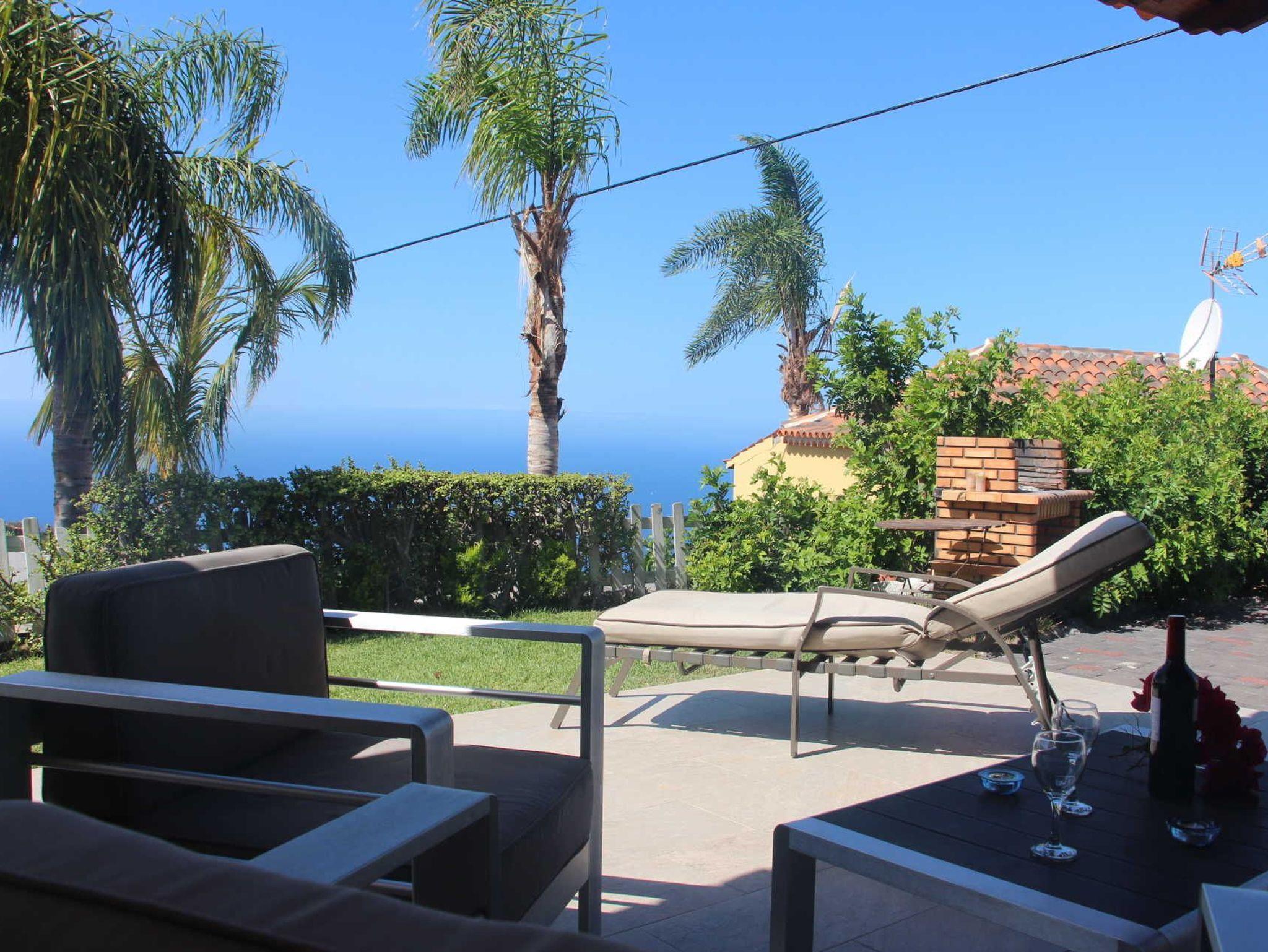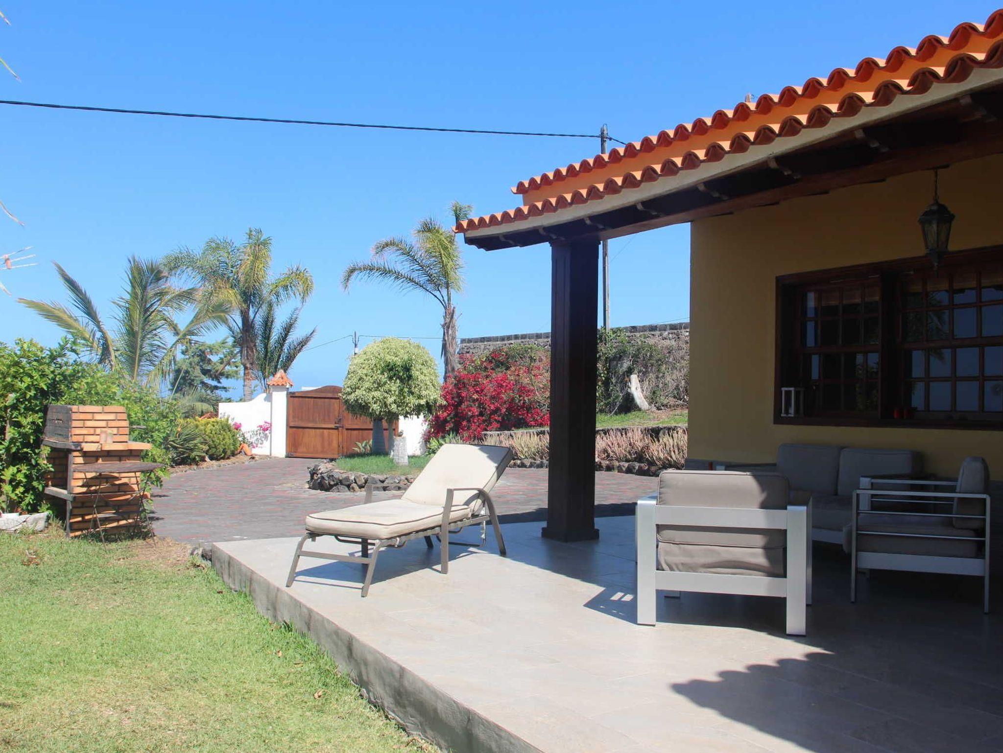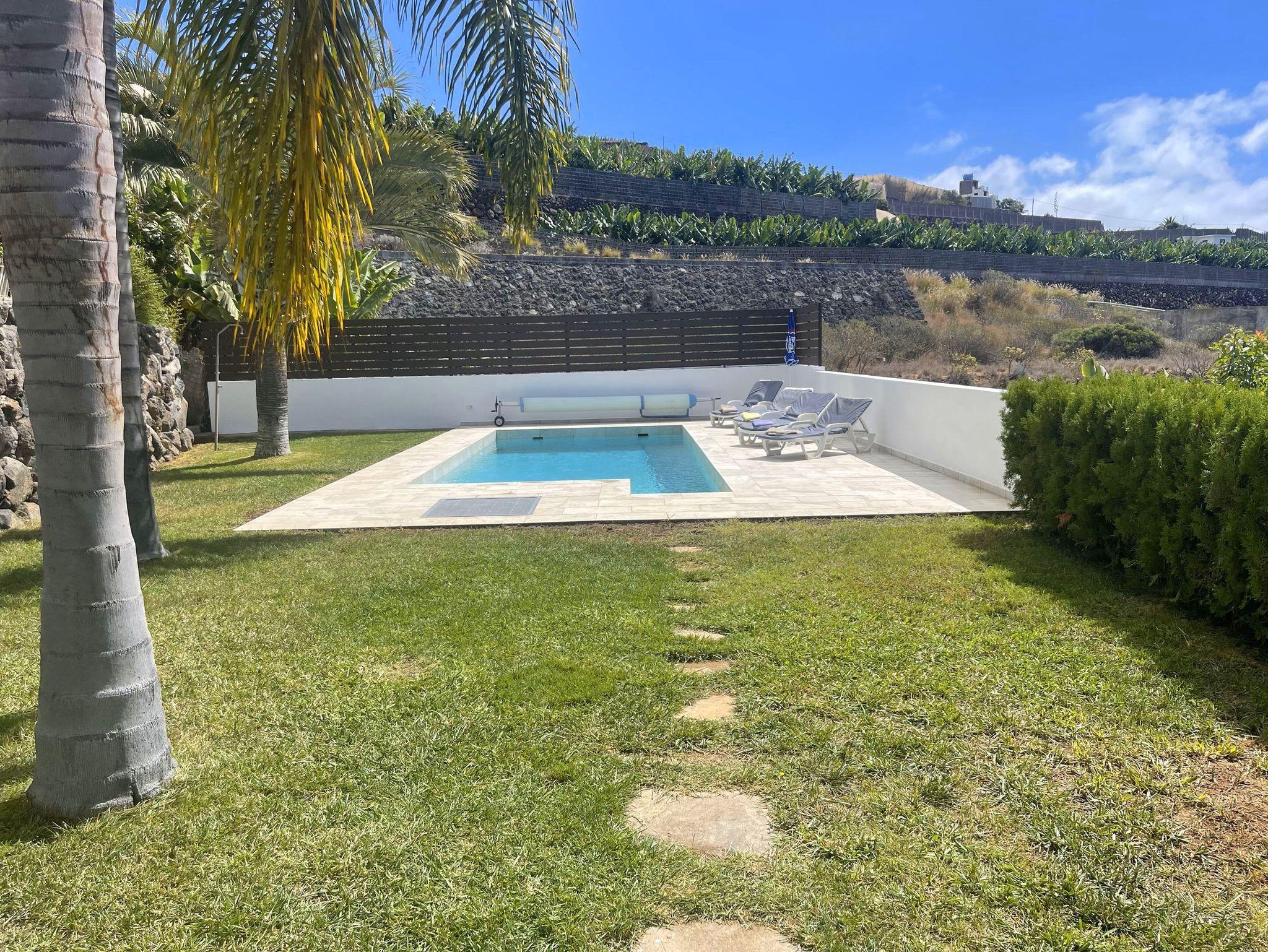 Das 1500qm große Grundstück trumpft mit einem sehr schön angelegten Garten mit viel Rasenfläche und Palmen, sowie sonnigen Terrassen und einem beheizbarer Pool auf. Vom Pool und von der Terrasse des Nebenhauses aus hat man einen herrlichem Blick auf den Atlantik.