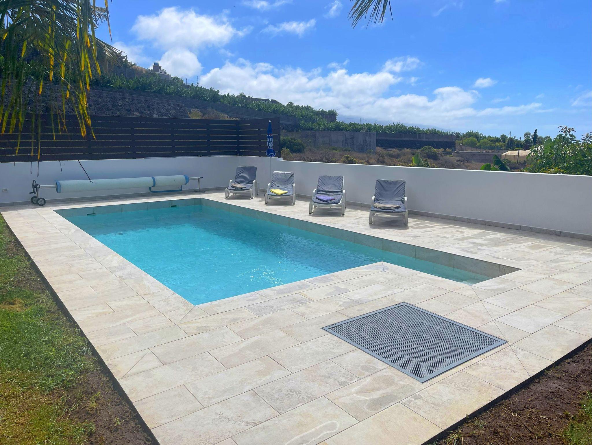 Der 8x4 Meter große Pool steht zur Alleinbenutzung zur Verfügung und der gesamte Poolbereich mit Liegefläche ist uneinsehbar.