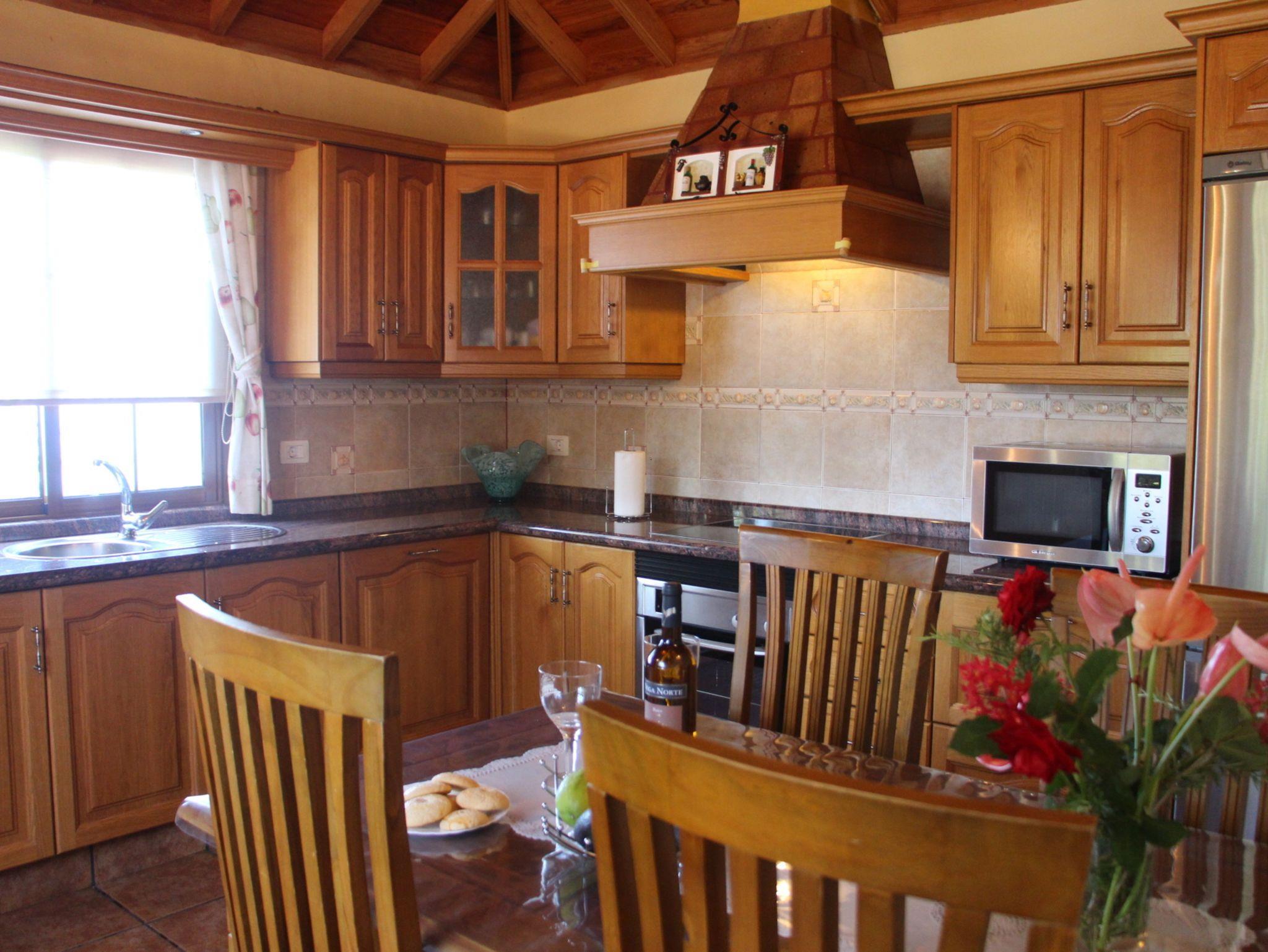 Die Küche ist mit Cerankochfeld, Backofen, Kühl/Gefrierkombination, Spülmaschine, Mikrowelle sowie diversen elektronischen Küchengeräten sehr gut ausgestattet. Vom großen Esstisch können Sie durch das große Küchenfenster das Meer sehen.