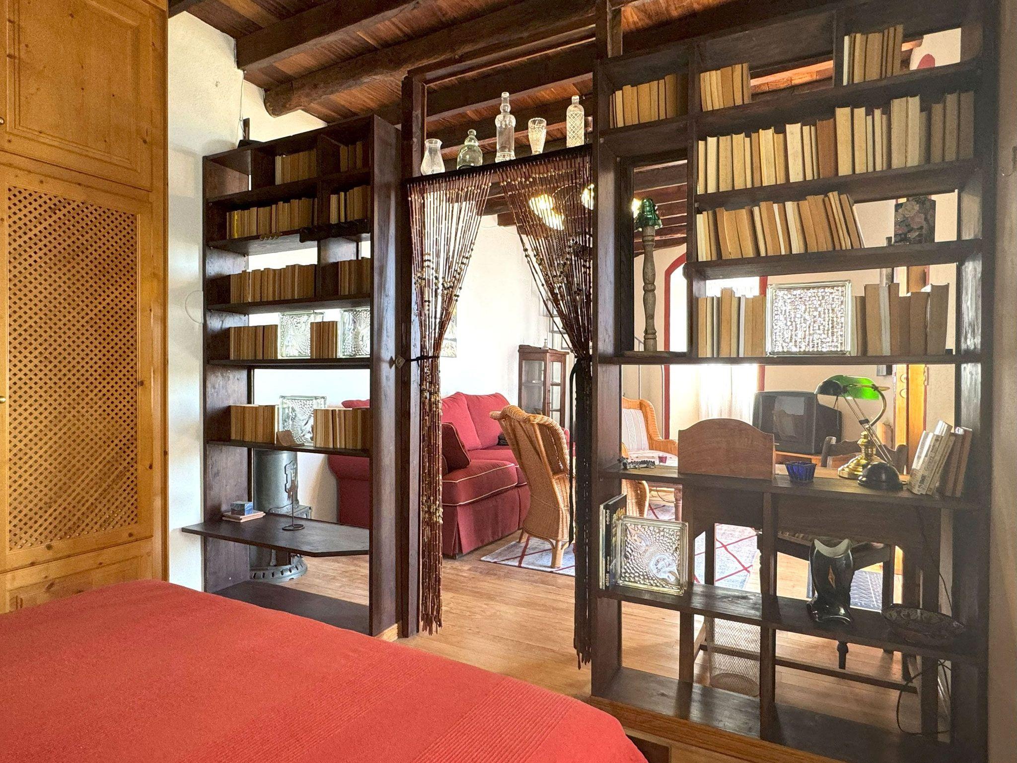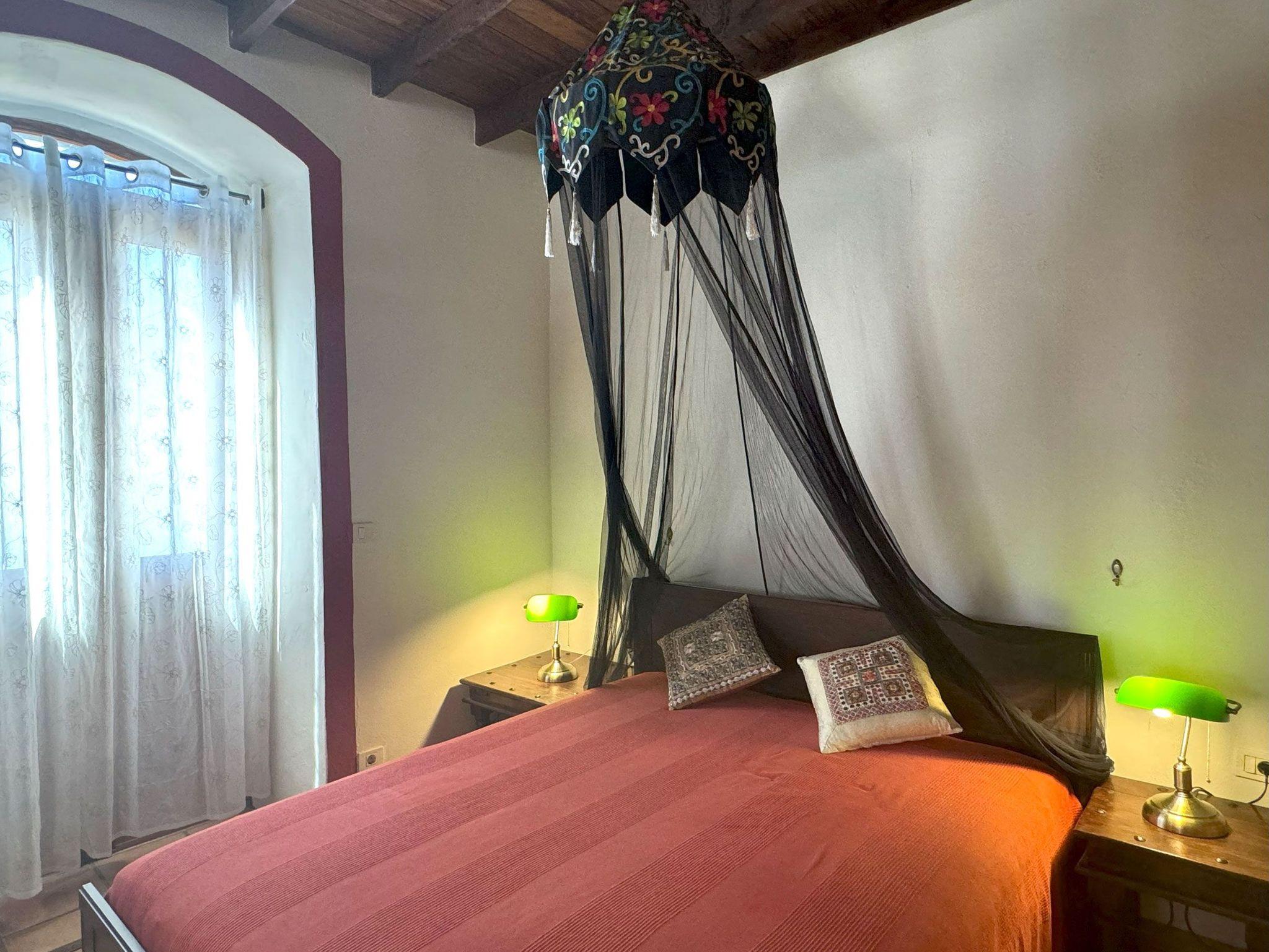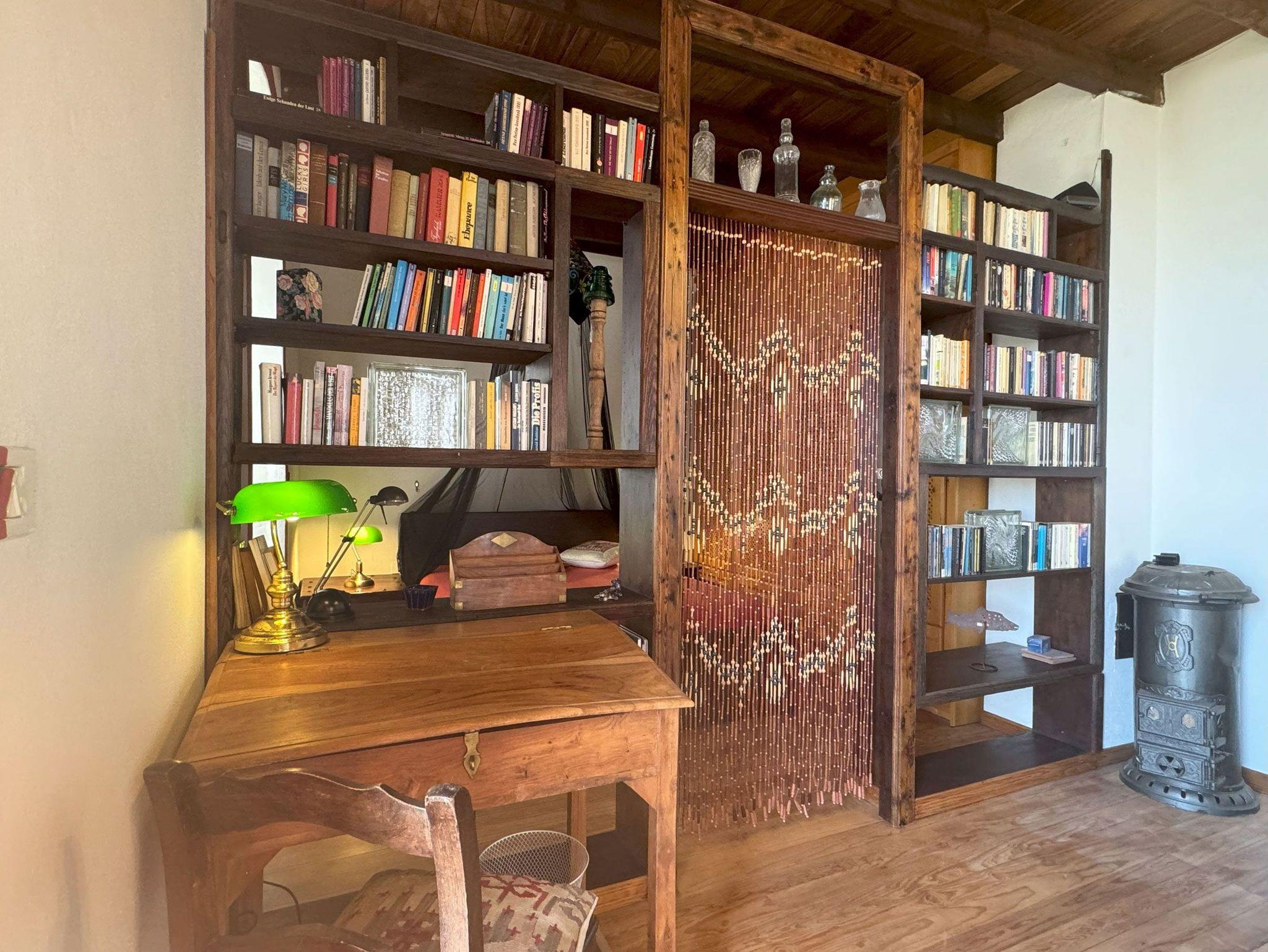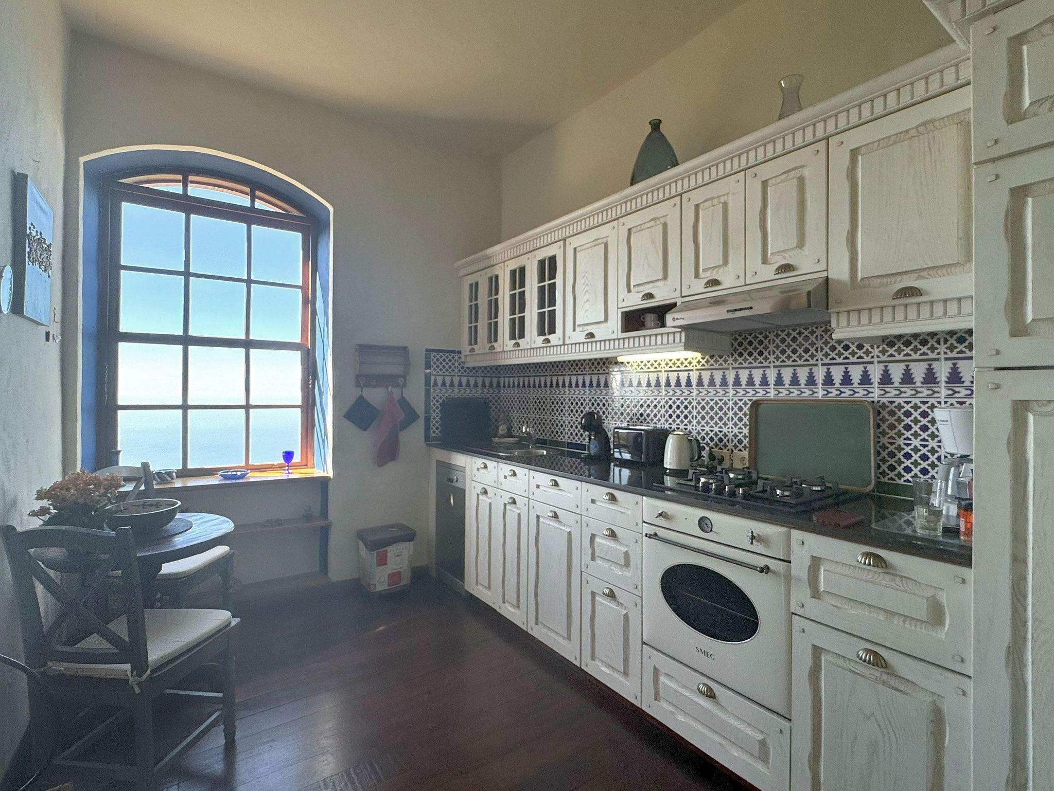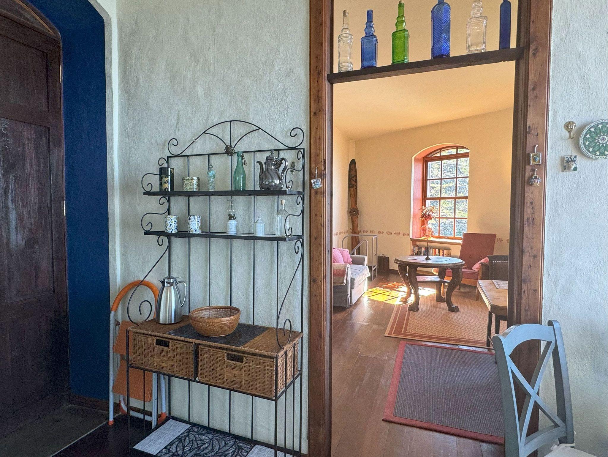 (Autofahrt zum Parkplatz ca. 15 Minuten, Fußweg von dort ca. 25 Minuten). Das Haus geht über zwei Stockwerke die mit einer Wendeltreppe verbunden sind. Im unteren Teil befindet sich eine große separate Küche sowie ein Wohn/Essbereich mit Kamin und Sofa. Vom Esstisch hat man einen wunderschönen Blick aufs Meer. Im oberen Teil des Hauses ist das Schlafzimmer mit französischem Bett und ein Bad mit Duschwanne/WC.
