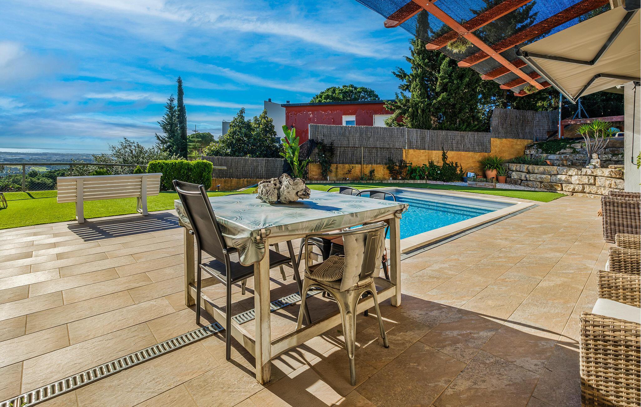 Flygt fra hverdagen, og nyd udsigten og afslappende feriedage i dette smukke feriehus med pool.