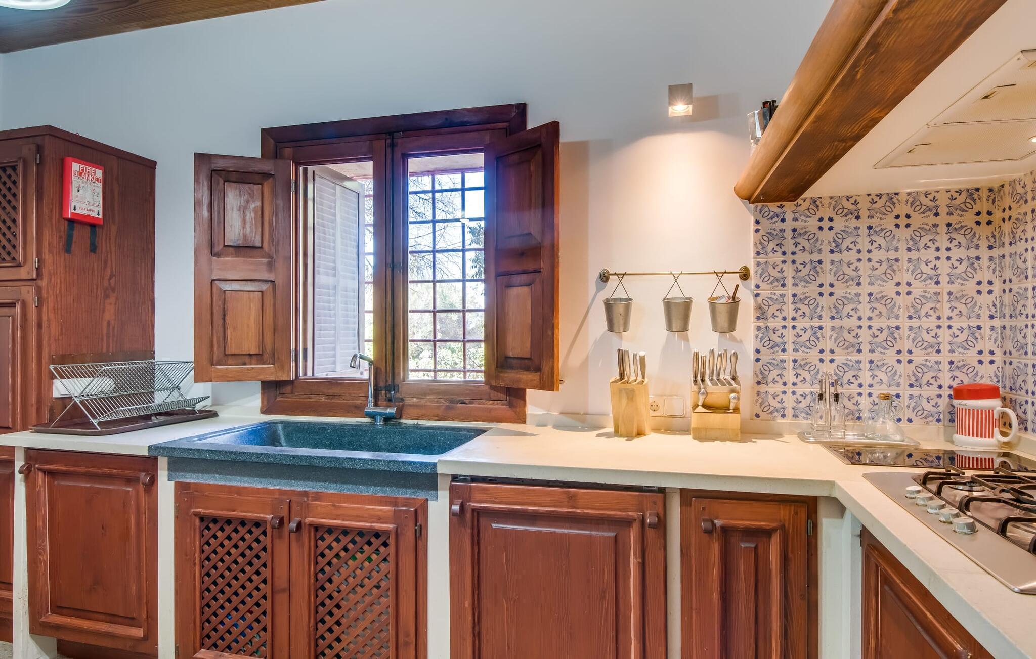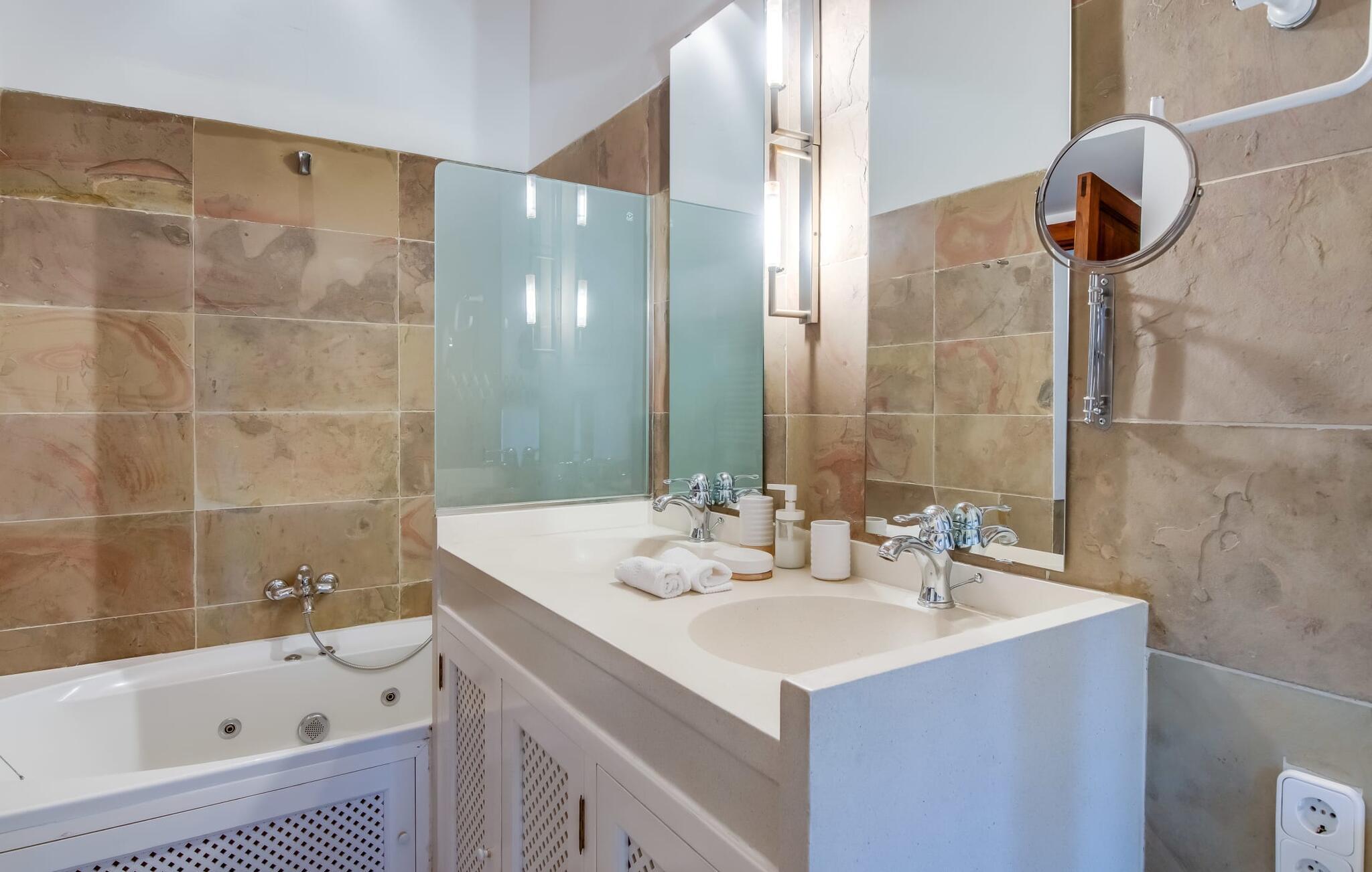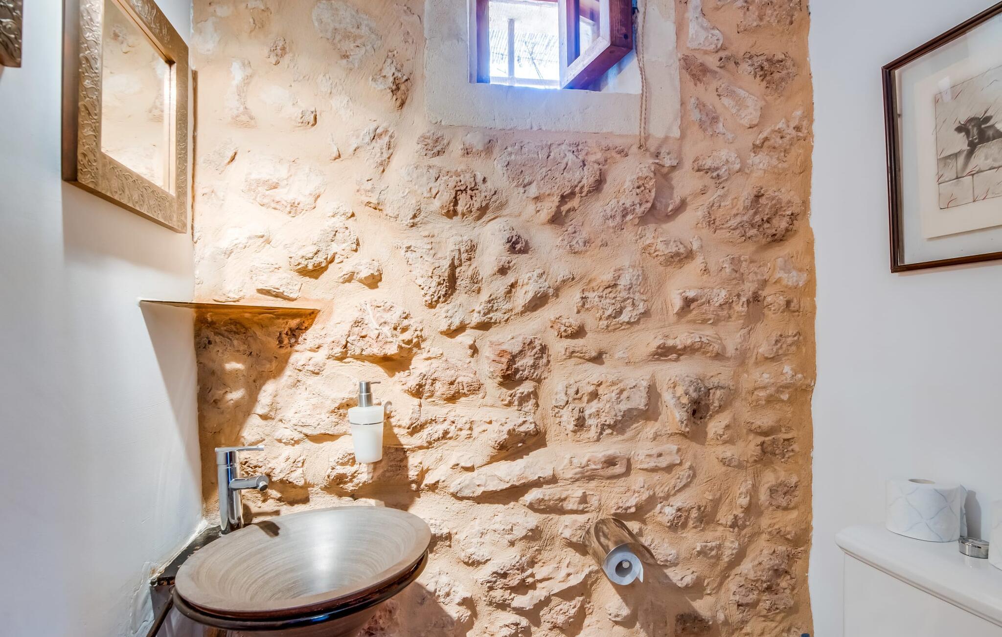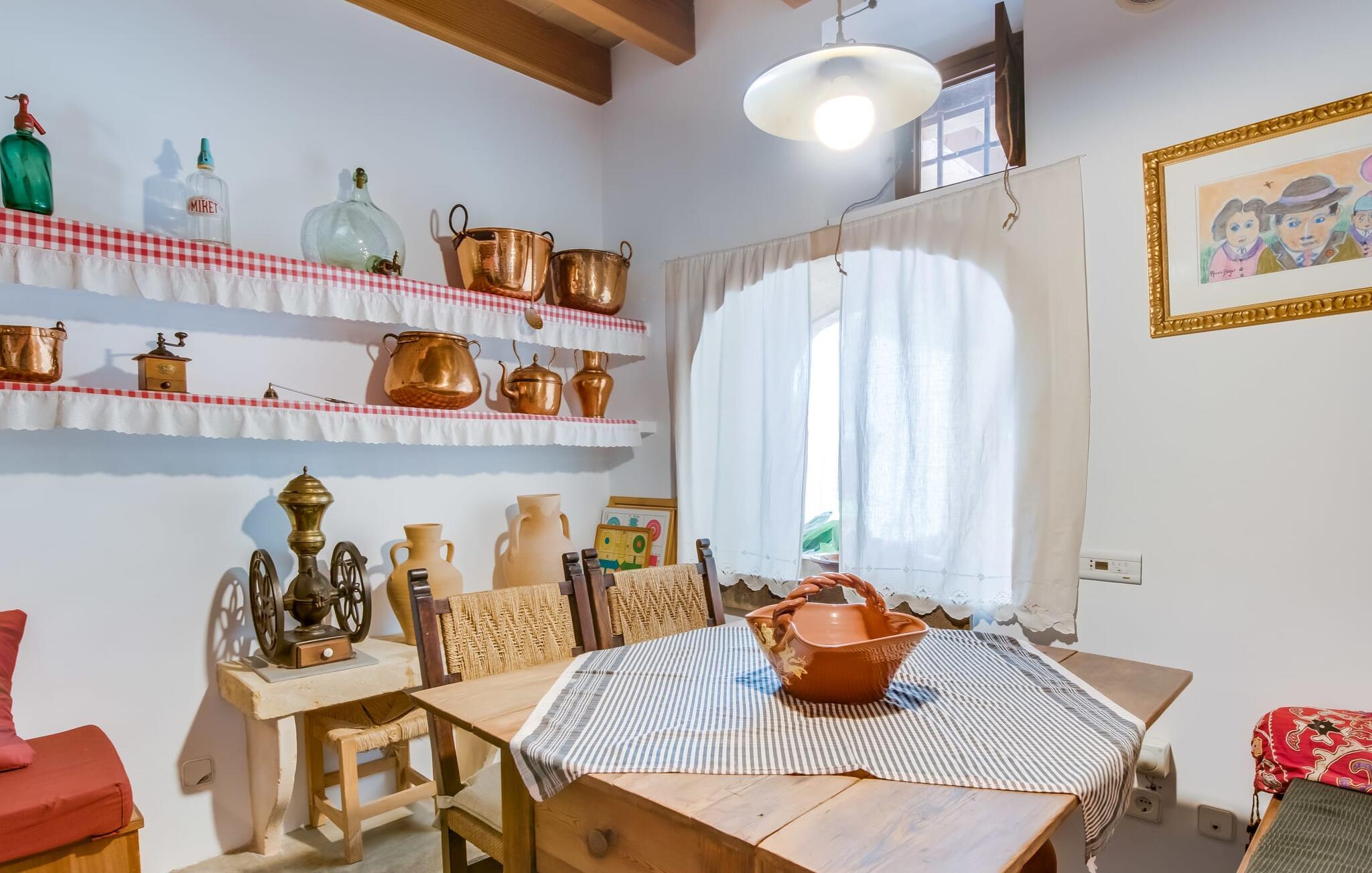 Hvis I vil have mere end blot at tilbringe jeres ferie på Mallorca; Hvis I også vil nyde den typiske mallorcanske charme, er I kommet til det rigtige sted i villaen "Torre d'en Huc". Både inde og ude har ejerne lagt stor vægt på, at ølivets oprindelige karakter ikke blot bevares, men også blandes med moderne elementer. Og hvad er slutresultatet? En stor ejendom, hvis sans for detaljer altid minder jer om, hvor I er. Her og der på væggene kan man finde redskaber, der minder om øboernes hverdag, før Mallorca blev opdaget som turistmål, hvor landbruget dominerede landskabet. I dag står dørene åbne for gæster, der sætter pris på autentisk stil. Alt her er blevet restaureret med stil; Når I træder ind i ejendommen, bliver I mødt af en stor gårdhave, hvor I vil finde jeres første valg af komfortable siddepladser ved siden af et springvand. Nu er I forkælet med valg med hensyn til, hvor I skal slappe af i solen, der er så mange at vælge imellem. En overdækket terrasse, en terrasse på første sal, et lille rum under svajende grene, stenbænke langs en mur og poolområdet. Beplantningen varieres uden at fremstå kunstig eller "planlagt og designet" på nogen måde. Takket være denne vellykkede balancegang, er I garanteret at tilbringe mange dejlige timer i den friske luft og føle en følelse af afslapning, der kun er mulig, når den mest gennemprøvede opskrift på en vellykket ferie er sammensat: Tag ind i en ejendom fyldt med karakter, drømmende, idyllisk sted, hvor I næsten kan læse jeres sind og derefter være tilgængelig for at opfylde alle jeres ønsker; Tilføj lækre grillspecialiteter og stimulerende samtale. Top det hele af med endeløse sommeraftener afkølet af en mild brise. På et tidspunkt vil I endelig trække jer tilbage til villaen - og så har I så meget desto mere grund til at ånde et suk af tilfredshed. Det samme gør sig gældende for interiøret: sans for detaljer, udsøgte møbler, autentiske genstande fra villaens begivenhedsrige fortid og moderne kunstform en så fremragende blanding, at I helt sikkert vil bruge lidt mere tid i en af de to hyggelige stuer eller i den rustikke Pejs i indgangspartiet, før man for alvor skal kalde det en dag. Dette hus er perfekt udstyret til større grupper - især da alle fem dobbeltværelser (fire af dem med eget klimaanlæg) har eget badeværelse med en enkelt undtagelse. En af dem har endda svømmehallens lillebror, et smukt badekar (vil I også have saltvand her, skal I selv hente det fra havet). Fra stuen fører en trappe til en mezzanin, hvor der er noget fitnessudstyr til at holde jer i form under jeres ophold. I mellemtiden vil yngre gæster nyde den næsten livstore legetøjshest, der stolt står her. Her er også to enkeltsenge; Den hulelignende natur på dette åbne område gør det særligt velegnet til ældre børn, der er mindre bekymrede for privatlivets fred. Der er yderligere tre soveværelser ovenpå - hvoraf det ene har adgang til den førnævnte terrasse på første sal med liggestole, siddepladser og planter. Dette er det perfekte sted til jeres morgenkop kaffe! Og måske for at planlægge, hvad I vil udforske og opdage i dag. Villaens bekvemme beliggenhed giver mange muligheder for dette. På trods af sin afsides beliggenhed - som er en lettelse for ørerne og nervesystemet - er Algaida kun 10 minutter væk til hverdagens væsentlige ting. Om fredagen er det værd at besøge det farverige ugentlige marked på "Sa Plaza" og nyde en spadseretur efterfulgt af en lækker Café Cortado. For kultur, strande og shopping tag til Palma med sin smukke katedral kun 30 minutter væk. Den solbeskinnede bugt Cala Pi i den sydlige del af øen kan nås på 40 minutter. Golfentusiaster er i gode hænder i Son Gual, kun 15 km væk, hvor de kan arbejde på deres handicap og se frem til at tage hjem sidst på dagen - når alt kommer til alt, vil I i hele jeres ferie være beboere i en virkelig storslået villa. Villaen "Torre d'en Huc" er en stor ejendom, hvor de endda holder heste. Masser af rustik charme, et traditionelt præg og moderne accenter mødes i en smuk, landlig, afsides beliggenhed nær byen Algaida og sikrer en meget speciel ferieoplevelse. Til hverdagsindkøb er Algaida kun 10 minutter væk. Øens hovedstad Palma, med sine mange indkøbs- og fritidsmuligheder samt adgang til havet, ligger kun 30 minutter væk i bil.