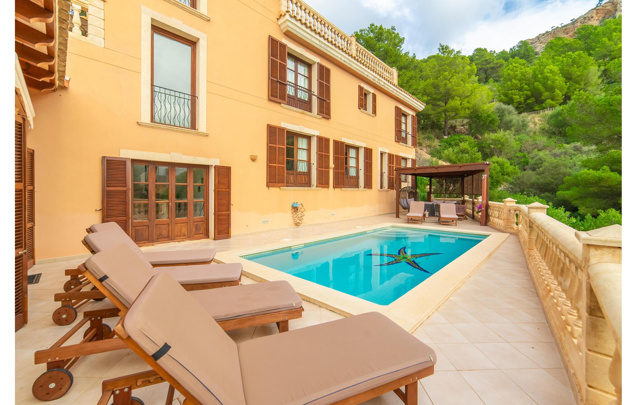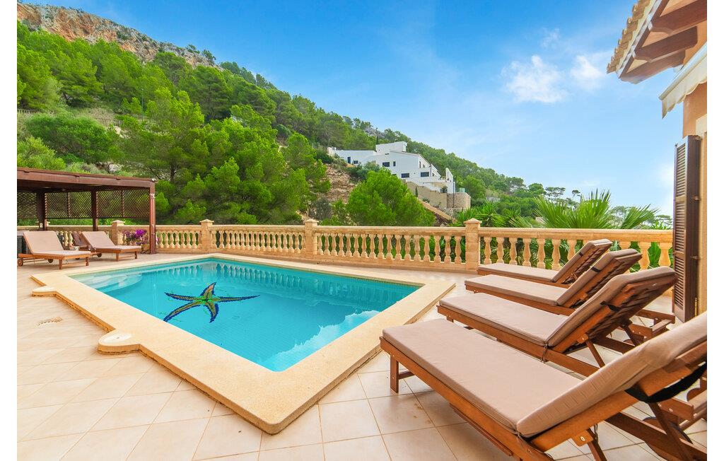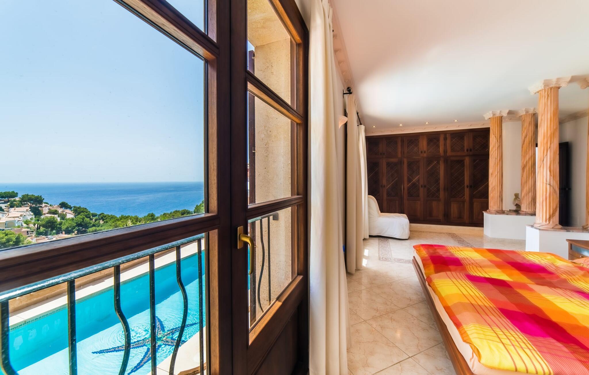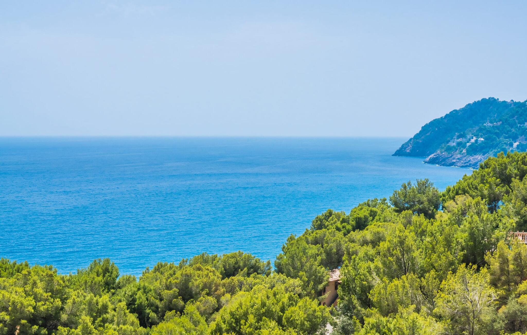 Beliggende på bakken af ??Cap Vermell, med udsigt over den glitrende bugt, tilbyder den elegante villa "Torre de Heretat" en blanding af moderne komfort og betagende udsigt.