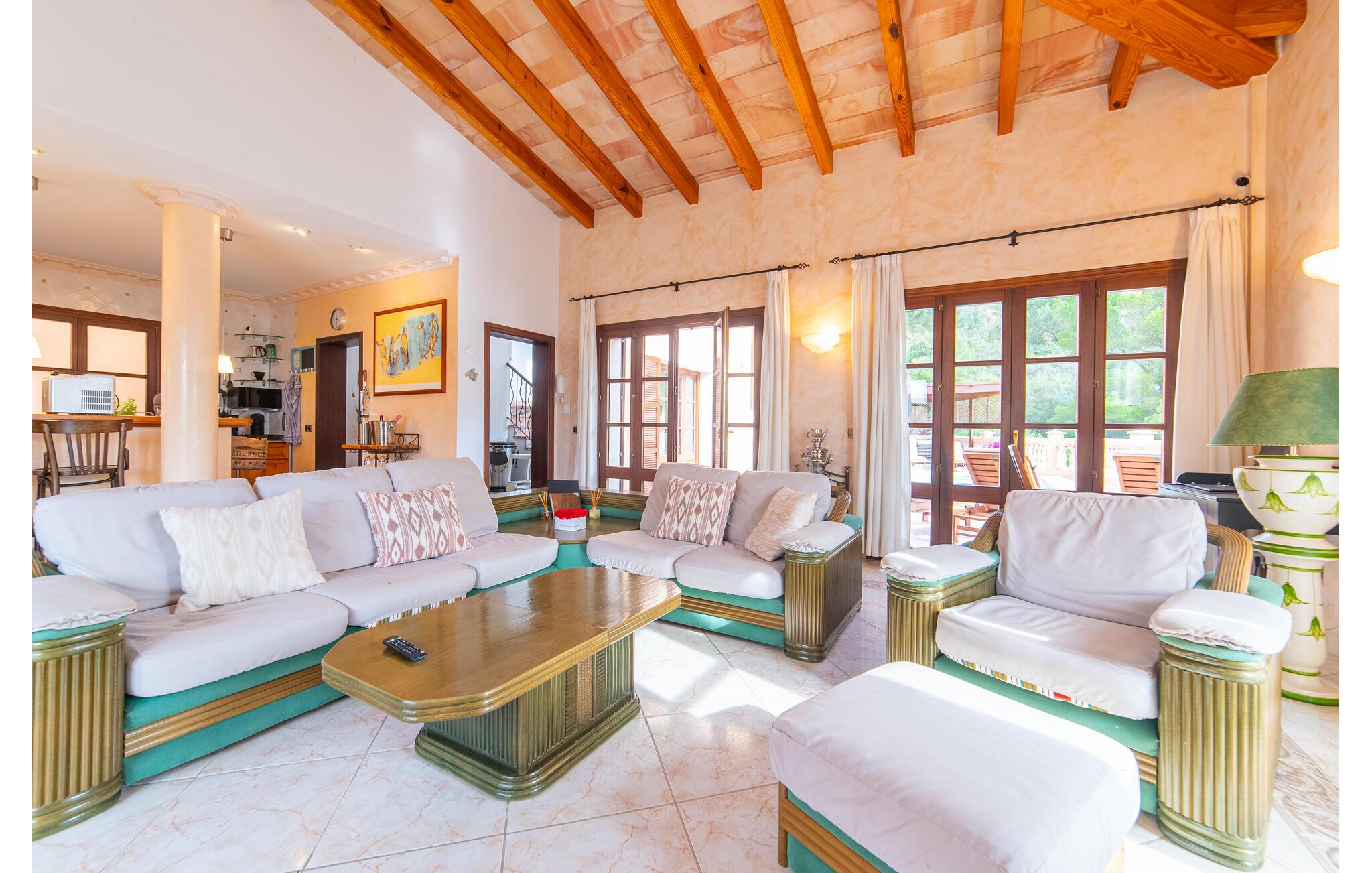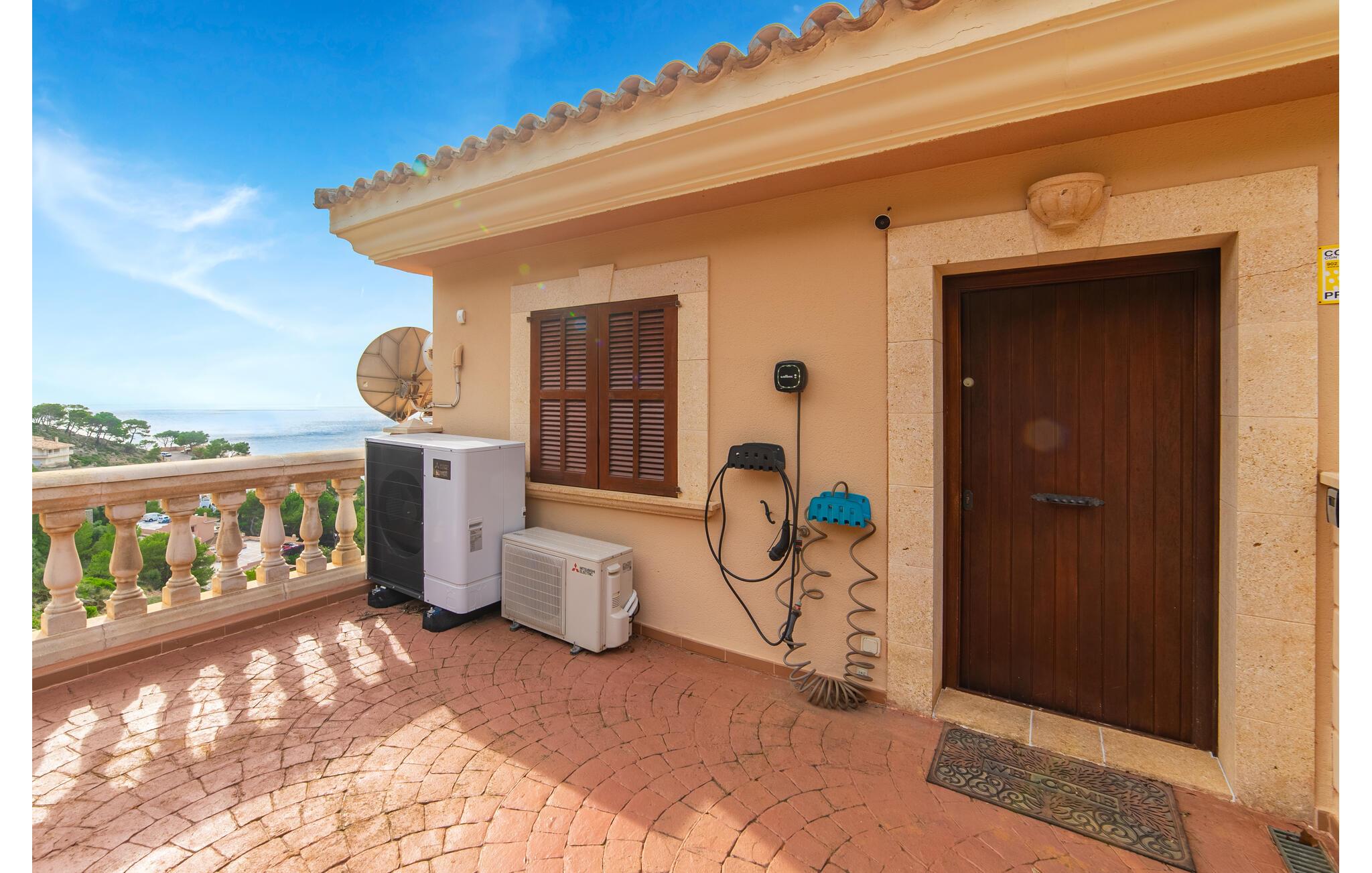 Den luksuriøse rækkehus "Torre de Heretat" har en imponerende beliggenhed, kun ca. 500 m via trapper fra vandet og stranden og kun få kilometer væk i bil. Beliggende i det attraktive østlige distrikt Cap Vermell, tæt på golfbanen. Den lille by Canyamel har et supermarked, en bank og restauranter. For større indkøbsture skal I køre cirka 10 km mod Cala Ratjada og derefter fortsætte til de naturbeskyttede bugter som Cala Mesquida og Cala Agulla.