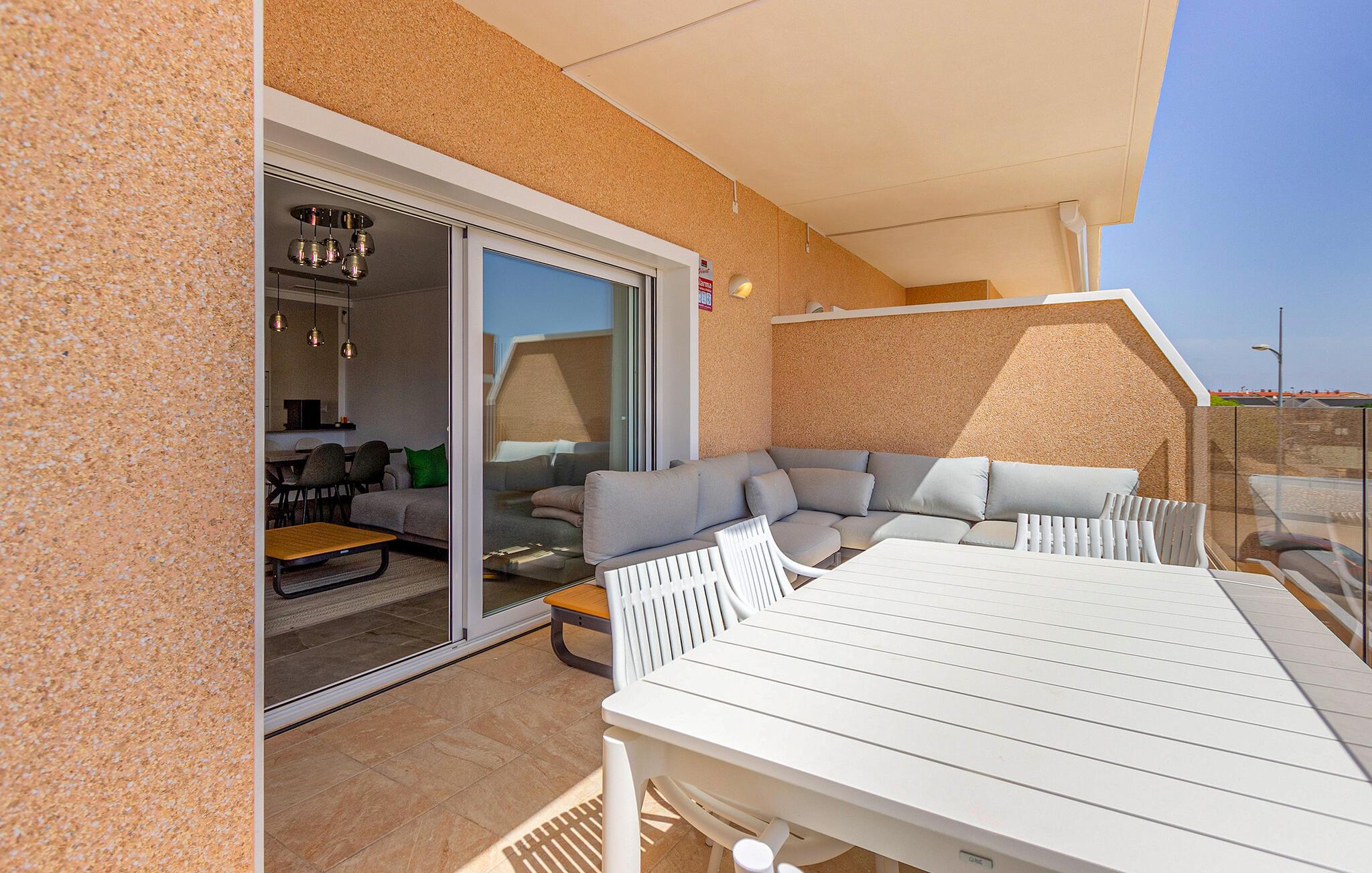 Begynd dagene i denne ferielejlighed i Torre de la Horadada på Costa Blanca med morgenmad på den solrige terrasse og nyd udsigten til det velholdte boligkompleks og det smukke poolområde. Find jer godt til rette på de komfortable stole og planlæg jeres feriedag. Den rummelige opholds- og spisestue med åbent køkken er smukt og moderne indrettet. Tilbered jeres egne måltider og nyd dem sammen ved spisebordet. Så slap af i sofaen og afslut dagen med en film eller en god samtale.