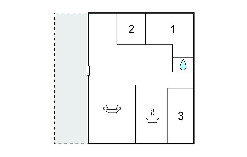 Soveværelse (nr. 1) - 2 Sovepladser. (Enkeltseng(e)).