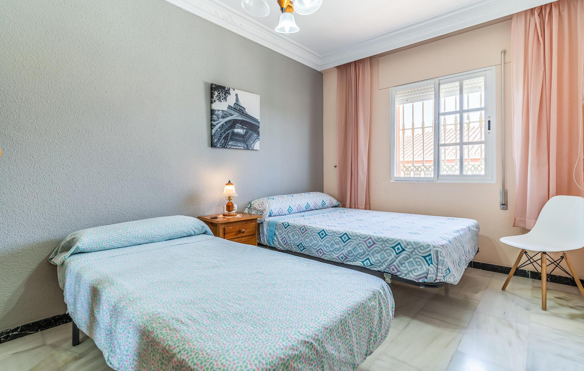 Denne lyse og traditionelt indrettede ferielejlighed ligger nogle få skridt fra sandstranden. Fordyb jer i den andalusiske atmosfære, mens I tryller lækre tapas frem, nyder lange, hyggelige måltider med familien over et glas vin, og streamer en spændende film om aftenen.