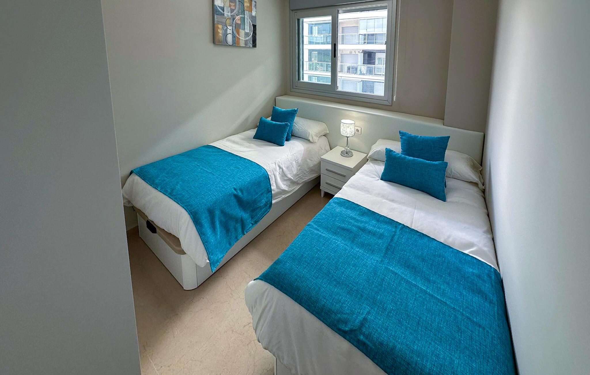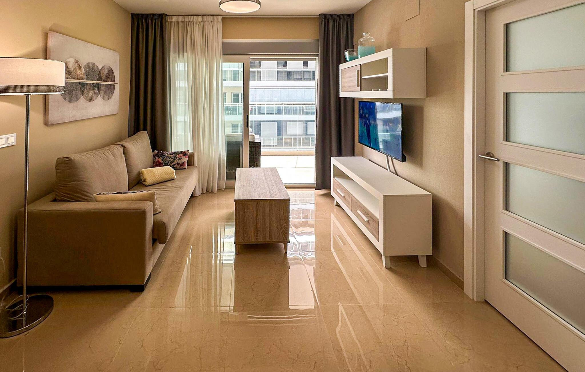 Denne lyse og smagfuldt møblerede lejlighed har en rolig beliggenhed kun få skridt fra sandstranden og byder jer velkommen med en behagelig atmosfære. Nyd middelhavsretter ved det indbydende spisebord, brug det til harmoniske spilleaftener efter en lang dag i solen, og hyg jer sammen med jeres ferielæsning på den komfortable sofa.