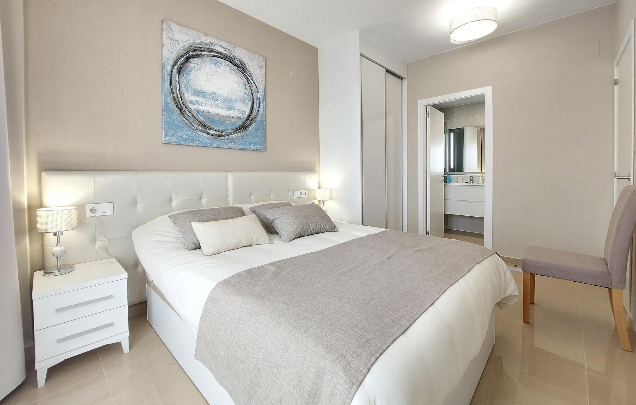 Lad havudsigten fortrylle jer i denne komfortable lejlighed ved stranden med fælles pool.