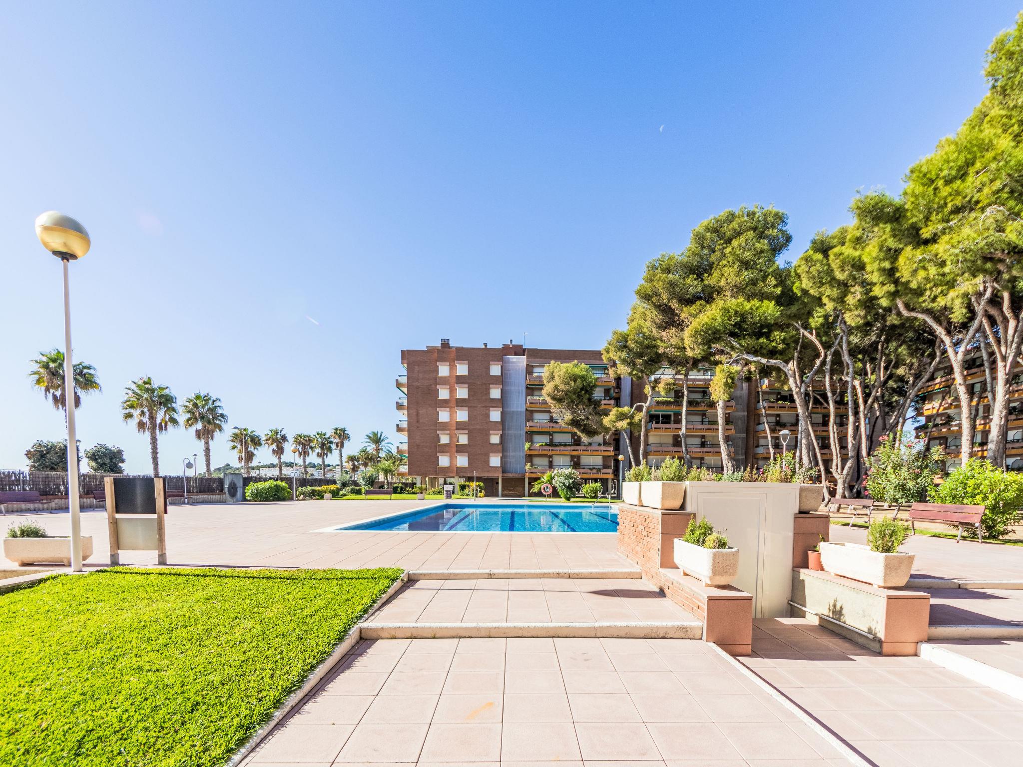 Torredembarra 18 km from Tarragona: Very large apartment block "Els Pins", surrounded by trees. 50 m from the sea, 20 m from the beach, direct access to the beach. For shared use: large garden (fenced) with trees, 2 swimming pools angular (20 x 8 m, seasonal availability: 10.Jun. - 20.Sep.) with salt water. Children's pool, outdoor shower. In the house: lift. Parking at the house on the premises. Shop 150 m, grocery 150 m, supermarket 250 m, shopping centre 19 km, restaurant 150 m, bar 150 m, bakery 500 m, café, pedestrian zone 50 m, 8 minute walk to the centre, bus stop 50 m, railway station "Torredembarra Renfe" 100 m. Sports harbour 700 m, golf course (18 hole) 13 km, tennis 2 km, riding stable 2 km. Nearby attractions: Port Aventura 30 km, Aquopolis 35 km, Jungle Trek 8 km. Well-known lakes can easily be reached: Pantano de Foix 33 km, Bassa de les Olles 85 km, Embalse de Siurana 60 km. Hiking paths: La Musara 56 km, Ronda verda del Baix Gaia 5 km. Please note: suitable for families. The owner does not accept any groups. The owner does not accept any youth groups. Main road 600 m from the property. Airfield 30 km from the property. Additional accommodations can be booked. Neighbourhood highly sensitive to noise. Quietness and good behaviour expected.