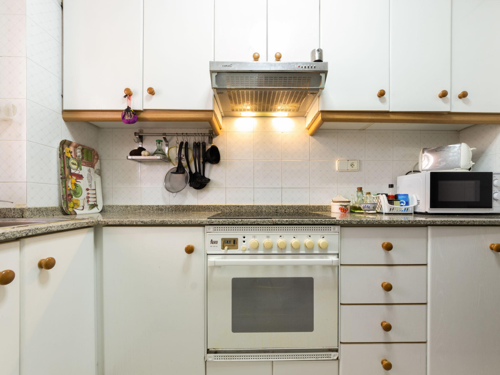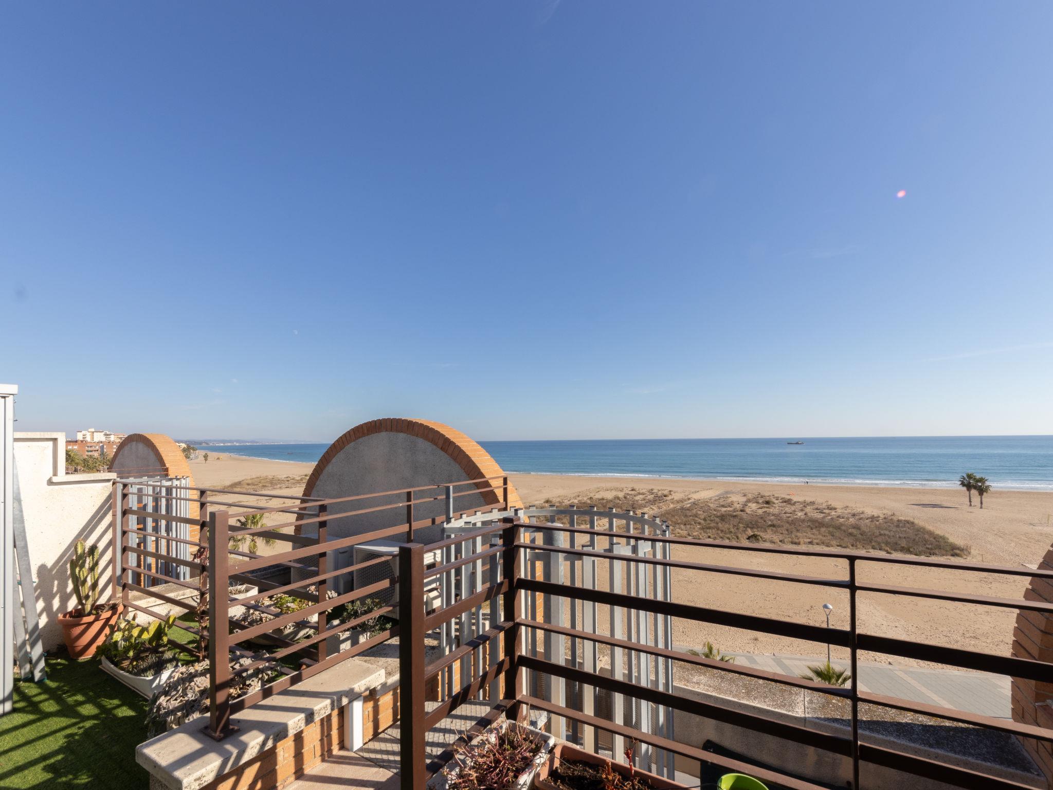 "Solarium III", 3-room apartment 50 m2 on 4th floor. Object suitable for 2 adults + 2 children. Practical and cosy furnishings: living/dining room with digital TV, flat screen and air conditioning. Exit to the terrace. 1 room with 1 french bed (160 cm, length 190 cm), air conditioning. 1 room with 2 beds (90 cm, length 190 cm). Kitchen (oven, 3 induction hot plates, toaster, kettle, microwave, electric coffee machine). Bath/WC. No heating option. Upper floor: (spiral staircase). Exit to the terrace. Small terrace, large terrace. Terrace furniture, deck chairs (2). Marvellous view of the sea. Facilities: washing machine, iron, children's high chair, baby cot for up to 3 year olds, hair dryer. Internet (WiFi, free). Parking space n 15 (roofed), height 230 cm, width 500 cm. Please note: suitable for families. Non-smoking house. TV only ES. HUTT-064961 // Reg. Nr.: ESFCTU00004302700020743200000000000000000HUTT-0649610