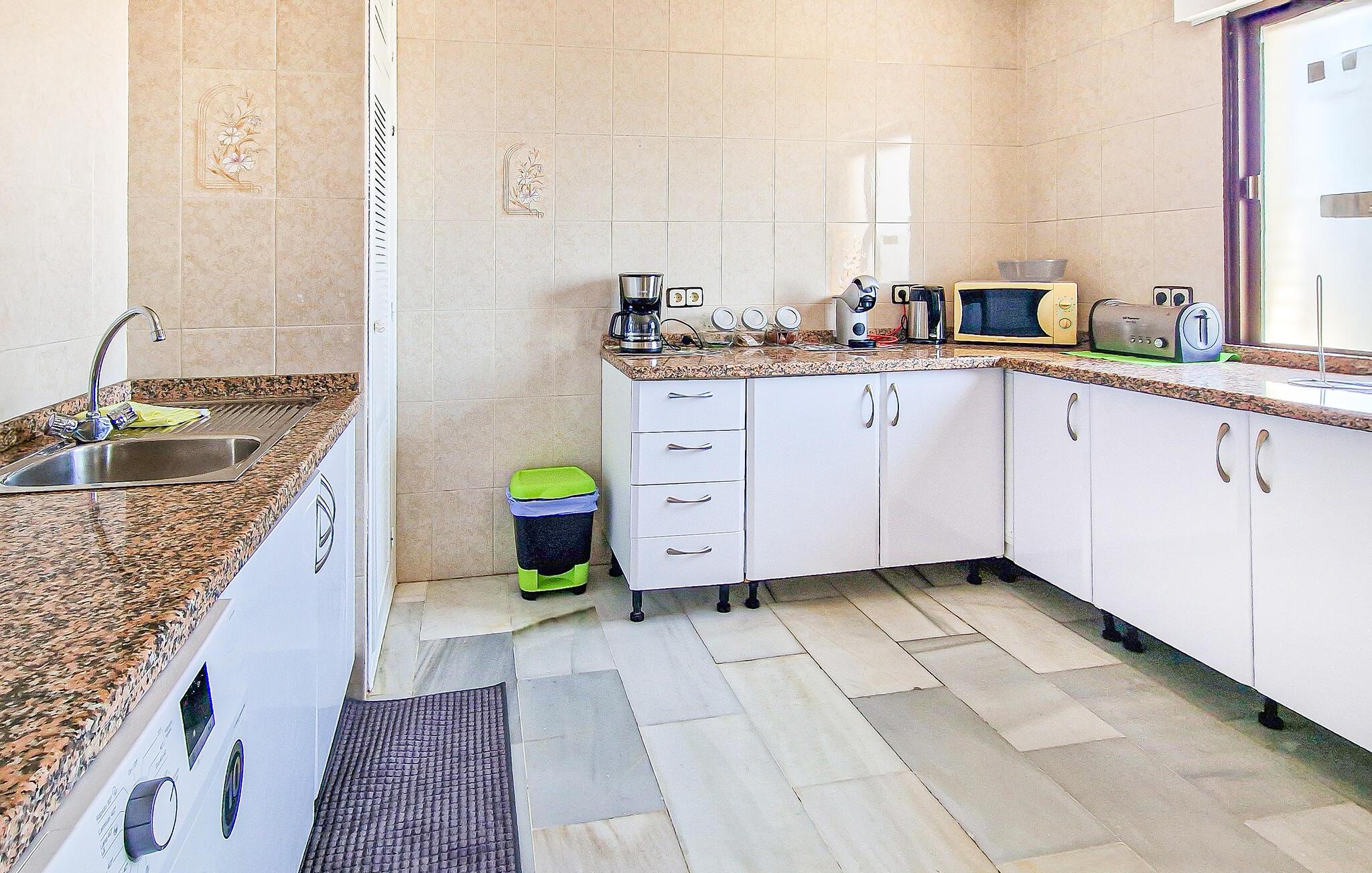 Denne velholdte ferielejlighed lægger op til en afslappende pause i sine lyse og venlige værelser. Tilbered lækre retter i det rummelige køkken og nyd dem ved det store spisebord. Afslut dagen med en hyggelig spilleaften eller sæt jer godt til rette i sofaen med en god bog.