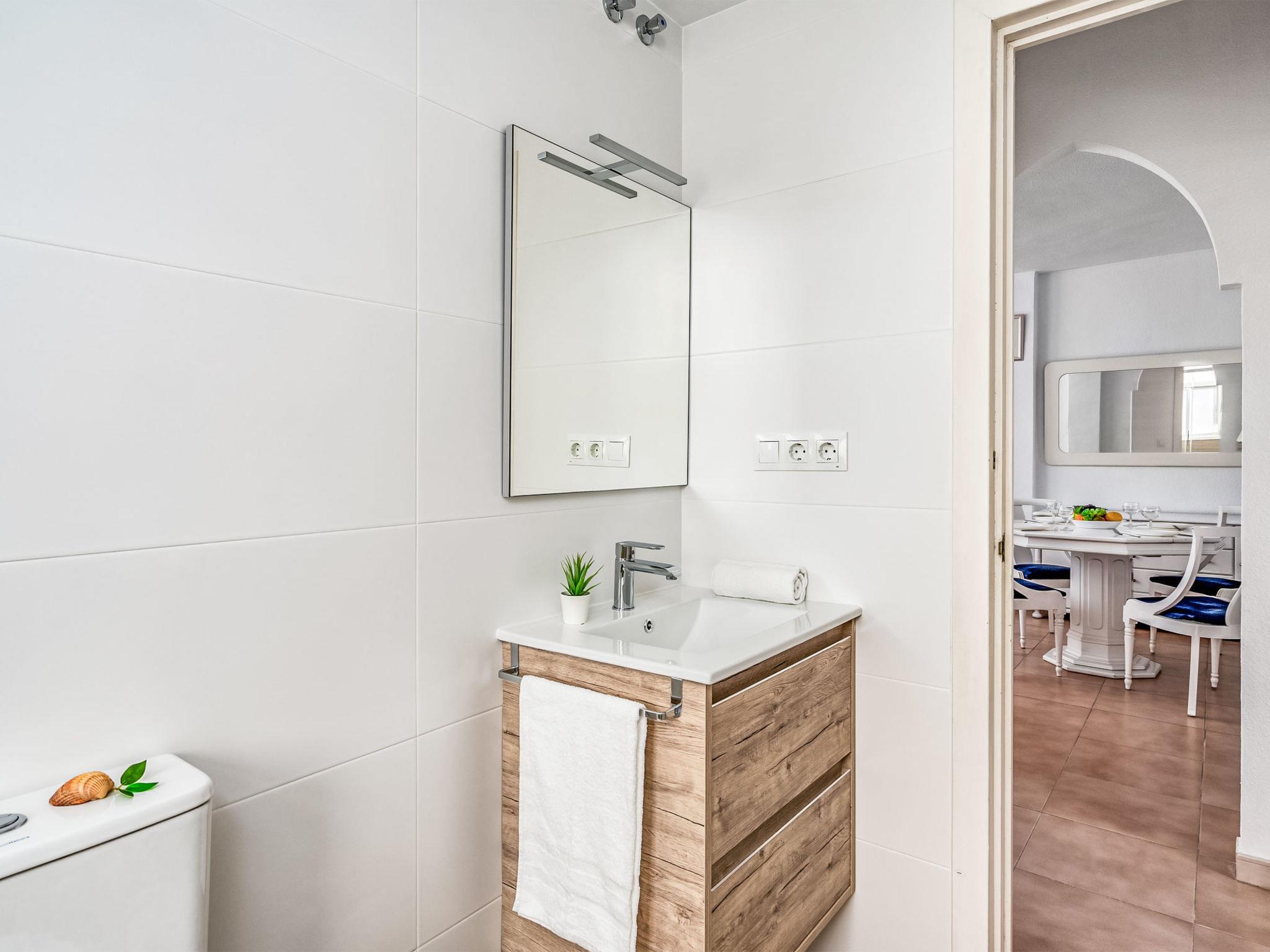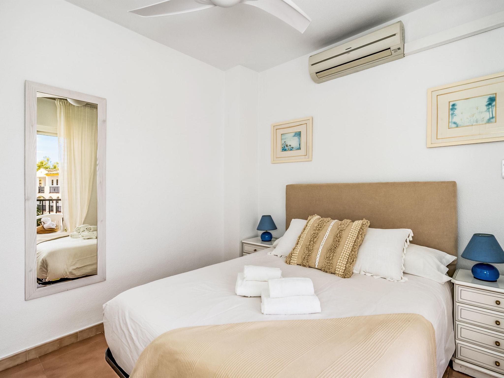 3-room apartment 60 m2 on 2nd floor. Object suitable for 2 adults + 2 children. Practical and comfortable furnishings: living/dining room with TV and digital TV (flat screen), air conditioning and forced-air heating. Exit to the terrace. 1 room with 2 beds, air conditioning and forced-air heating. Exit to the terrace. 1 room with 1 french bed. Open kitchen (oven, 4 ceramic glass hob hotplates, toaster, kettle, microwave, freezer, electric coffee machine). Bath/WC. Heating, air-conditioning. Terrace. Terrace furniture. View of the swimming pool and the garden. Facilities: washing machine, iron. Internet (WiFi). Suitable for families. VUT/MA/30262 // Reg. Nr.: ESFCTU0000290210005366910000000000000000VUT/MA/302628