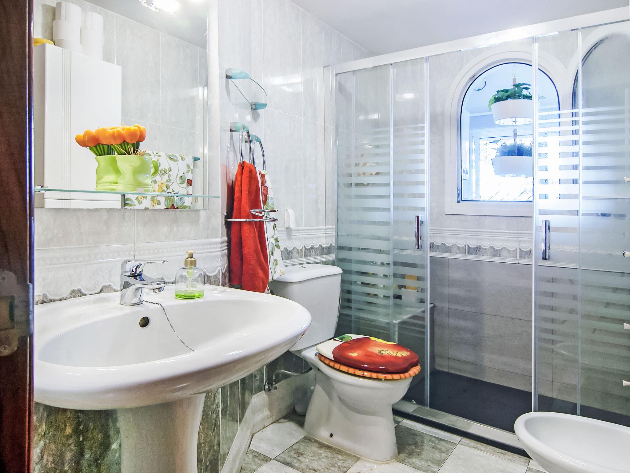 4-room apartment 102 m2 on 1st floor. Object suitable for 6 adults + 1 child. Spacious and bright, beautiful and cosy furnishings: living/dining room with digital TV, flat screen, air conditioning and forced-air heating. Exit to the terrace. 1 double bedroom with 1 french bed, bath/WC, air conditioning and forced-air heating. 1 double bedroom with 1 french bed, air conditioning and forced-air heating. 1 double bedroom with 2 beds (90 cm), air conditioning and forced-air heating. Kitchen (4 hot plates, oven, dishwasher, kettle, microwave, freezer, electric coffee machine). Bath/WC. Terrace. Terrace furniture. View of the swimming pool and the garden. Facilities: washing machine, dryer, hair dryer. Internet (WiFi, free). Parking space n 26. Suitable for families. VUT/MA/20017 // Reg. Nr.: ESFCTU0000290210002356930000000000000VUT/MA/200170