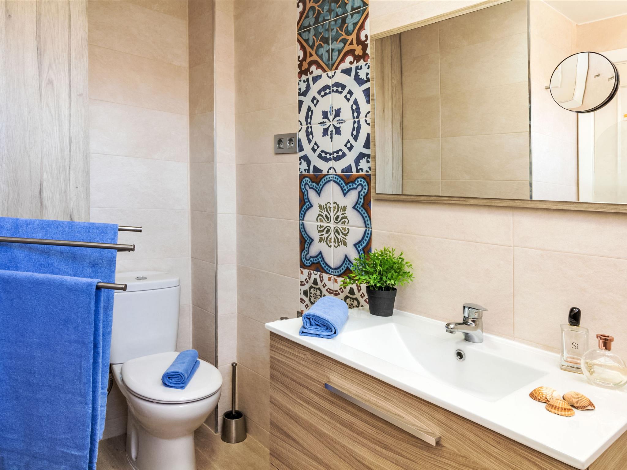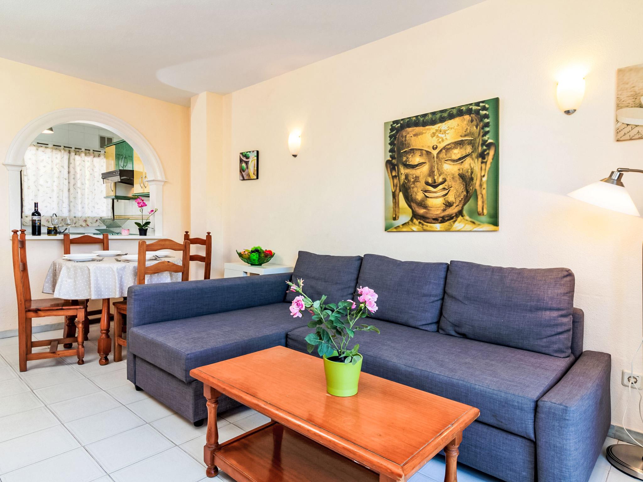 2-room apartment 41 m2 on 1st floor. Object suitable for 2 adults + 2 children. Bright, simple furnishings: living/dining room with 1 double sofabed, digital TV, flat screen, air conditioning and forced-air heating. 1 double bedroom with 2 beds. Exit to the terrace. Open kitchen (oven, 3 ceramic glass hob hotplates, freezer, electric coffee machine). Bath/WC. Heating, air-conditioning. Terrace. Terrace furniture. View of the swimming pool and the garden. Facilities: washing machine. VUT/MA/07702 // Reg. Nr.: ESFCTU0000290210001639580000000000000000VUT/MA/077023