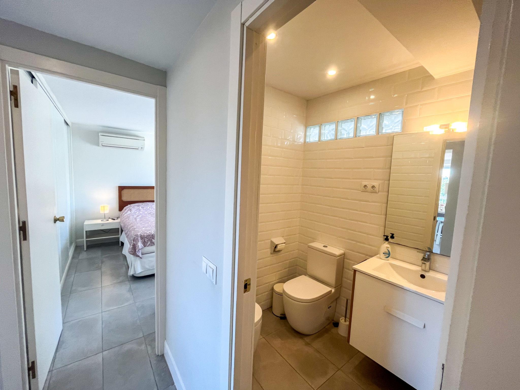 "Eurosol", 2-room apartment 96 m2 on 2nd floor. Object suitable for 2 adults + 2 children. Comfortable and modern furnishings: living/dining room with 1 sofabed, digital TV, air conditioning and forced-air heating. Exit to the terrace. 1 double bedroom with 2 beds (90 cm, length 200 cm), bath/WC. Kitchen (oven, dishwasher, 3 ceramic glass hob hotplates, kettle, microwave, freezer, electric coffee machine). Shower/WC. Terrace. Terrace furniture. Panoramic view. Facilities: washing machine, iron, hair dryer. Internet (WiFi, free). Suitable for families. VUT/MA/69400 // Reg. Nr.: ESFCTU0000290210005934270000000000000000VUT/MA/694006