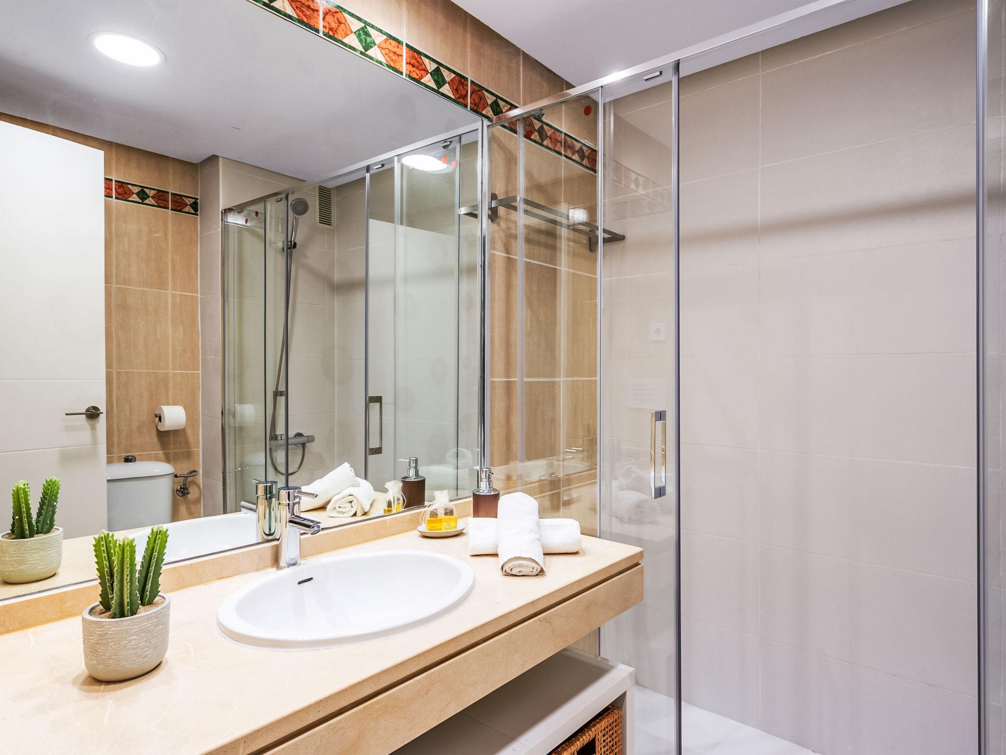 "Mirador del Saltillo", 3-room apartment 70 m2, on the ground floor. Object suitable for 4 adults + 2 children. Beautiful and modern furnishings: living/dining room with TV and digital TV (flat screen), air conditioning and forced-air heating. Exit to the terrace. 1 double bedroom with 1 bed (150 cm). 1 double bedroom with 2 beds (90 cm). Kitchen (oven, dishwasher, 4 ceramic glass hob hotplates, toaster, kettle, microwave, freezer, electric coffee machine). Shower/bidet/WC. Terrace 48 m2. Terrace furniture. Facilities: washing machine, iron, hair dryer. Please note: non-smokers only. VUT/MA/47299 // Reg. Nr.: ESFCTU0000290210002277970000000000000000VUT/MA/472998