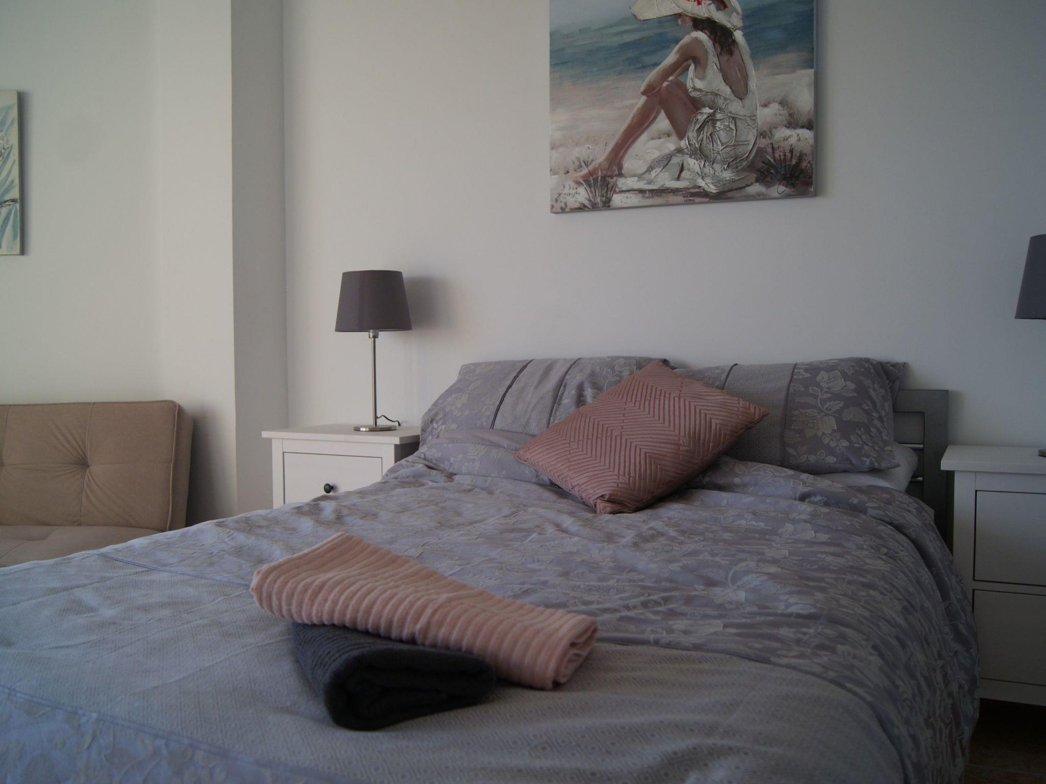 The apartment has a spacious layout. It is fully furnished, has a modern and brightly furnished bedroom and living room, a bathroom and kitchen. 2 balconies for lounging and dining. Fully equipped.