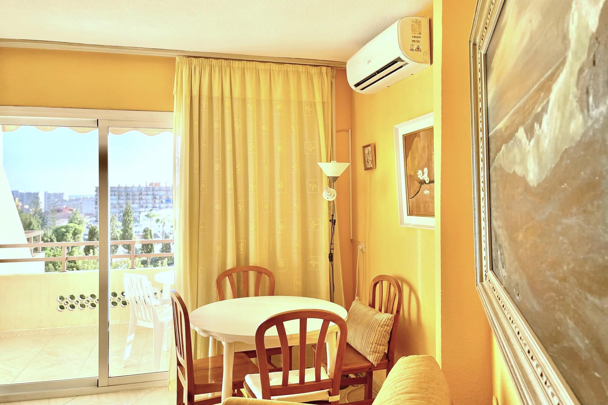 Velkommen til denne udsøgte lejlighed beliggende i en moderne 9-etagers bygning, perfekt placeret på 5. sal med en betagende sydvestvendt udsigt over havet og bjergene. Denne fantastiske bolig byder på et rummeligt layout, der omfatter et smukt indrettet soveværelse med en dobbeltseng, en lys stue/spisestue med en komfortabel sovesofa og to store terrasser, der er ideelle til at nyde den storslåede udsigt og den varme middelhavssol. Lejligheden er udstyret med aircondition, tv og gratis Wi-Fi overalt, mens køkkenet er fuldt udstyret med køleskab, blender, kaffemaskine, ovn og keramisk kogeplade, hvilket gør det nemt at tilberede måltider derhjemme. Et veldesignet komplet badeværelse tilføjer bekvemmelighed og komfort. Denne lejlighed ligger kun 15 km fra Malaga og 12 km fra lufthavnen, mindre end 400 m fra stranden og i gåafstand fra det travle shoppingområde og Plaza Solymar. Fremragende transportforbindelser, herunder bekvemme busruter og det lokale tog, sikrer nem udforskning af de omkringliggende områder, herunder Arroyo de la Miel, som kun ligger 4 km væk. Denne lejlighed er det perfekte tilflugtssted ved kysten, der kombinerer luksusliv med Costa del Sols liv. Selve bygningen har 4 elevatorer for nem adgang til alle etager og et indbydende receptionsområde med en concierge/dørmand tilgængelig om natten, hvilket giver et ekstra lag af sikkerhed sammen med videoovervågning. Beboere kan nyde store haveområder og to swimmingpools - en for voksne og en for børn - perfekt til afslapning og socialt samvær. Derudover er der gratis fælles parkering lige foran komplekset.