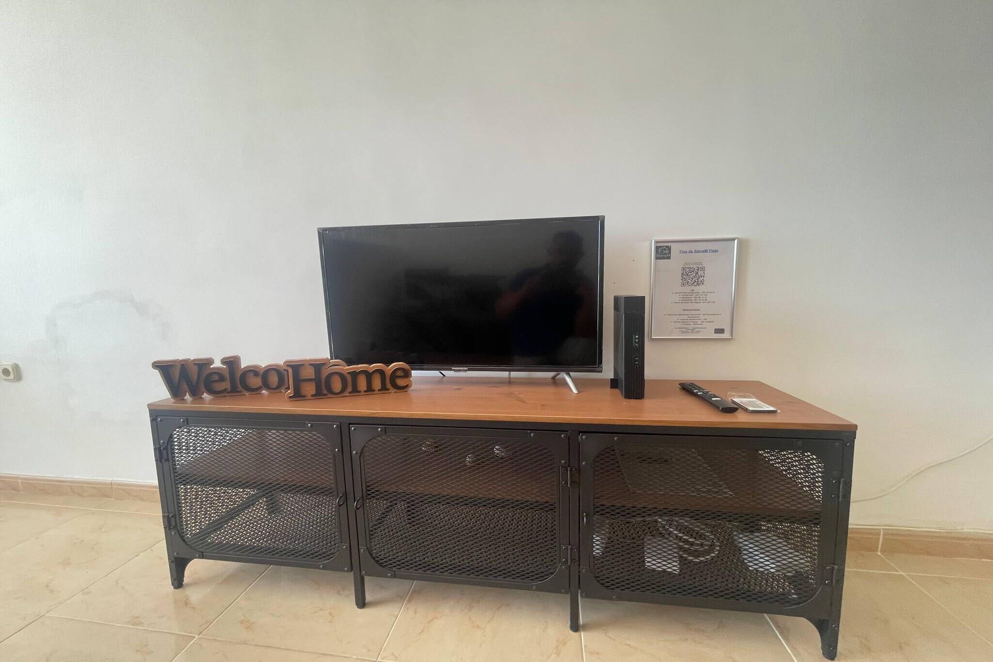 Komfortabel kystlejlighed Denne hyggelige 1-værelses lejlighed i Torremolinos kan rumme op til 4 gæster, og tilbyder et afslappende oase med en lys stue-spisestue og et fuldt udstyret åbent køkken. Lejligheden har et moderne badeværelse, aircondition, varme og en dobbelt sovesofa til ekstra soveplads. Gæsterne kan også nyde adgang til bygningens sæsonbestemte fælles pool og slappe af med en behagelig udsigt fra balkonen eller vinduerne. Kæledyr op til 5 kg er velkomne mod et mindre gebyr, hvilket gør det til et godt valg for rejsende med lodne ledsagere. Udforsk strande og seværdigheder Denne lejlighed ligger kun 800 meter fra Playa del Bajondillo og tæt på strandene La Carihuela og Playamar, tæt på sandkyster og kystpromenader. Nyd at gå, cykle eller prøve vandsport som padlesurfing og snorkling. Til dagsture kan du udforske Málagas historiske centrum, den naturskønne hvide landsby Mijas eller den nærliggende Sierra de Mijas til vandreture. Golfentusiaster kan besøge Real Club Campo Málaga (4,3 km) eller Golf Torrequebrada (8,2 km), hvilket sikrer aktiviteter for enhver interesse. Spisning, butikker og transport Lejligheden ligger få skridt fra caféer, restauranter og lokale butikker, herunder Mercadona-supermarkedet. Offentlig transport er praktisk med RENFE-togstationen 550 meter væk og busstoppesteder i nærheden. Aqualand vandland, Parque de la Bateria og Guadalhorce naturreservat tilbyder rekreative muligheder for familier. Málagas lufthavn ligger kun 8 km væk, så ankomster og afgange glider.