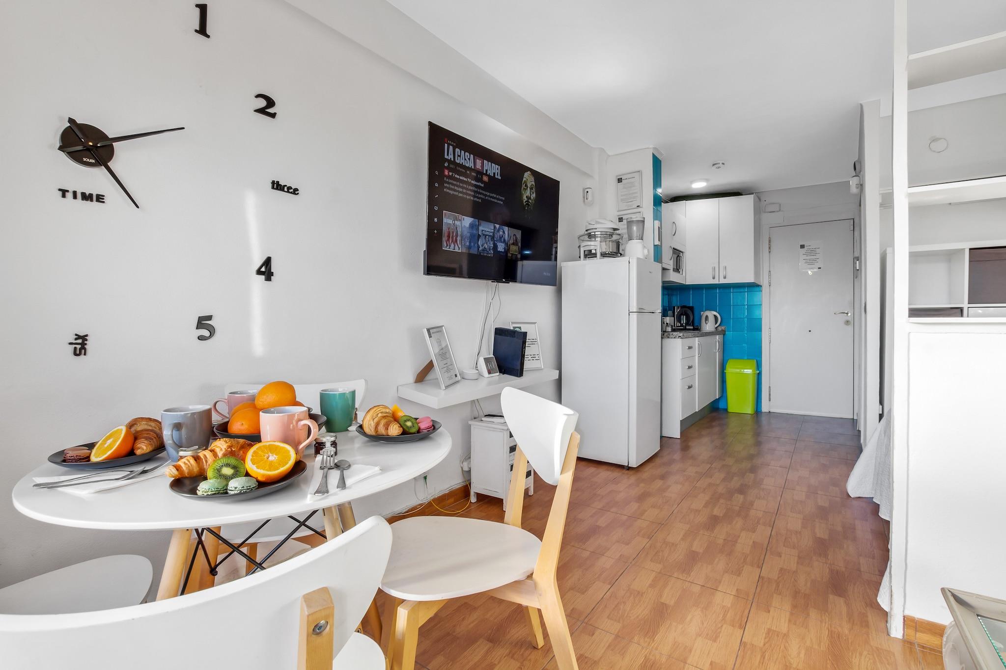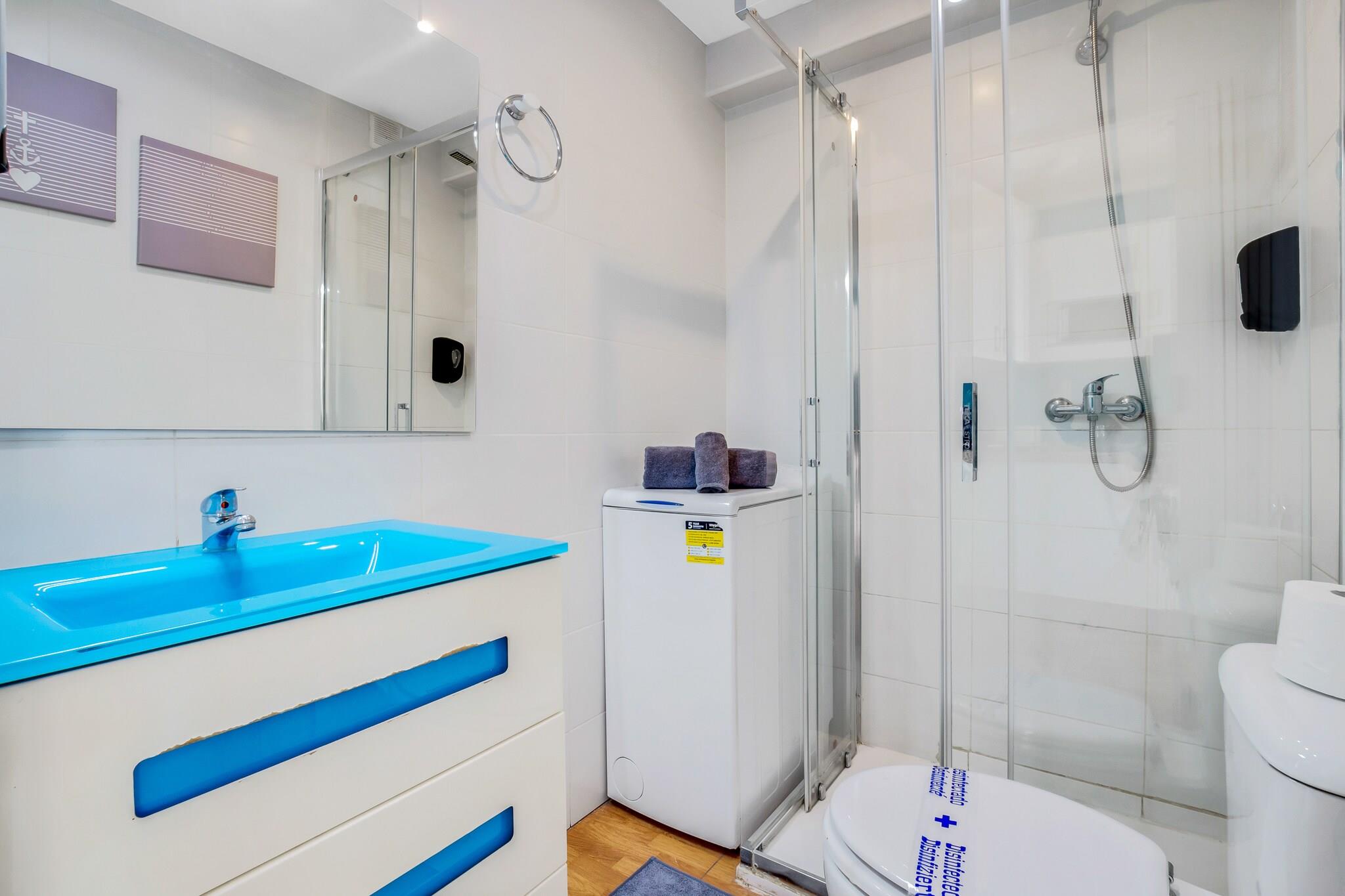 , Stue(dobbeltsovesofa, Fjernsyn, spisebord, sofahjørne), åbent køkken(elkedel, brødrister, kaffemaskine, ovn, mikrobølgeovn, køleskab, fryser, ), soveværelse(dobbeltseng), badeværelse(bruser, håndvask, toilet), vaskemaskine, balkon, klimaanlæg, terrasse, strygebræt, strygejern, luft til luft-varmepumpe, føntørrer, Alarm, , , Extra pillows and blankets, Wine glasses