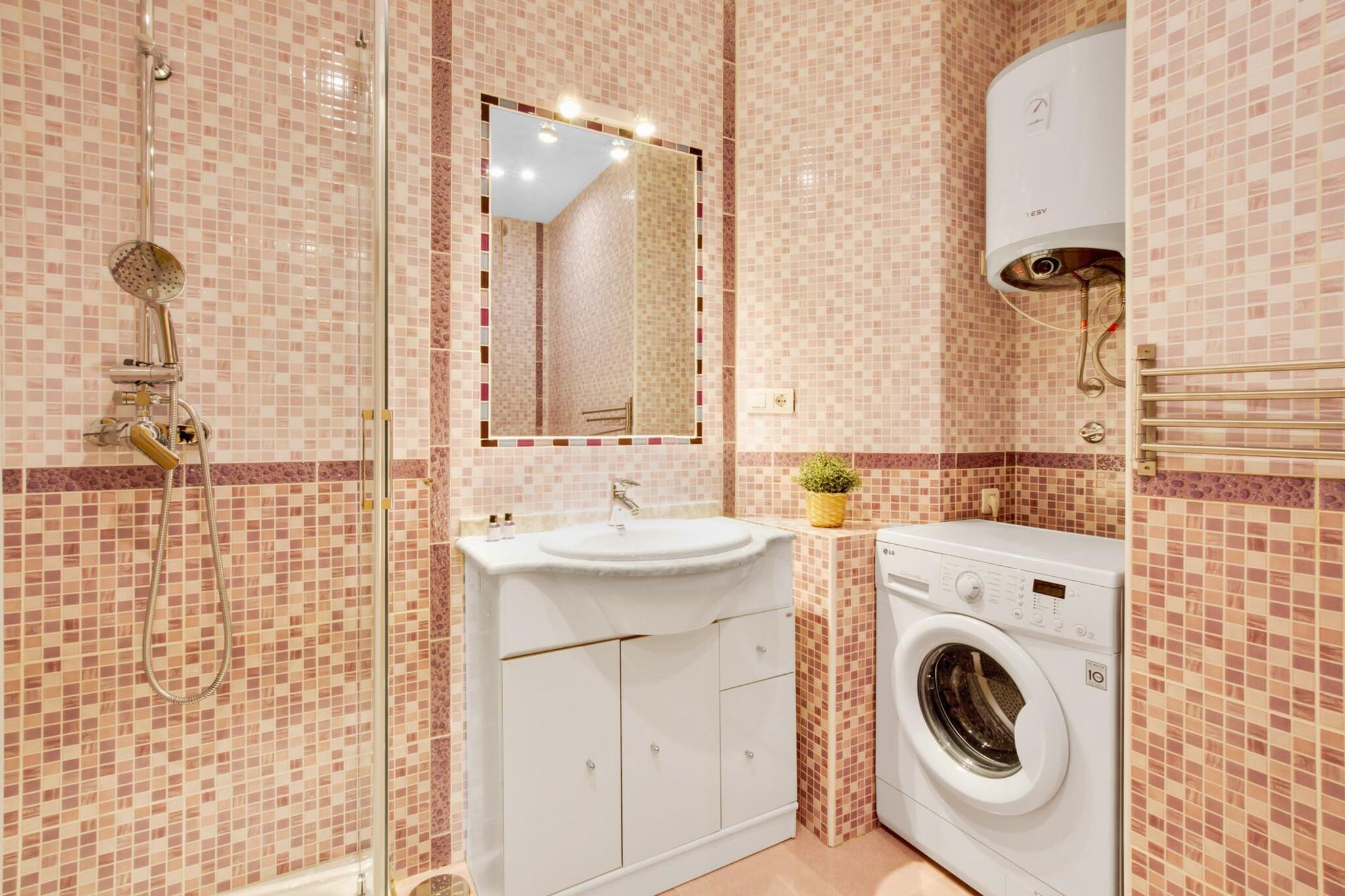 På 5. etage: (Stue(enkeltseng, Fjernsyn(Smart-TV), spisebord, sofahjørne), åbent køkken(kogeplade(glaskeramisk), elkedel, brødrister, kaffemaskine, ovn, mikrobølgeovn, køle-fryseskab, , Wine glasses), soveværelse(dobbeltseng), badeværelse(bruser, føntørrer)) , Internetadgang, tørretumbler, vaskemaskine, varme(central), klimaanlæg, terrasse, havemøbler, parkering, strygejern