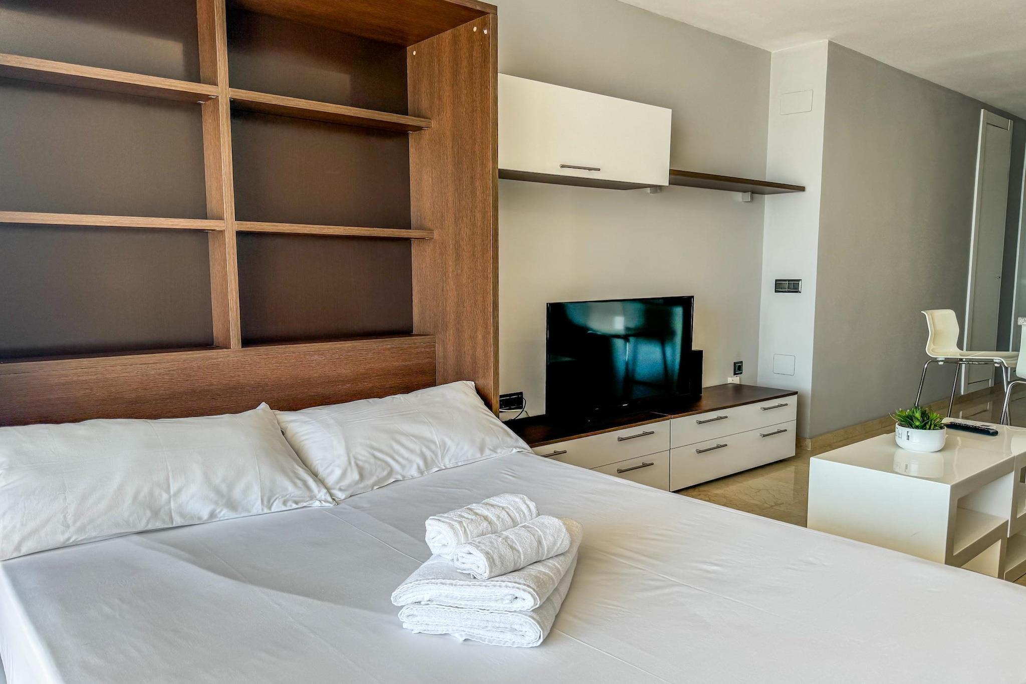 Oplev den ultimative strandlivsstil med dette storslåede studie, der tilbyder direkte adgang til den ikoniske Bajondillo-strand. Kun 3 minutters gang fra La Carihuela-stranden kan denne ejendom prale af en betagende udsigt over Middelhavet og problemfri forbindelse til den livlige promenade. Designet med komfort og praktisk anvendelighed i tankerne har rummet en alsidig 1,40 m sammenklappelig seng, der maksimerer opholdsområdet i løbet af dagen, suppleret med en hyggelig sofa, der er perfekt til afslapning eller underholdning. Det fuldt udstyrede køkken tilbyder alt det nødvendige - ovn, mikrobølgeovn, køleskab, keramisk kogeplade og køkkenredskaber - hvilket gør det nemt at tilberede lækre måltider, mens du nyder den fantastiske havudsigt. Det moderne badeværelse med bruser sikrer komfort og bekvemmelighed, mens aircondition overalt garanterer et køligt tilflugtssted på alle tider af året. Gå udenfor på den private terrasse, din personlige oase for at nyde solen, nyde en morgenmad ved havet eller slappe af med panoramaudsigt over det glitrende Middelhav. Takket være direkte adgang til promenaden kan du ubesværet slentre til stranden, når du ønsker det, og fordybe dig i lange gåture langs kysten. Uanset om det er til en romantisk ferie eller en afslappende ferie, kombinerer denne studiolejlighed ved stranden en uforglemmelig beliggenhed, moderne faciliteter og betagende landskaber for at skabe et uforglemmeligt tilflugtssted ved havet.