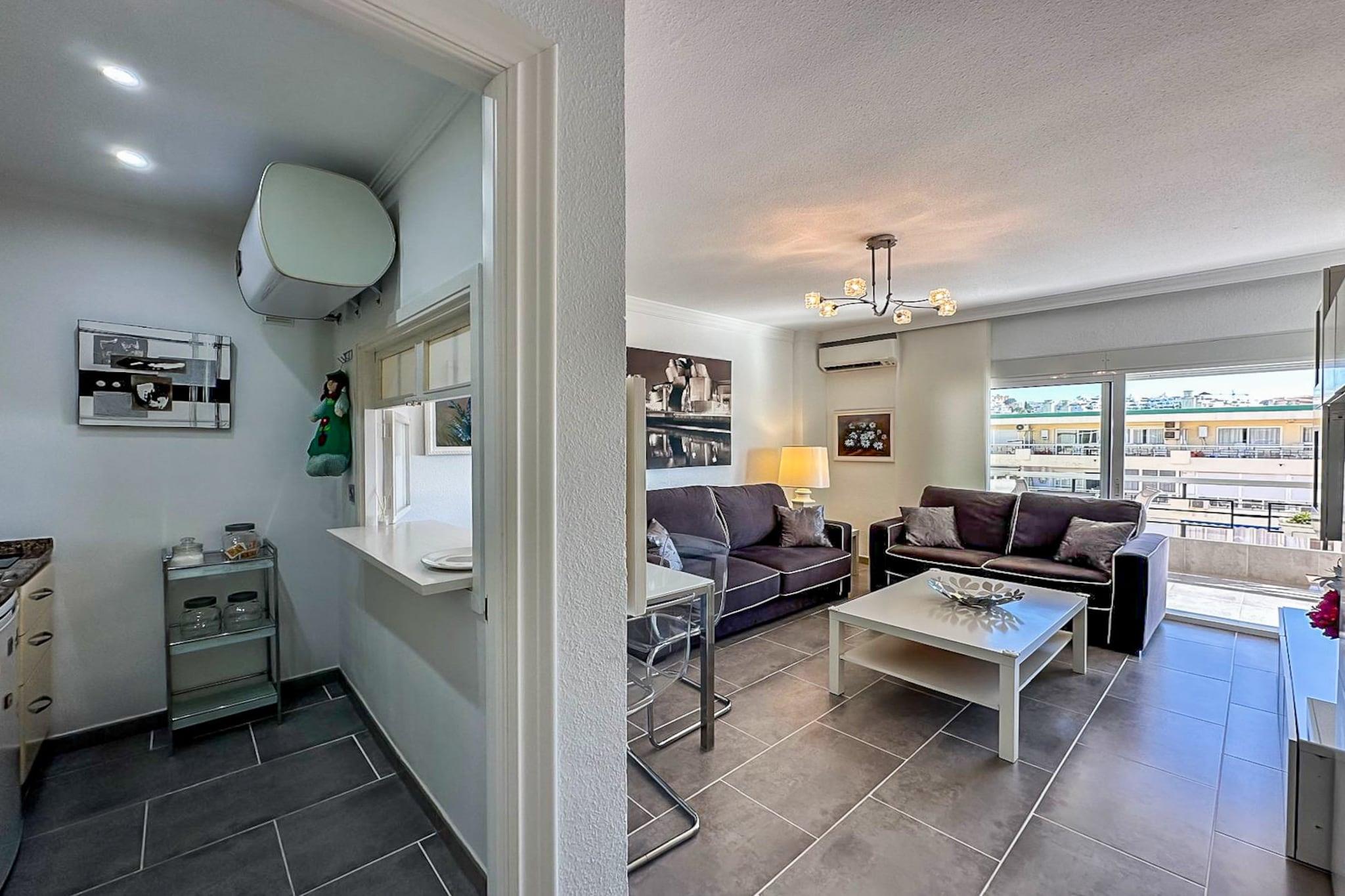 Denne lyse lejlighed ved stranden ligger i hjertet af La Carihuela og er ideel til familier på op til fire personer. Den tilbyder en praktisk og indbydende planløsning med et soveværelse med to enkeltsenge og en dobbelt sovesofa i opholdsstuen. Kun få skridt fra stranden er det et godt valg for forældre og børn, der ønsker at nyde både komfort og kystcharme. Start jeres familieferie med en gåtur til La Carihuela-stranden for en dag med svømning og solbadning, efterfulgt af en afslappende middag langs den travle promenade. Næste morgen kan I udforske det elegante Casa de los Navajas og nyde tiden i Parque La Batería med dens legepladser og panoramaudsigt. På jeres sidste dag kan I tage til Aqualand Torremolinos eller Crocodile Park for lidt familievenlig sjov, eller slentre til Benalmádena Marina for en bådtur og lokale shoppingmuligheder, før I afslutter turen med traditionelle churros og chokolade. Lejligheden har en privat terrasse til udendørs måltider eller afslapning i havbrisen. Et veludstyret køkken med mikrobølgeovn og stort køleskab gør det nemt at tilberede dine egne måltider, mens aircondition i stuen og en bærbar enhed i soveværelset giver ekstra komfort. Badeværelset har et brusebad og alle de basale ting, du har brug for efter en stranddag. Yderligere gebyrer kan forekomme for visse tjenester, såsom depositum eller ekstraudgifter i myldretiden. Uanset om det er til en afslappende strandferie eller en sjov familieferie, tilbyder denne lejlighed en perfekt base med alt lige ved hånden.